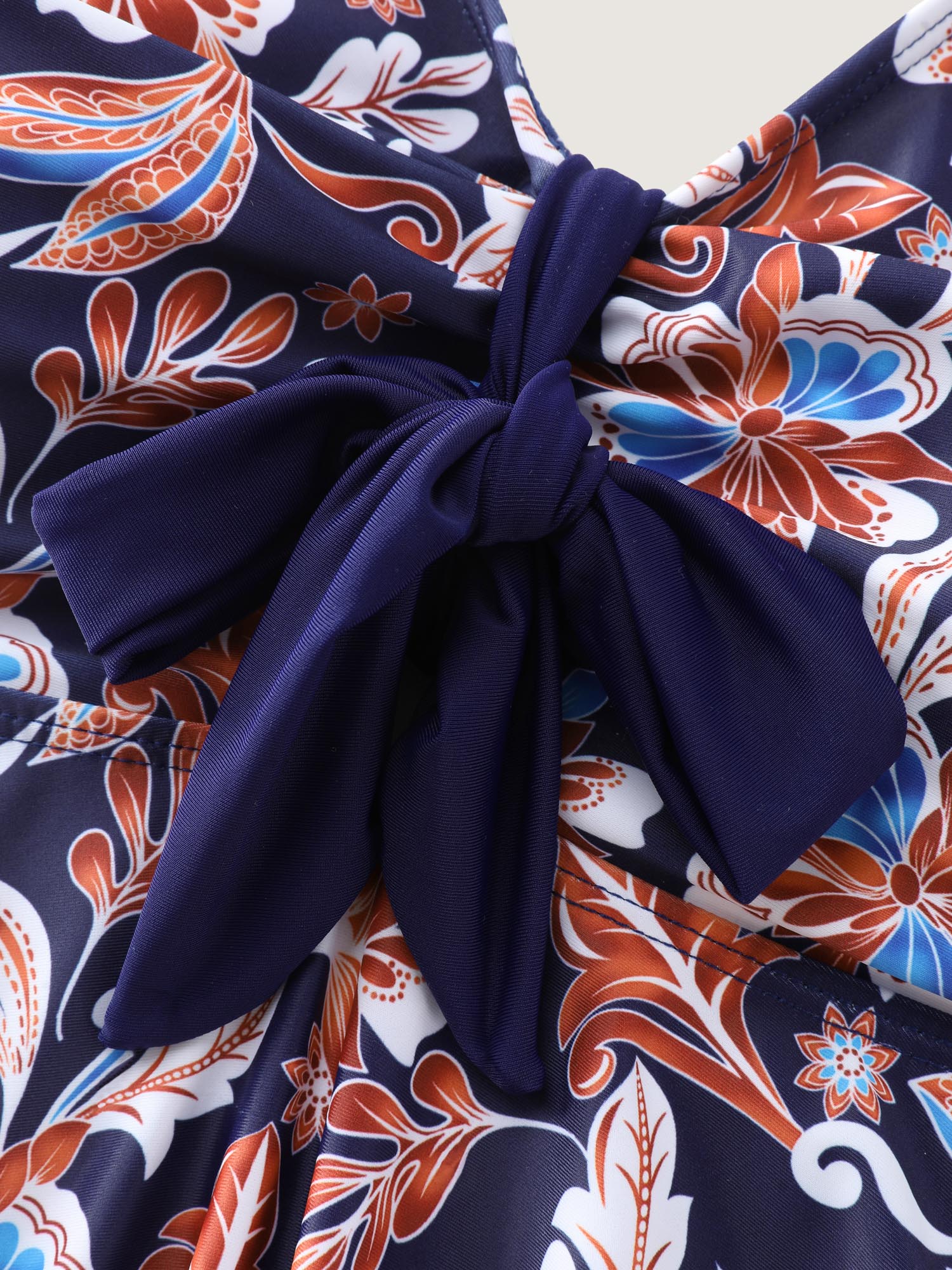 Floral Print Neck-Ribbon Swim Top