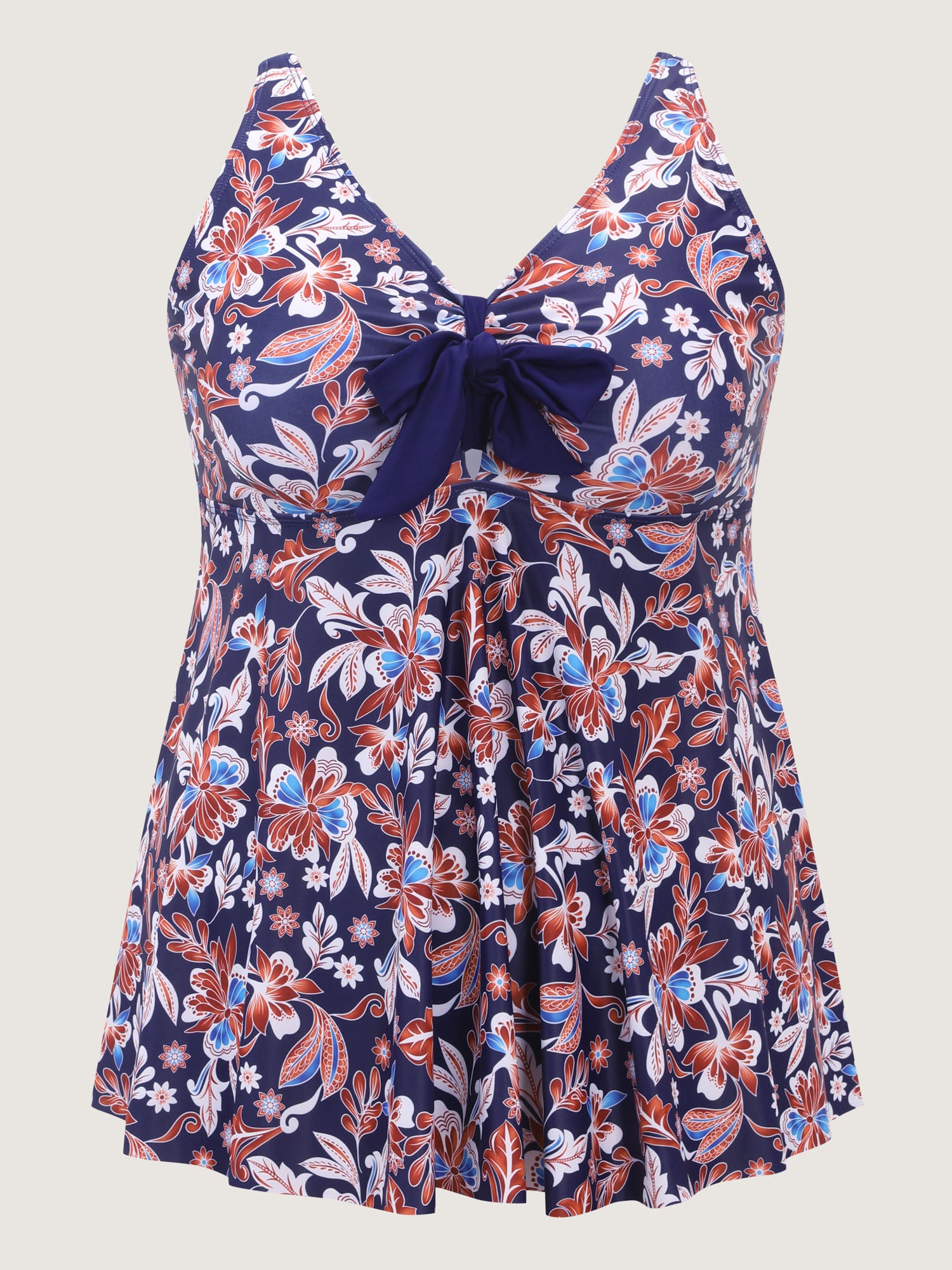 Shop Floral Print Neck-Ribbon Swim Top now and redefine your style with confidence at BloomChic. Tailored for mid and plus-size women. This trendy Swimwear Women, sizes 10-30. Color:Indigo;Style:Resort;Cup Type:Removable cups;Coverage:Full;Prints:Floral;Details:Knotted;Pocket:No-pocket;Belt:No-belt;Chest pad:Removable Padding;Structural function:Adaptive-Fit,Cinched & Flared;Swimsuit types:Tankini