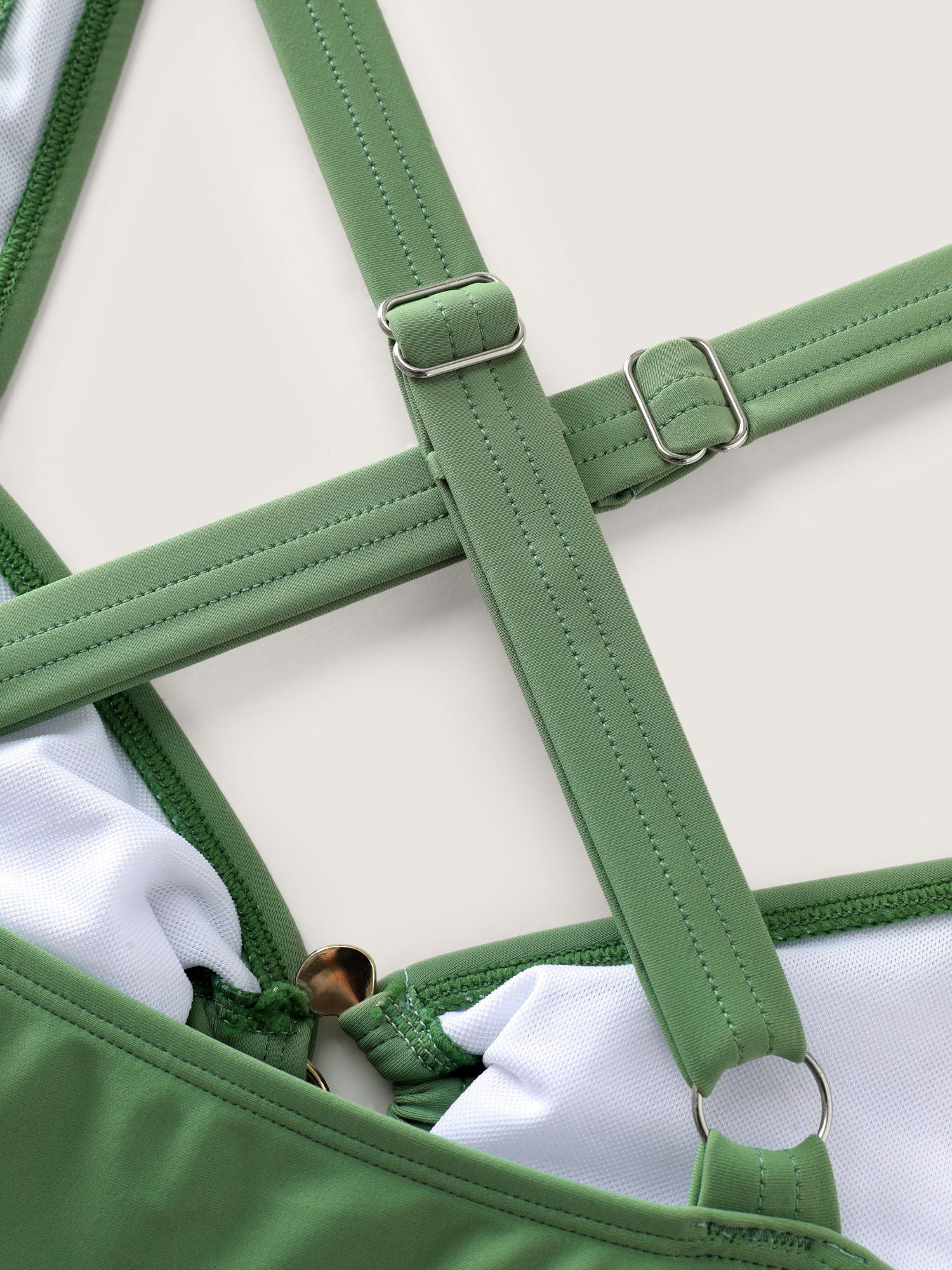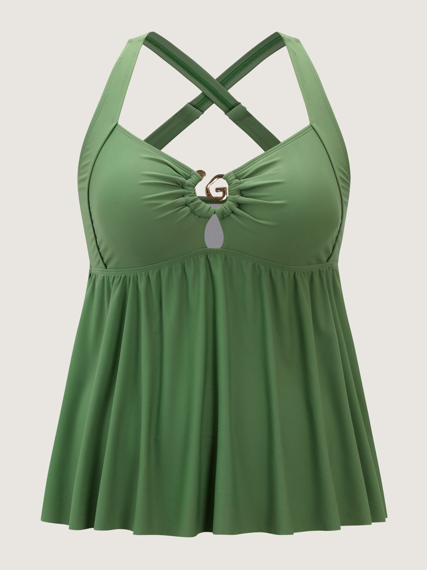 Shop Metal Buckle Keyhole Swim Top now and redefine your style with confidence at BloomChic. Tailored for mid and plus-size women. This trendy Swimwear Women, sizes 10-30. Color:Green Bean;Style:Resort;Cup Type:Removable cups;Coverage:Full;Prints:Non;Details:Cut-Out, Gathered;Pocket:No-pocket;Belt:No-belt;Chest pad:Removable Padding;Structural function:Adaptive-Fit;Swimsuit types:Tankini;Functional Fabric:Chlorine Resistant