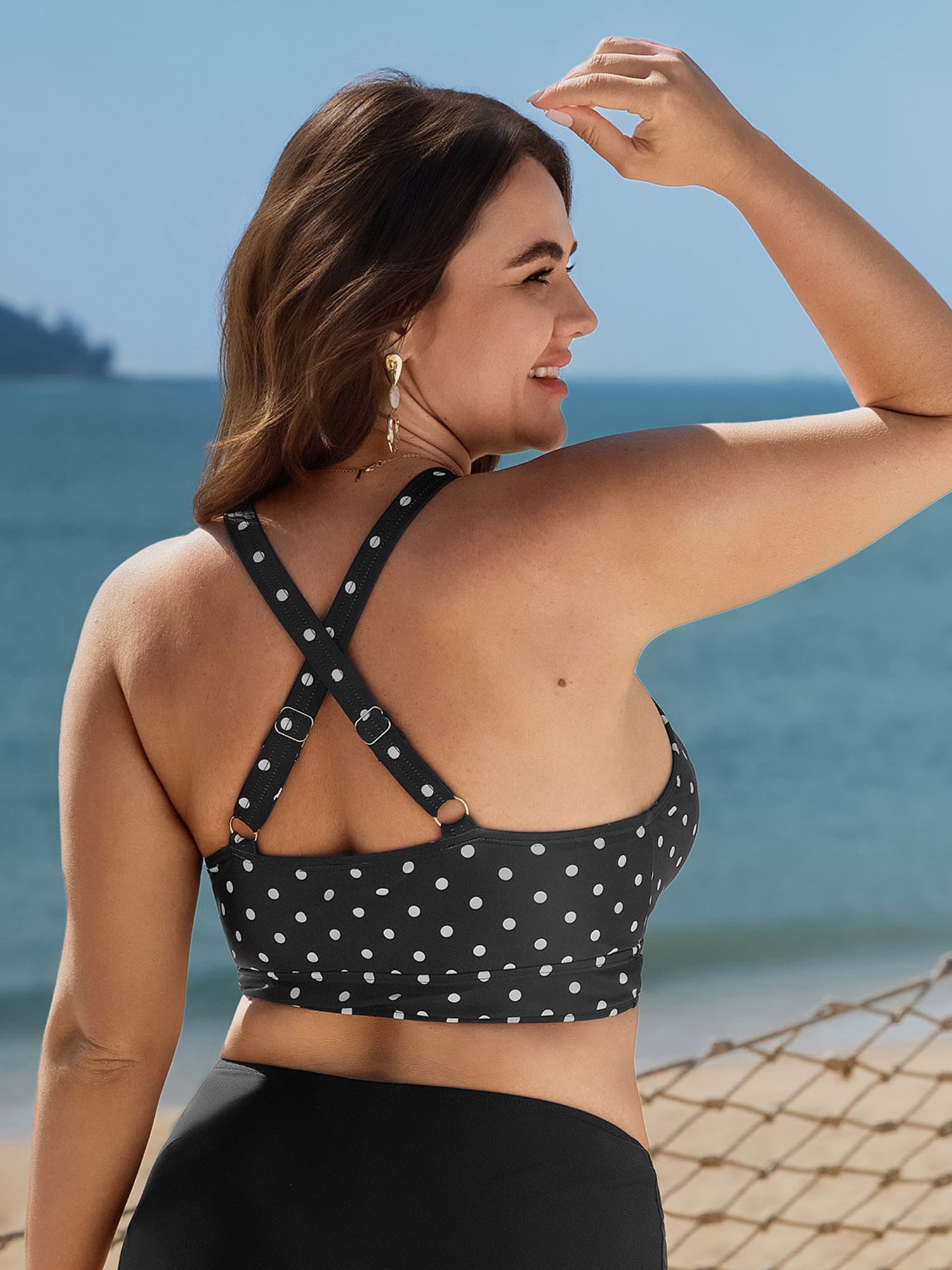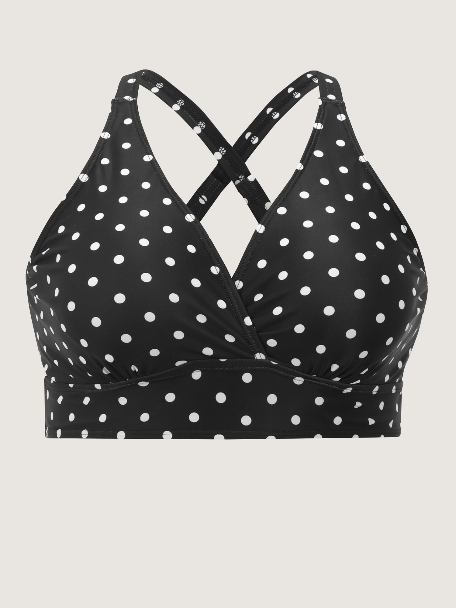 Shop Polka Dots Deep V-Neck Swim Top now and redefine your style with confidence at BloomChic. Tailored for mid and plus-size women. This trendy Swimwear Women, sizes 10-30. Color:Black;Style:Resort;Cup Type:Removable cups;Coverage:Full;Prints:Polka dots;Pocket:No-pocket;Belt:No-belt;Chest pad:Removable Padding;Structural function:Adaptive-Fit;Swimsuit types:Bikini Tops;Functional Fabric:UPF 50 Sun Protection