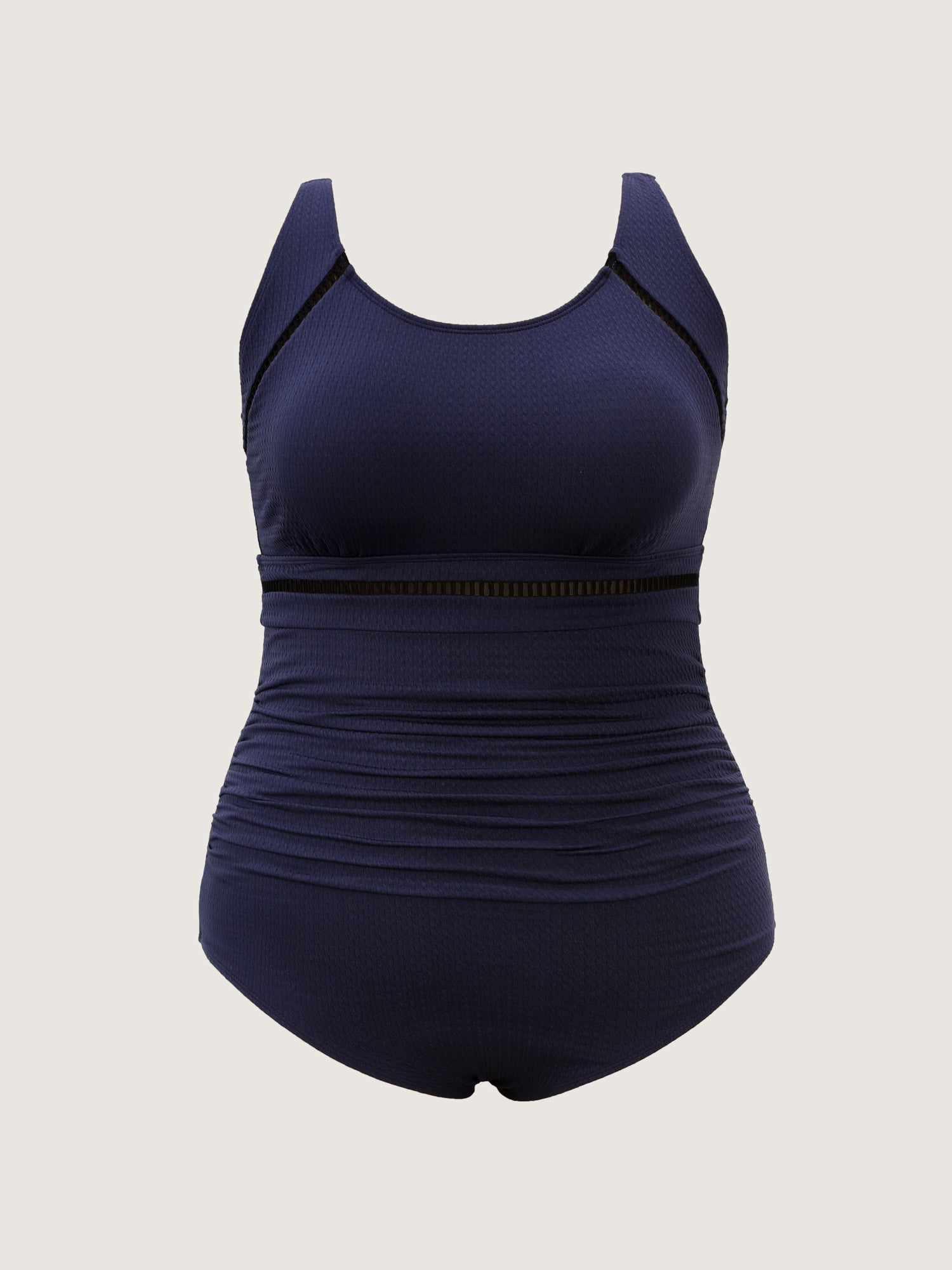 Shop Spliced Cut-Out Scoop Neck One Piece Swimsuit now and redefine your style with confidence at BloomChic. Tailored for mid and plus-size women. This trendy Swimwear Women, sizes 10-30. Color:Indigo;Style:Resort;Cup Type:Removable cups;Coverage:Full;Neckline:U-neck;Sleeve Type:Sleeveless;Prints:Non;Details:Cut-Out, Texture;Pocket:No-pocket;Belt:No-belt;Chest pad:Removable Padding;Lining:Lining;Closure Type:Non;Structural function:Tummy-Sculpt,Adaptive-Fit;Swimsuit types:One-Piece Triangle Swimsuit