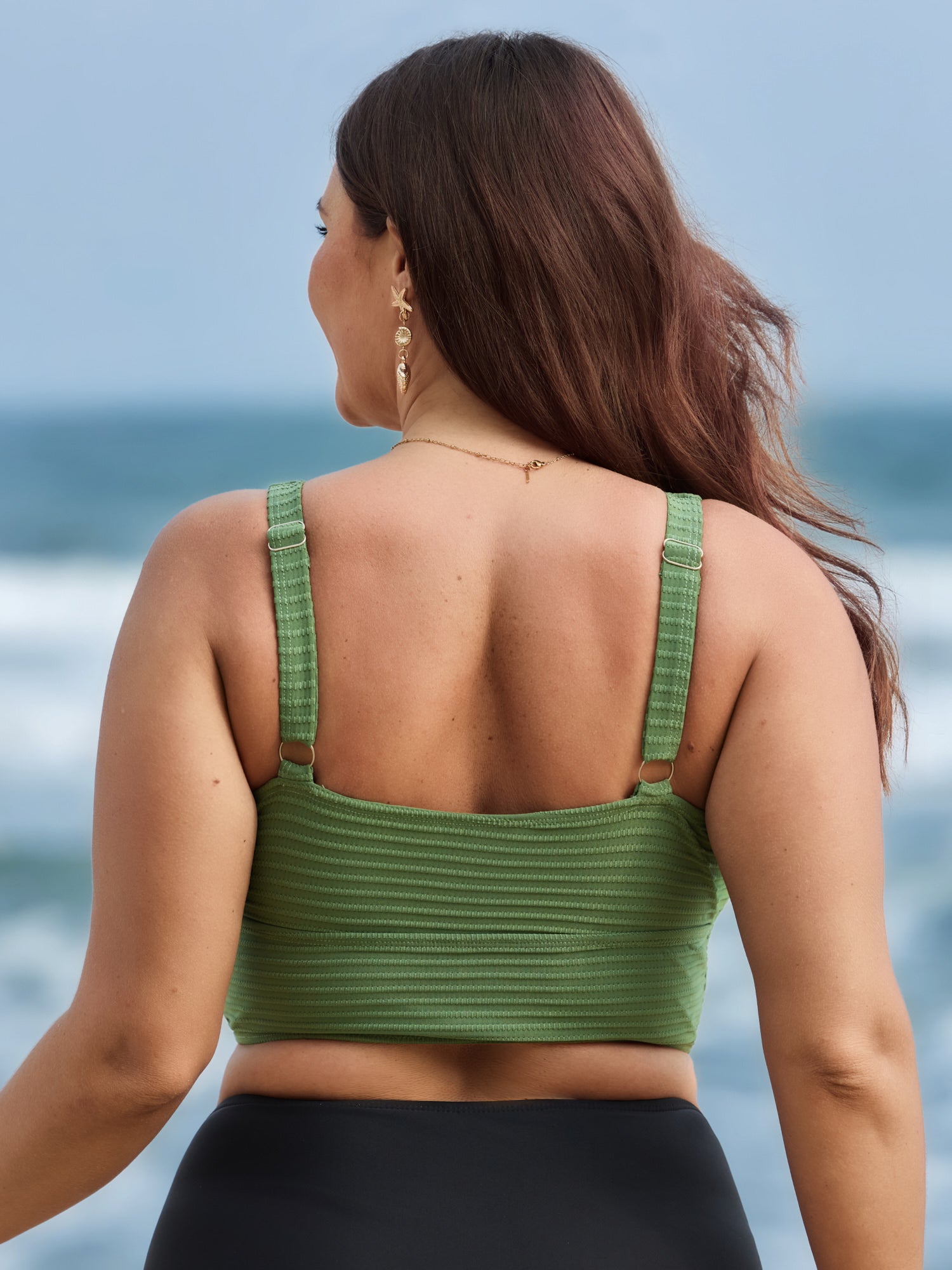 Shop Textured U-Neck Swim Top now and redefine your style with confidence at BloomChic. Tailored for mid and plus-size women. This trendy Swimwear Women, sizes 10-30. Color:Moss;Style:Resort;Coverage:Full;Prints:Non;Details:Texture;Pocket:No-pocket;Belt:No-belt;Chest pad:Removable Padding;Structural function:Adaptive-Fit