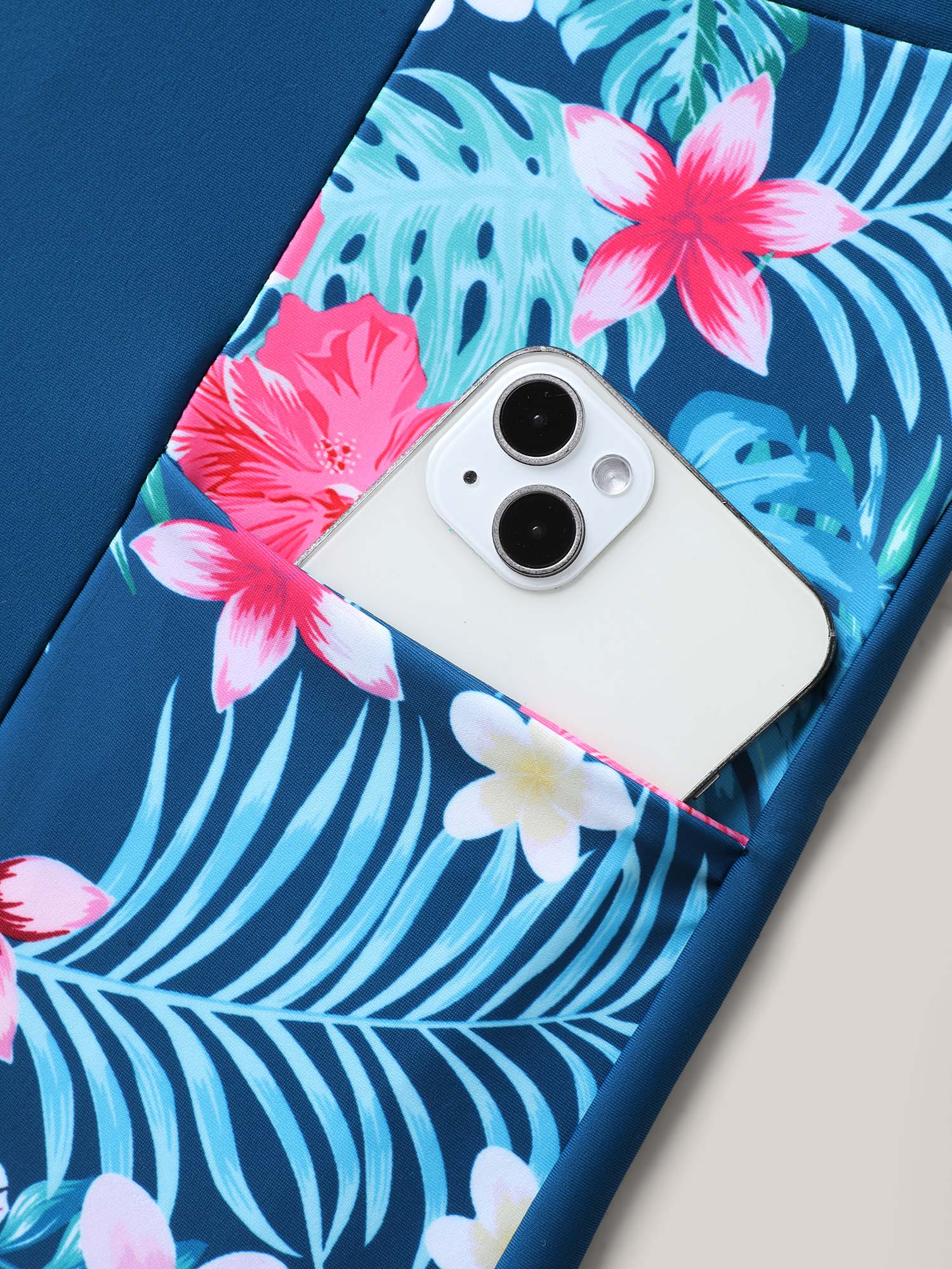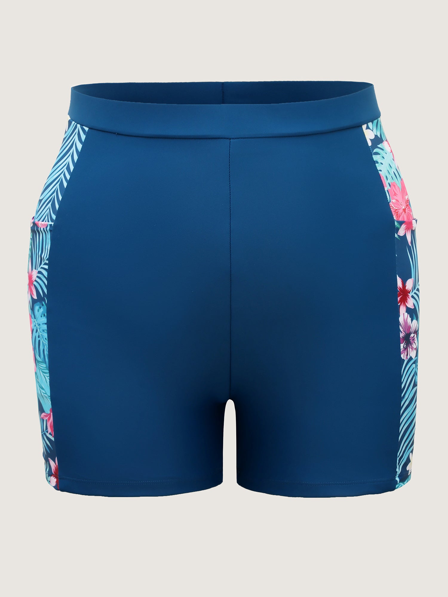 Tropical Print Side Pockets Contrast Swim Bottoms