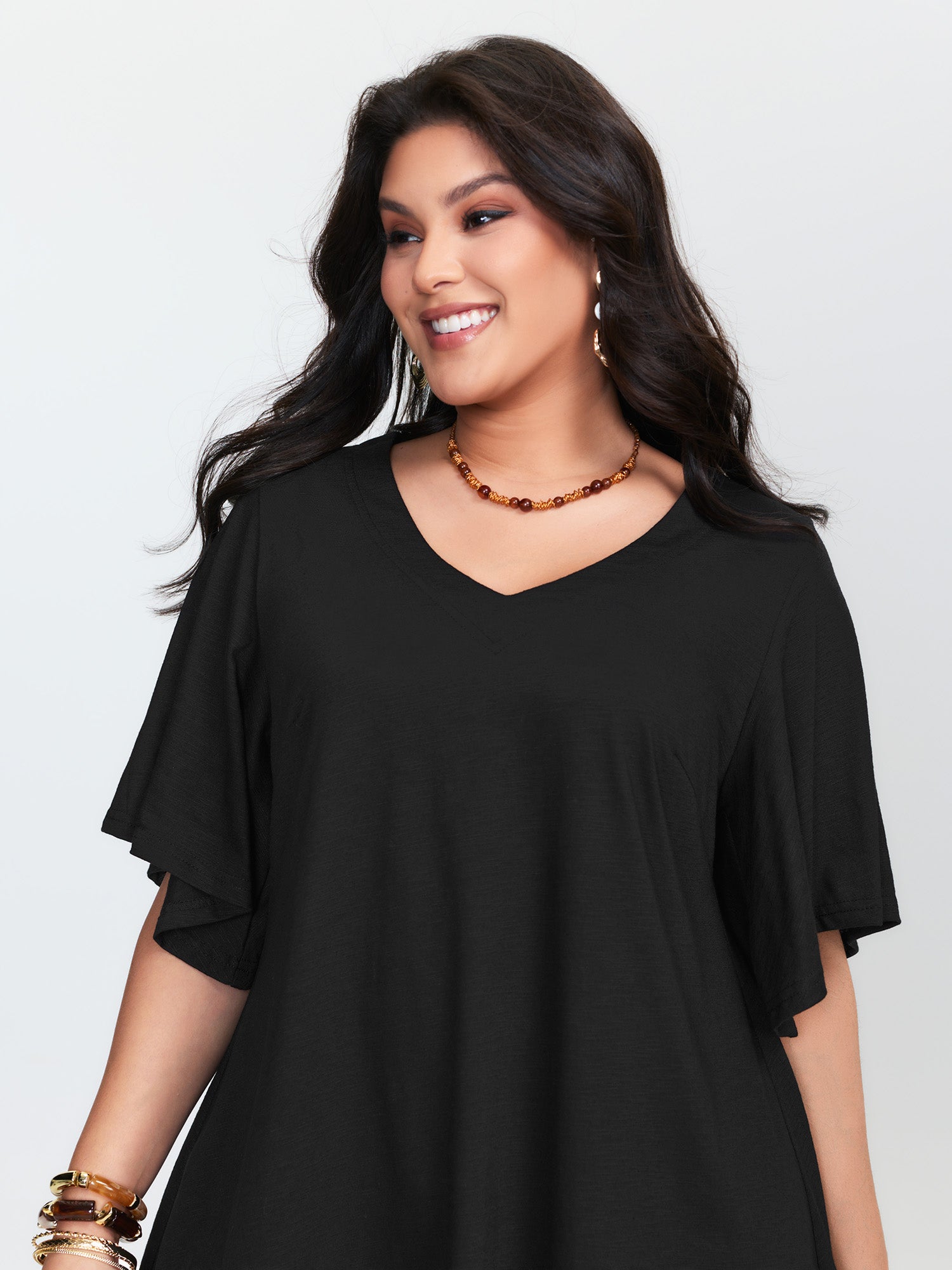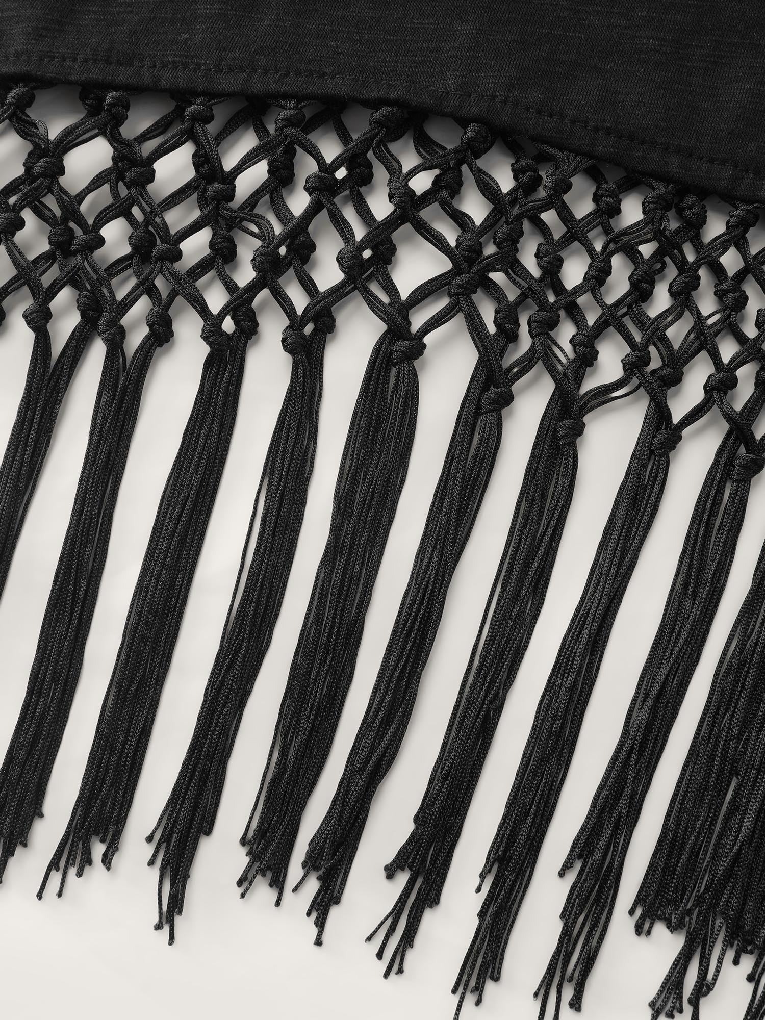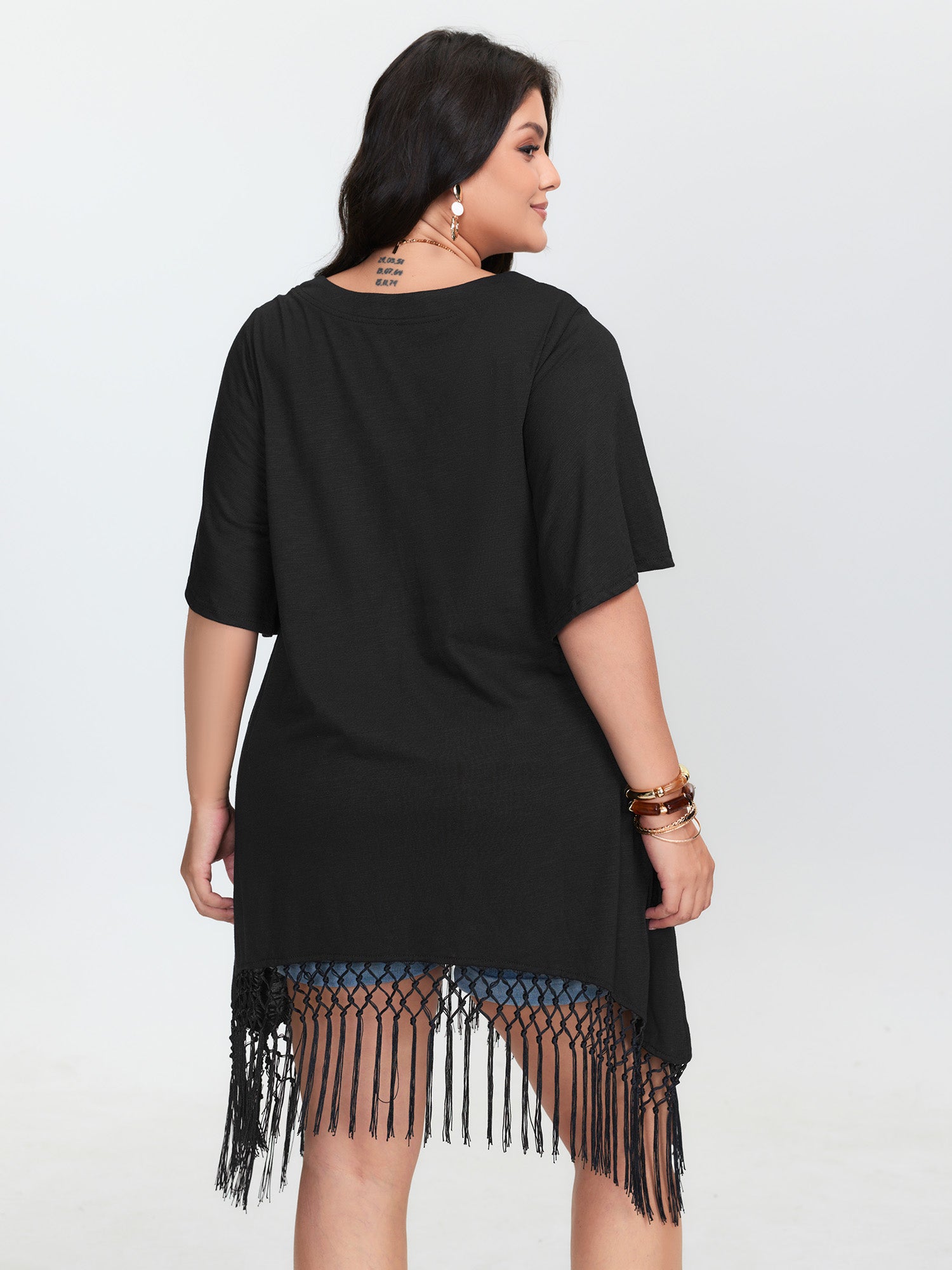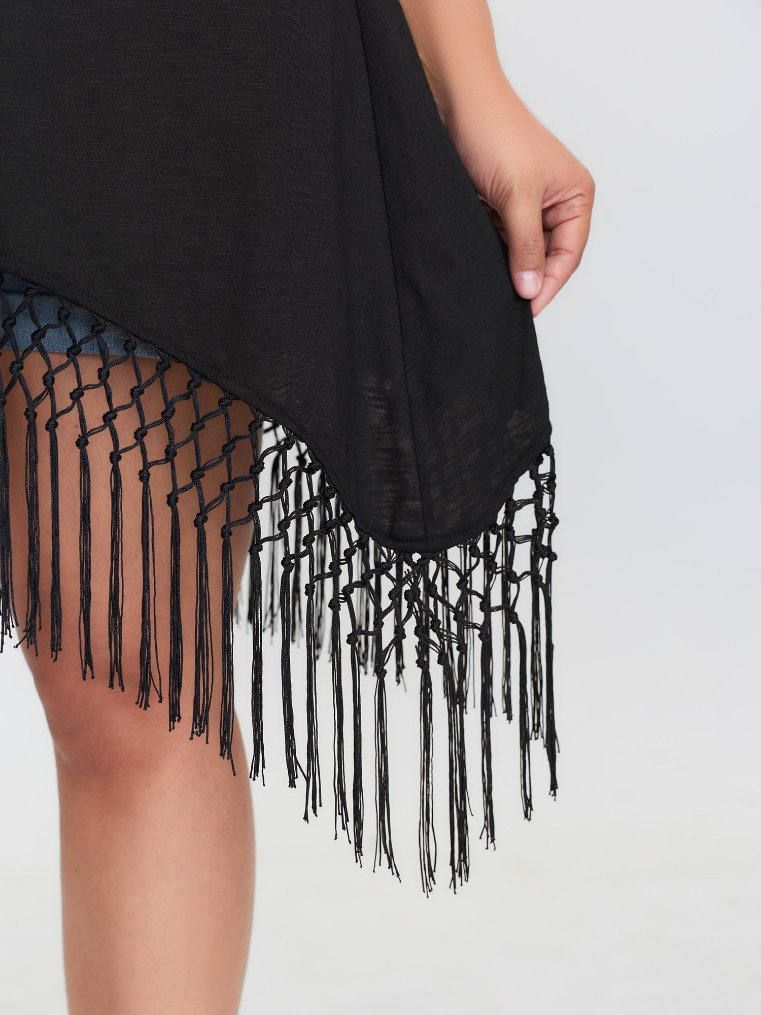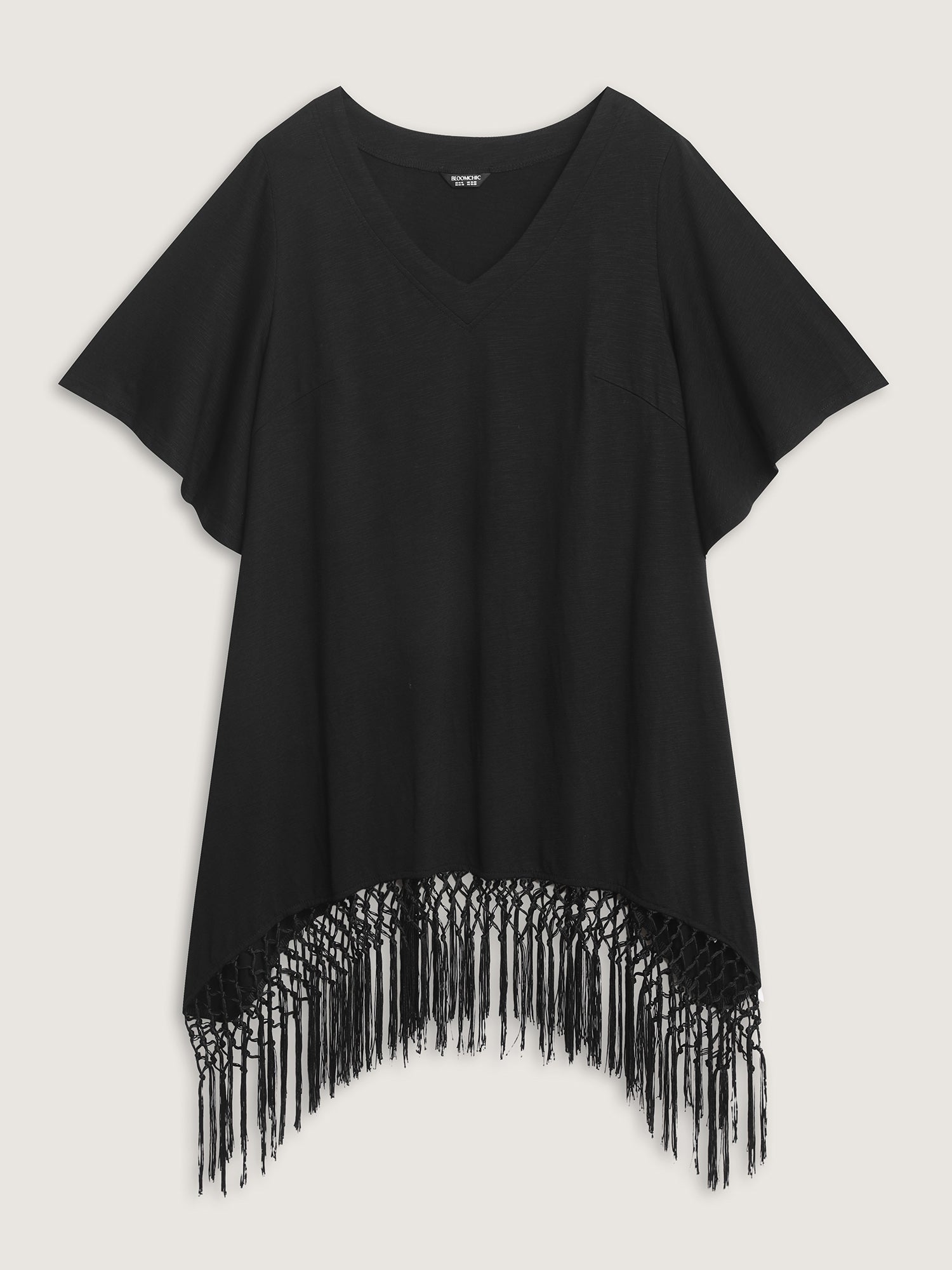 Shop Asymmetrical Tassel Hem Plain Tunic now and redefine your style with confidence at BloomChic. Tailored for mid and plus-size women. This trendy Tops Women, sizes 10-30. Color:Black;Style:Boho;Prints:Non;Neckline:V-neck;Sleeve Type:Regular Sleeve;Pocket:No-pocket