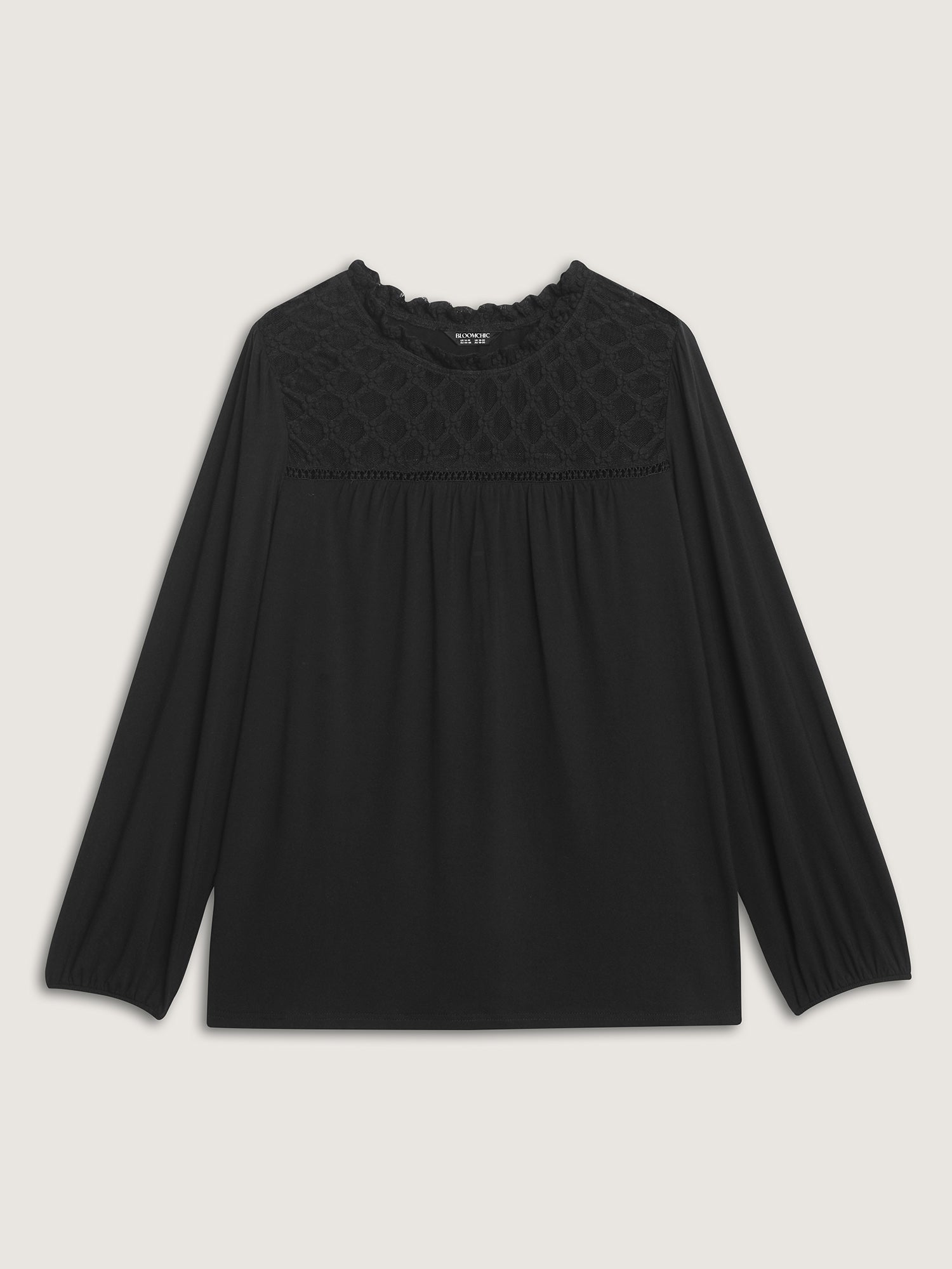Shop Checkered Mesh Ruffled Neckline Knit Top now and redefine your style with confidence at BloomChic. Tailored for mid and plus-size women. This trendy Tops Women, sizes 10-30. Color:Black;Style:Office;Prints:Synthetic texture;Neckline:Mock Neck;Sleeve Type:Regular cuff;Pocket:No-pocket