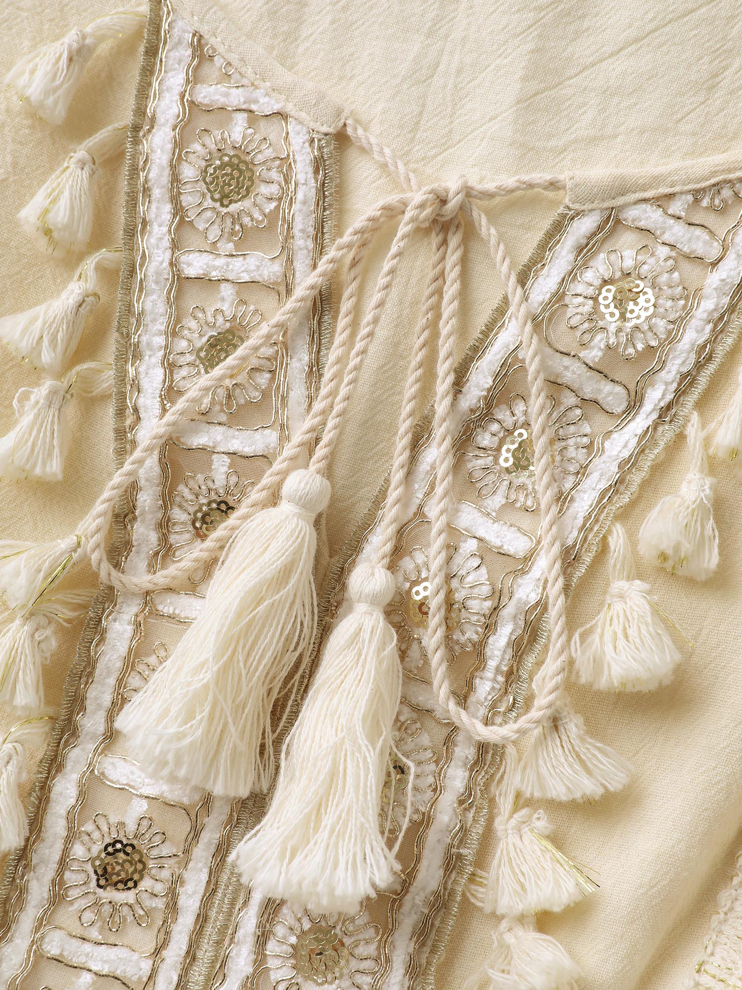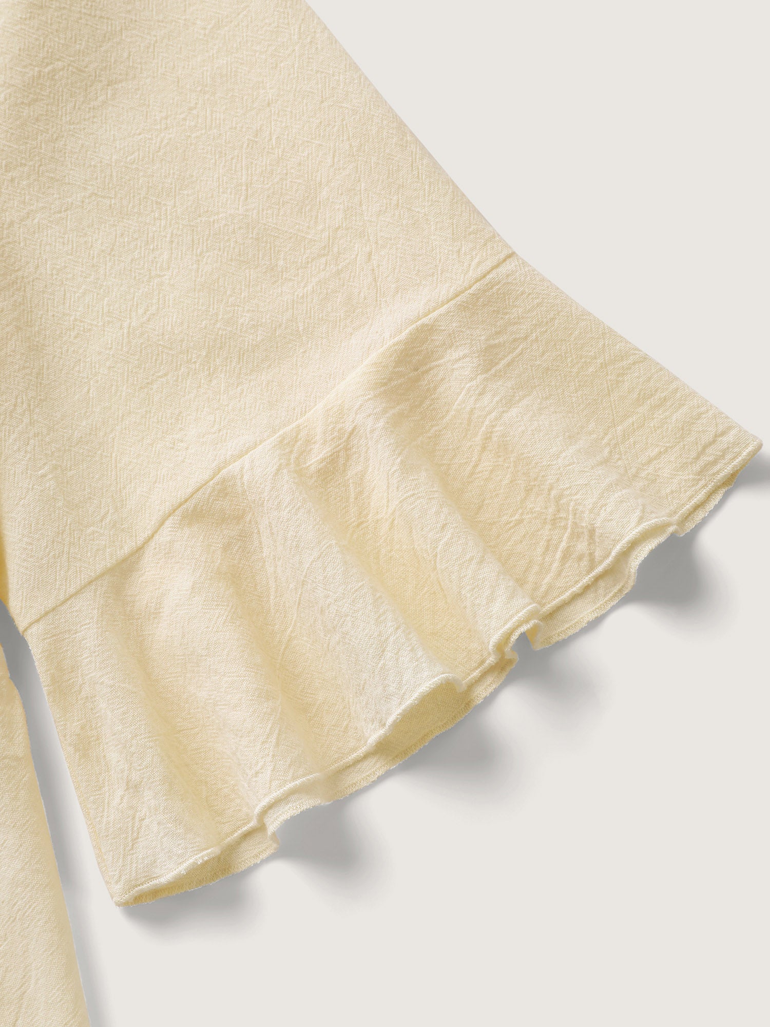 Cotton Tassel Neckline Ruffled Sleeve Solid Top