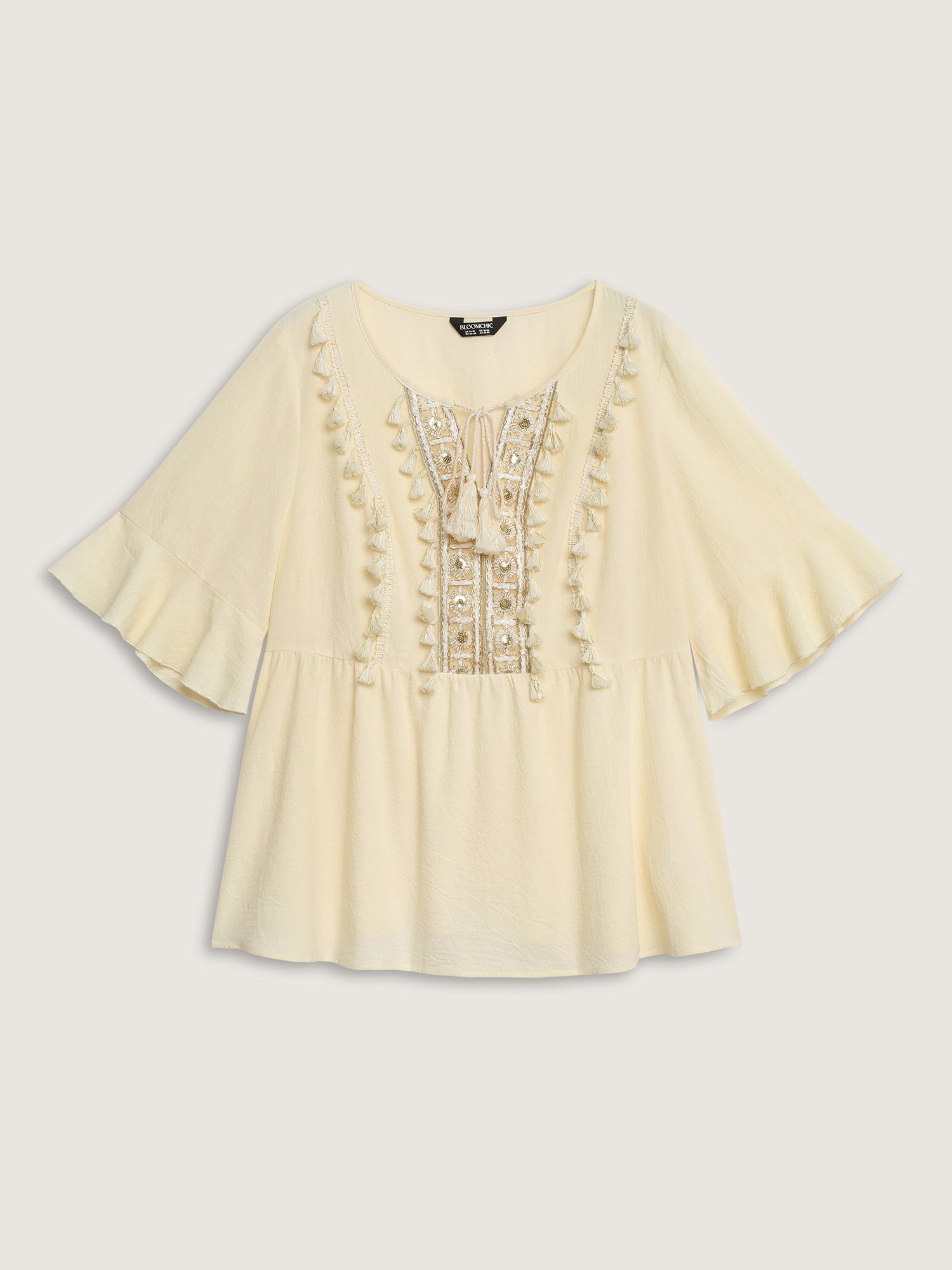 Shop Cotton Tassel Neckline Ruffled Sleeve Solid Top at BloomChic. Plus Size Clothing & Plus Size Jersey Tops. BloomChic is a digital-first fashion and lifestyle destination for modern women sizes 10-30.