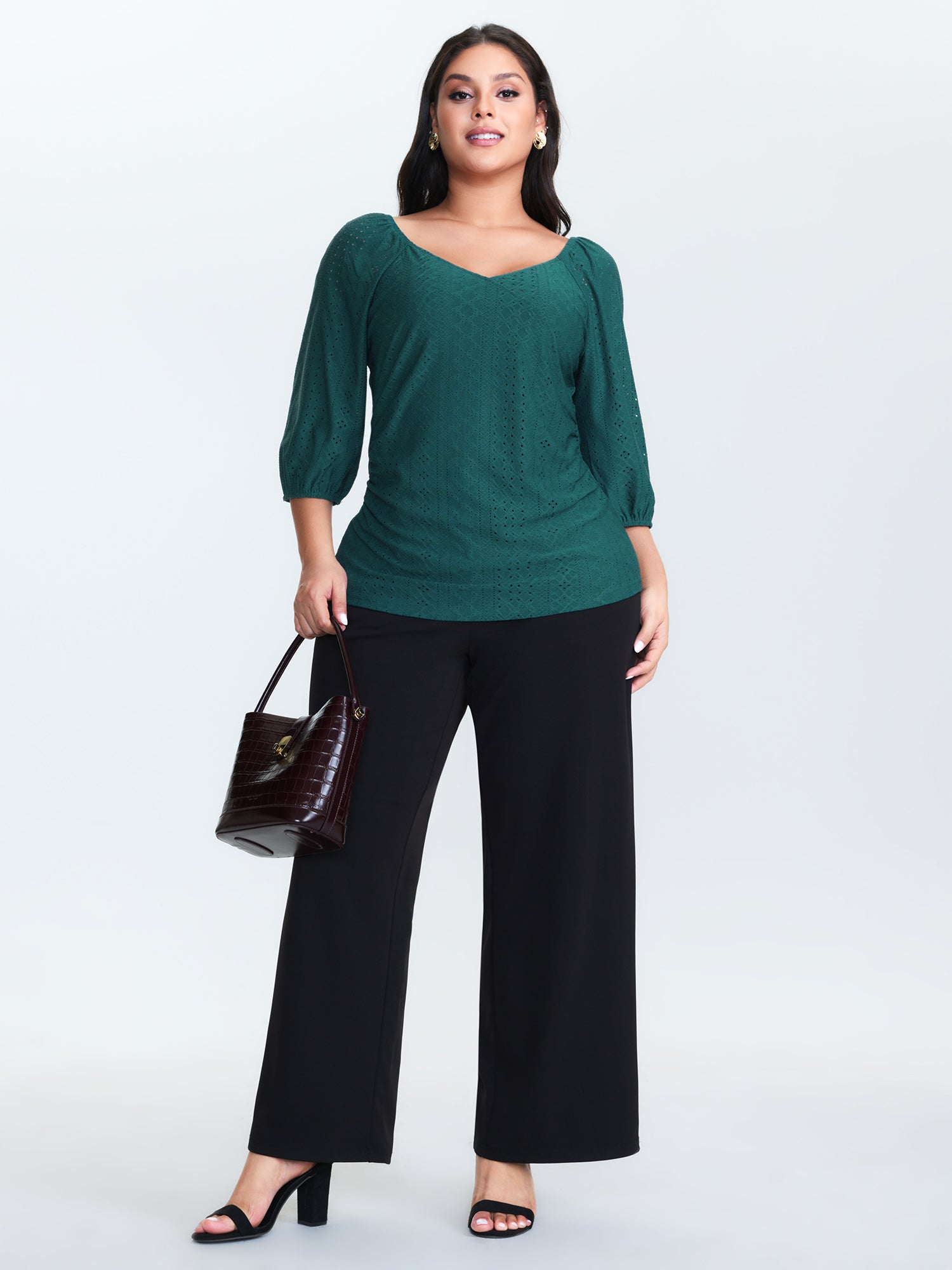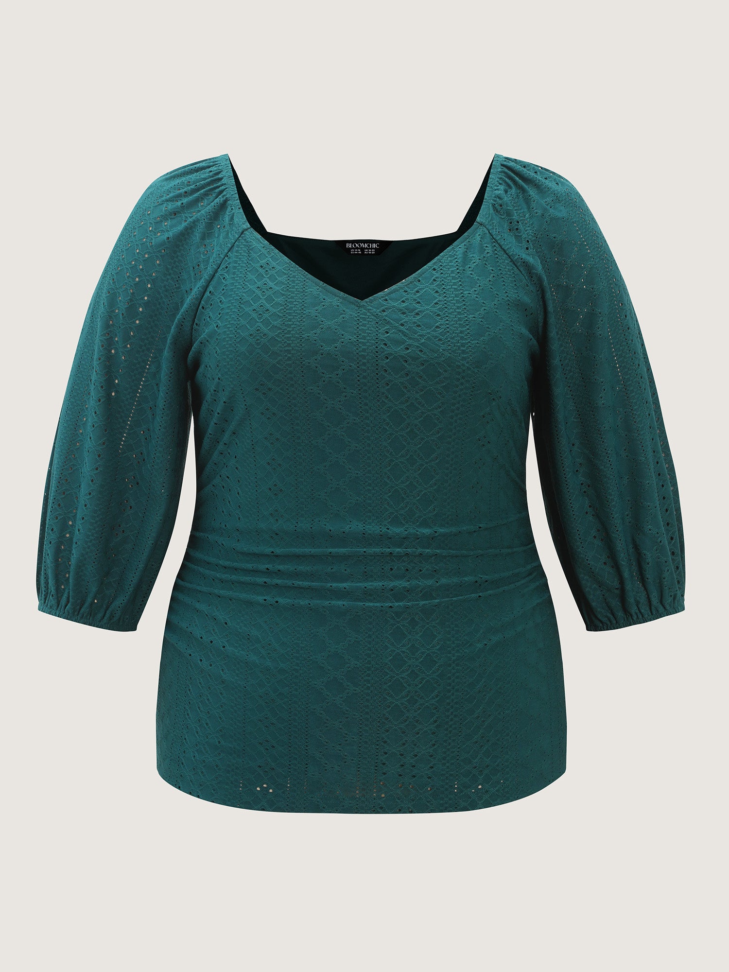 Shop Draped Textured Fitted Jersey Top now and redefine your style with confidence at BloomChic. Tailored for mid and plus-size women. This trendy Tops Women, sizes 10-30. Color:Dark Green;Style:Timeless;Prints:Synthetic texture;Neckline:Overlap Collar;Sleeve Type:Elastic cuff;Details:Texture, Gathered, Overlapping;Pocket:No-pocket