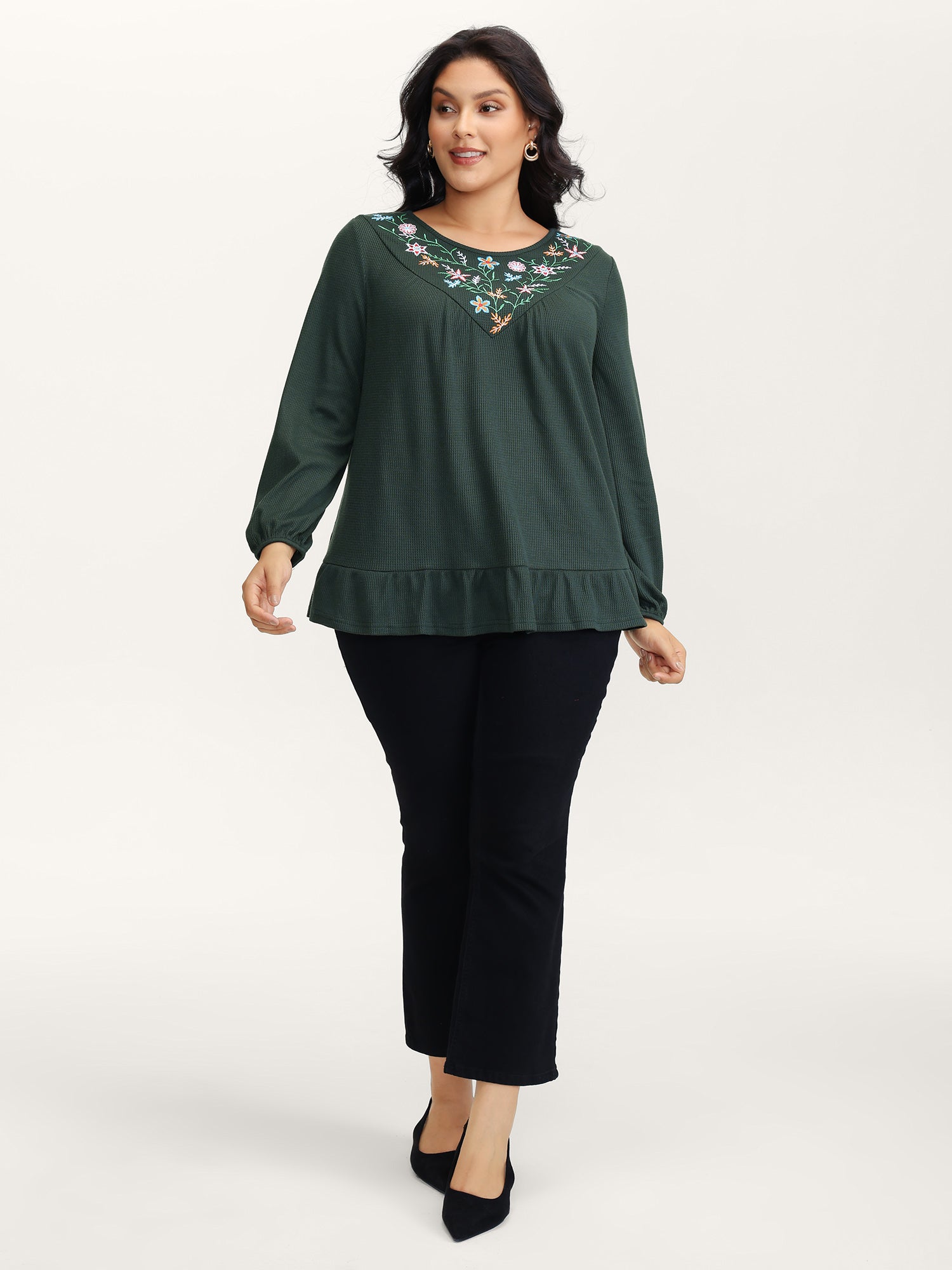 Shop Embroidered Waffle Ruffled Hem Knit Top at BloomChic. Plus Size Clothing & Plus Size Jersey Tops. BloomChic is a digital-first fashion and lifestyle destination for modern women sizes 10-30.