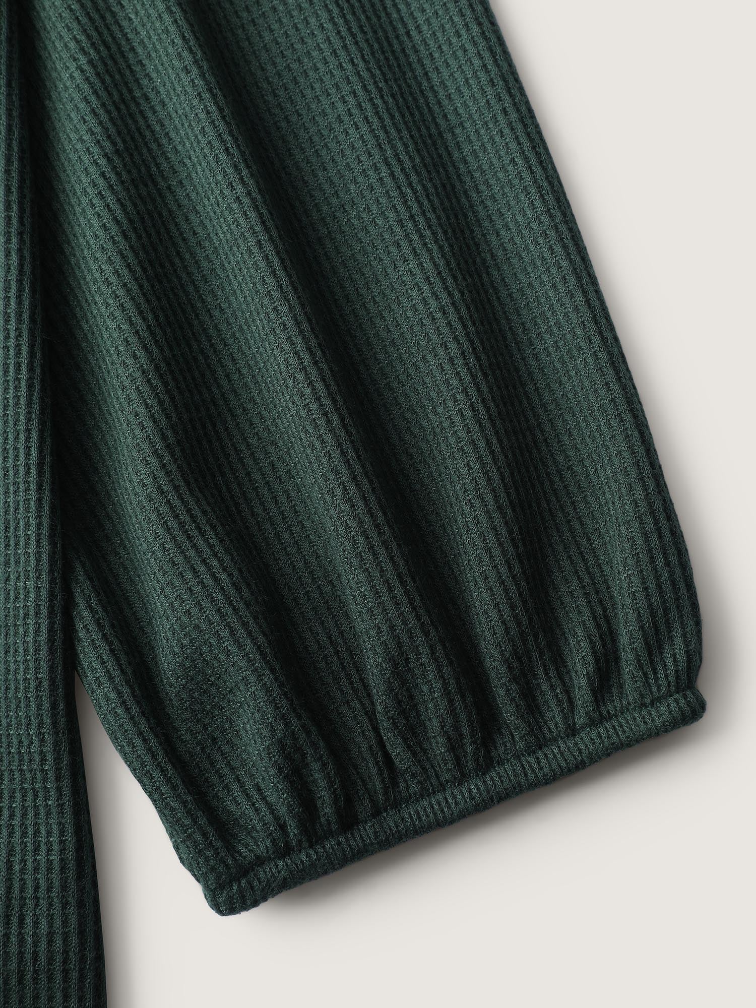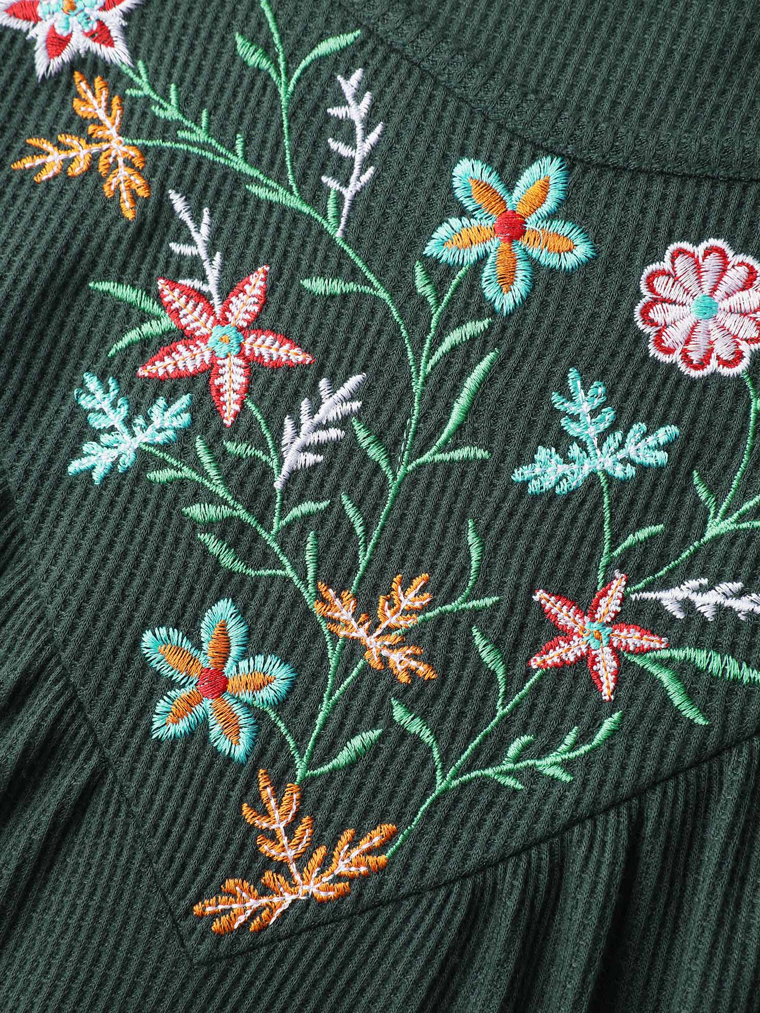 Embroidered Waffle Ruffled Hem Knit Top