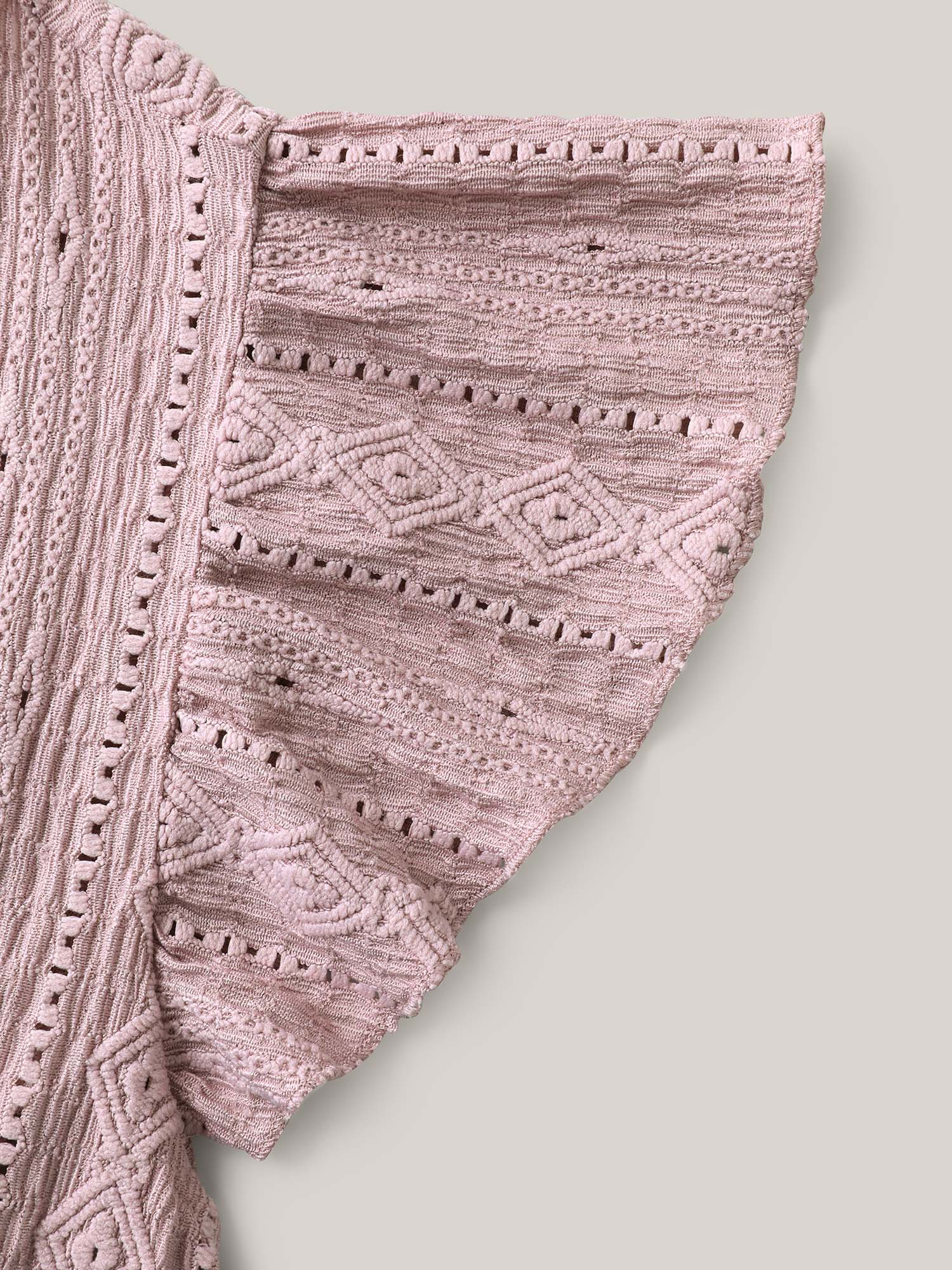 Eyelet Trim Textured Flutter Sleeve Top