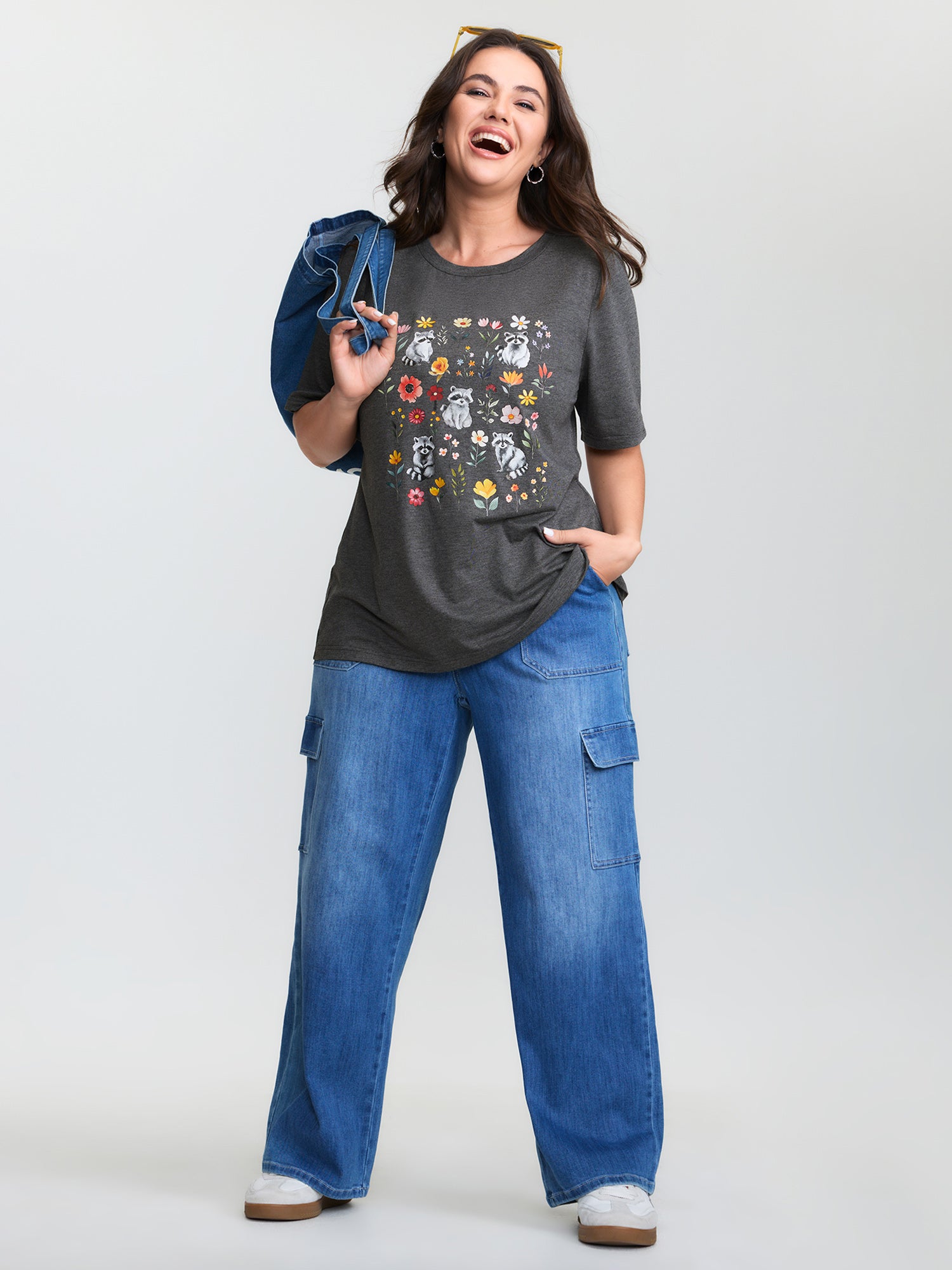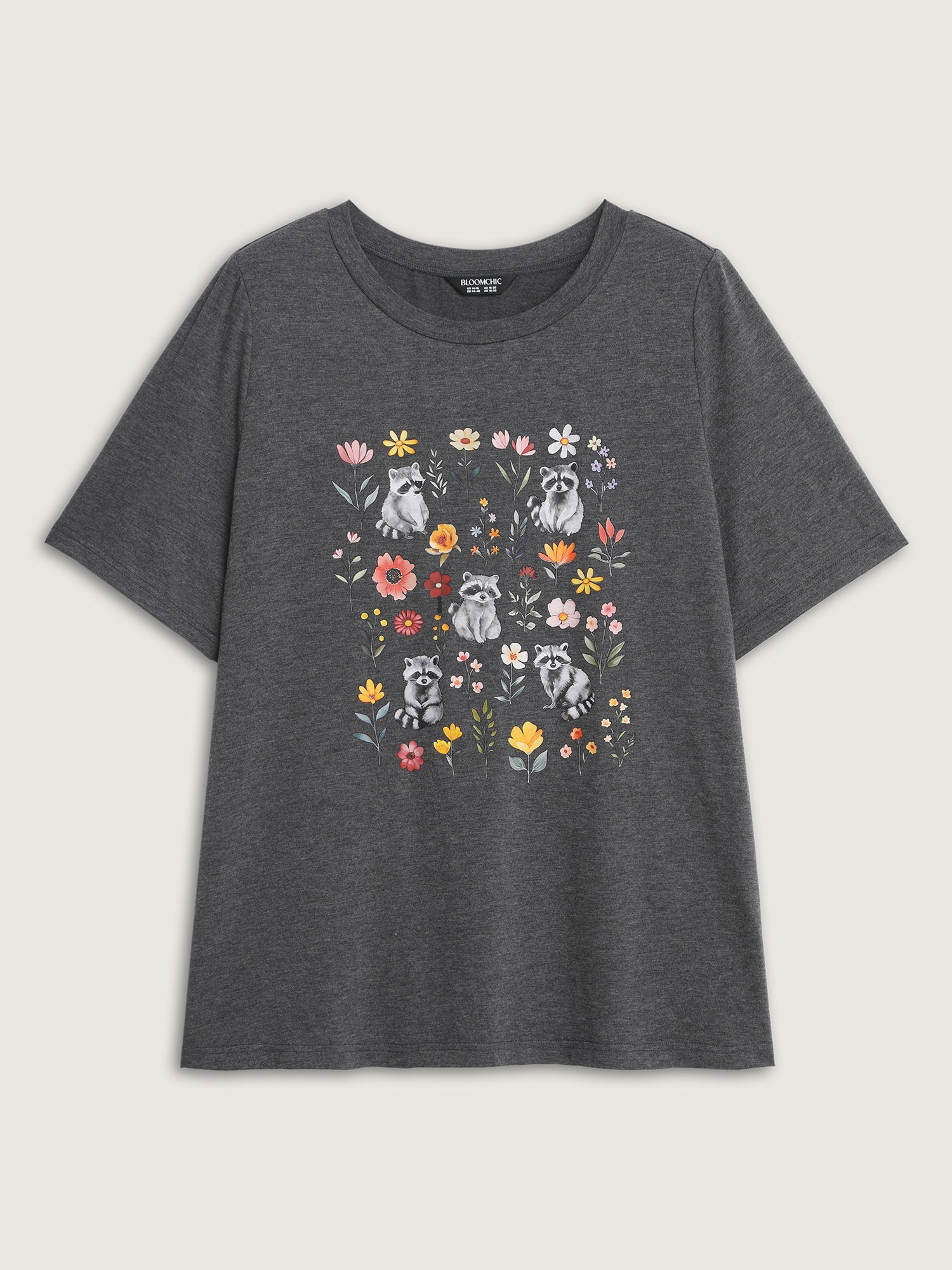 Shop Floral Print Stretchy Round Neck T-Shirt now and redefine your style with confidence at BloomChic. Tailored for mid and plus-size women. This trendy Tops Women, sizes 10-30. Color:Dim Gray;Style:Playful;Pattern Type:Animals;Prints:Non;Neckline:Round Neck;Sleeve Type:Regular Sleeve;Pocket:No-pocket