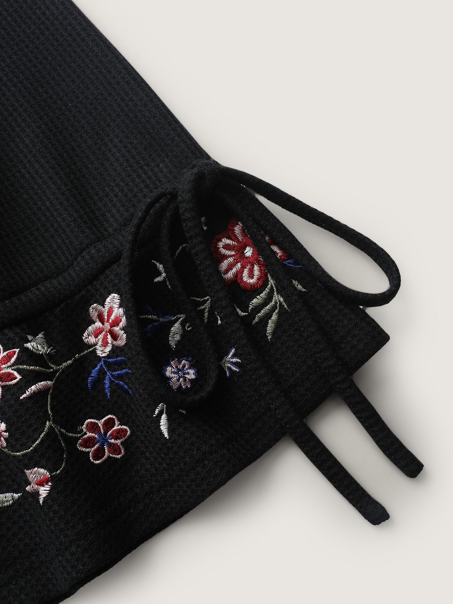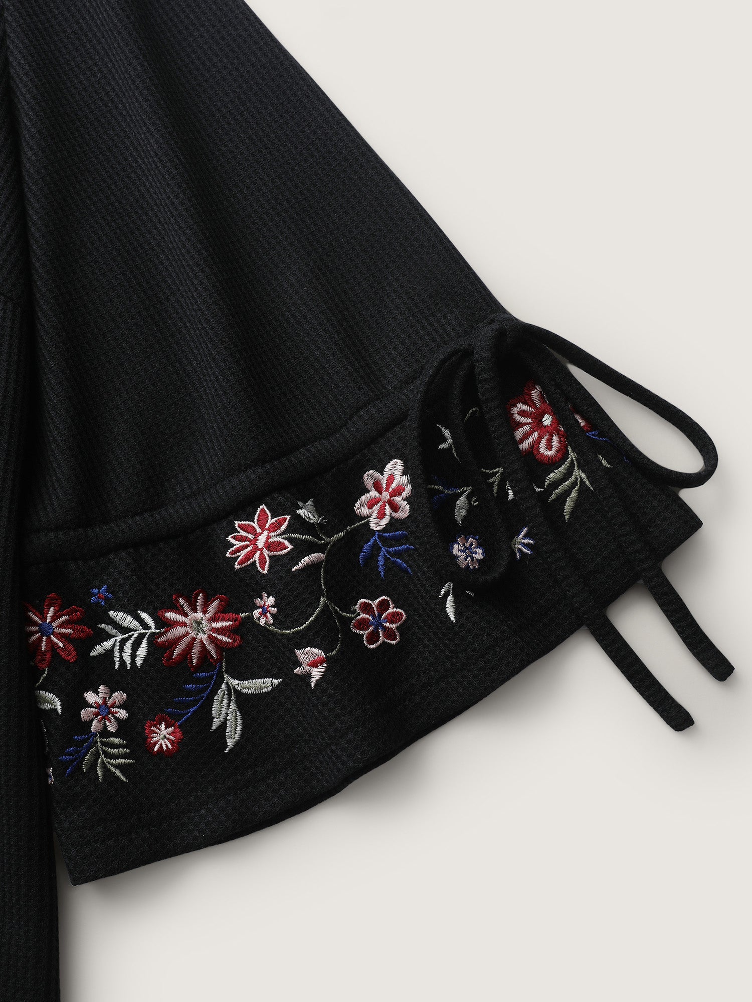 Floral Sleeve Embroidery Drawstring Knit Top