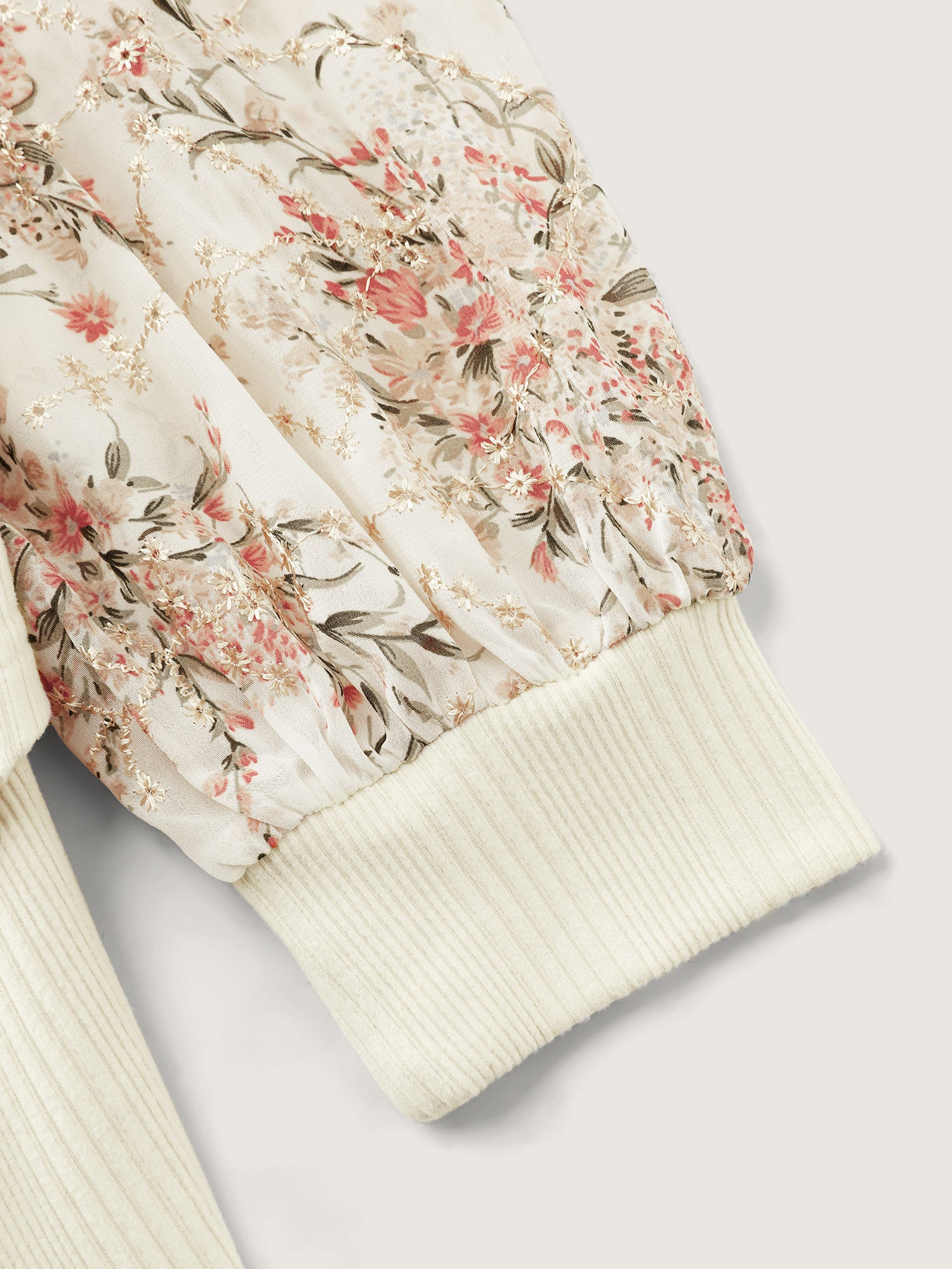 Shop Floral Sleeve Wrap Knit Top now and redefine your style with confidence at BloomChic. Tailored for mid and plus-size women. This trendy Tops Women, sizes 10-30. Color:Beige;Style:Romantic;Prints:Ditsy floral;Neckline:Overlap Collar;Sleeve Type:Lantern Sleeve;Details:Overlapping, Texture, Patchwork;Pocket:No-pocket