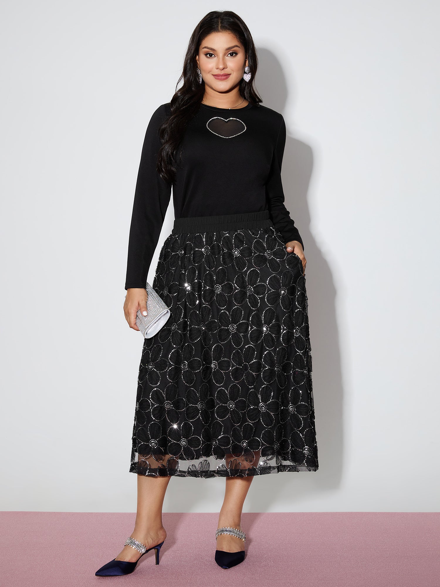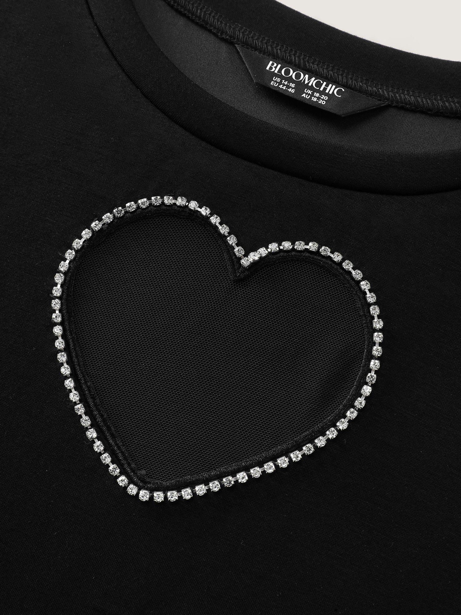 Shop Heart-Shaped Cut-Out Diamond T-Shirt now and redefine your style with confidence at BloomChic. Tailored for mid and plus-size women. This trendy Tops Women, sizes 10-30. Color:Black;Style:Party&Cocktail;Prints:Non;Neckline:Round Neck;Sleeve Type:Regular Sleeve;Pocket:No-pocket