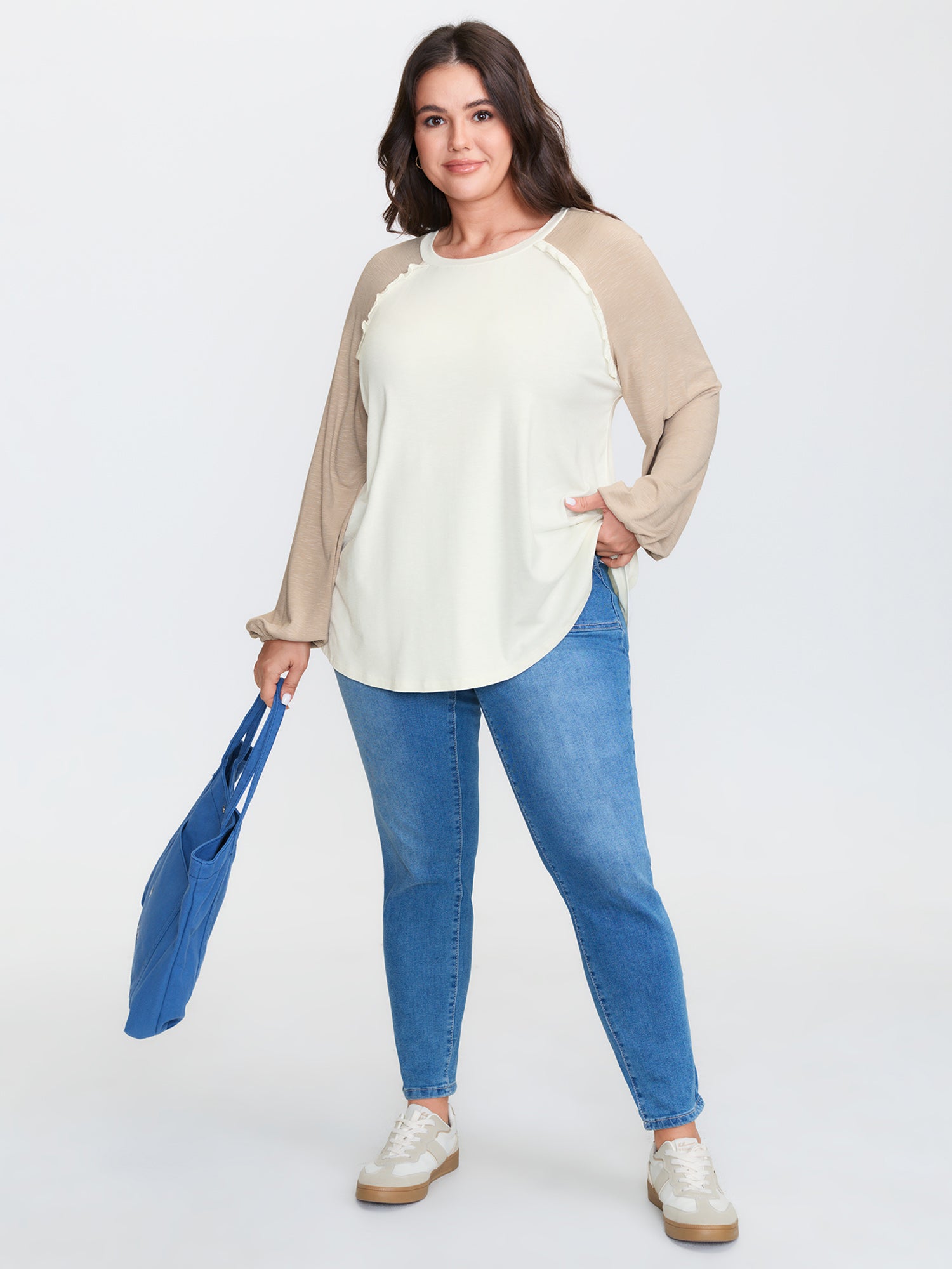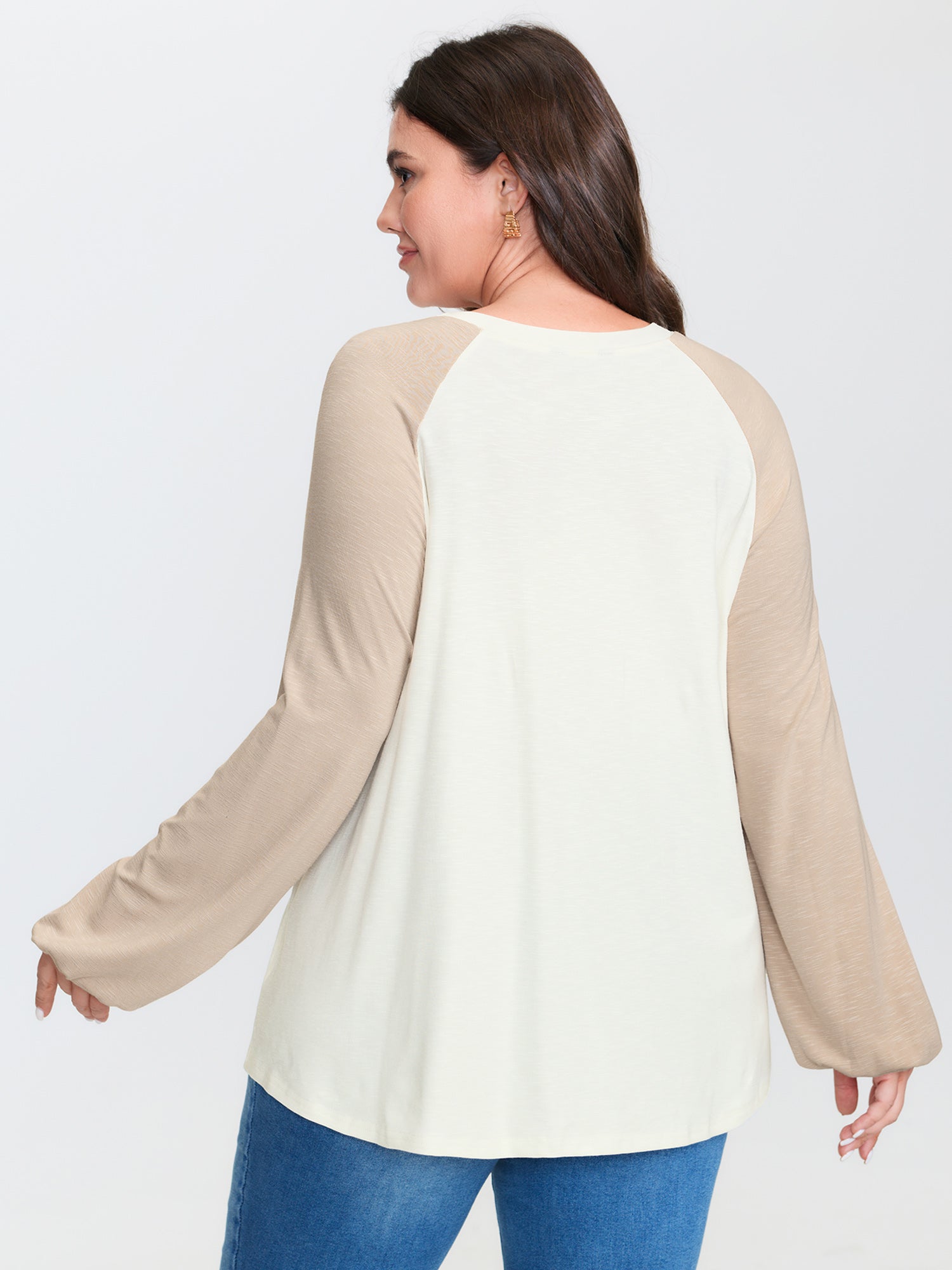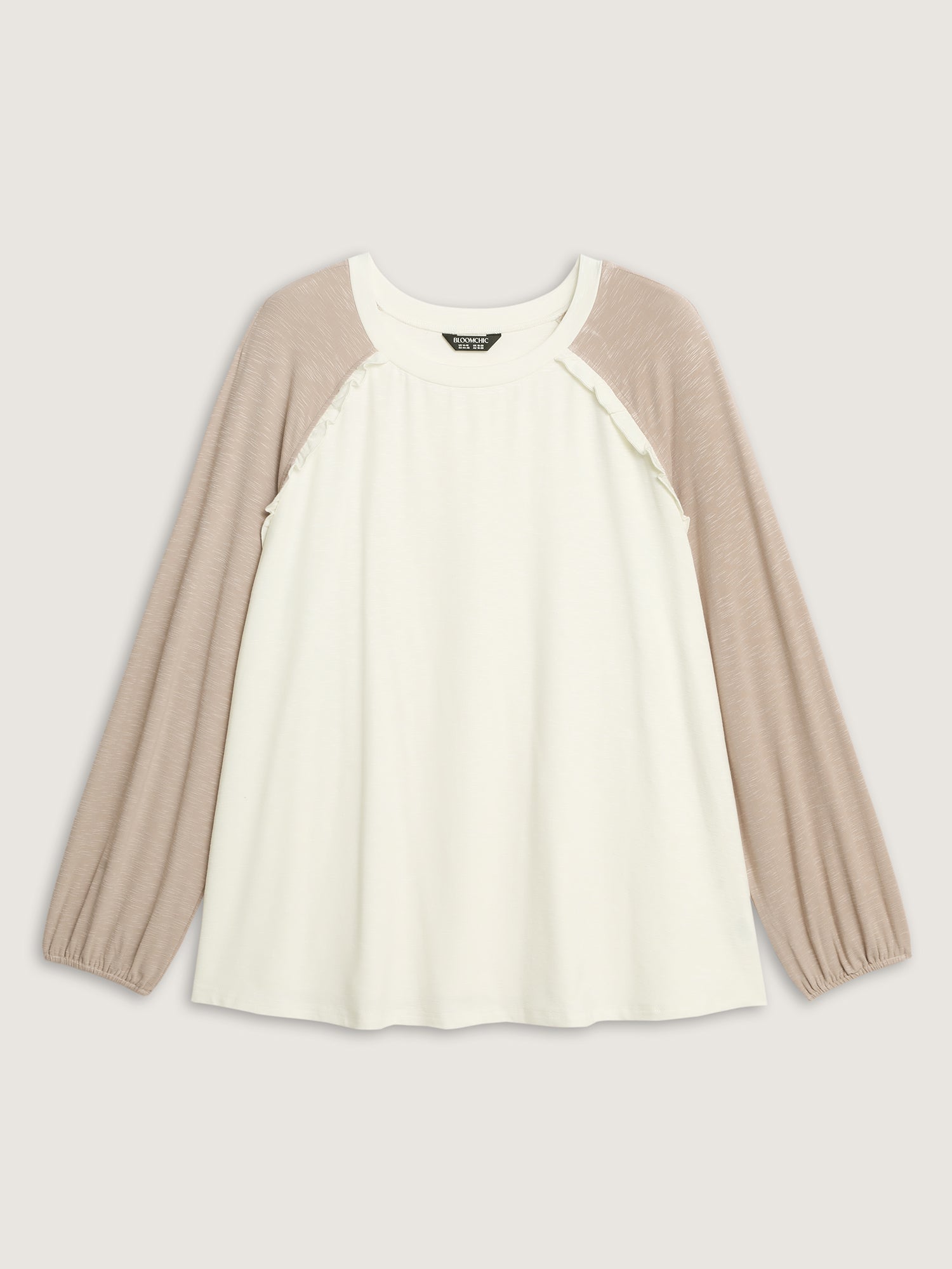 Shop Lace Trim Raglan Sleeve Color Contrast T-Shirt now and redefine your style with confidence at BloomChic. Tailored for mid and plus-size women. This trendy Tops Women, sizes 10-30. Color:White Smoke;Style:Leisure;Prints:Non;Neckline:Round Neck;Sleeve Type:Lantern Sleeve;Details:Ruffles, Contrast;Pocket:No-pocket