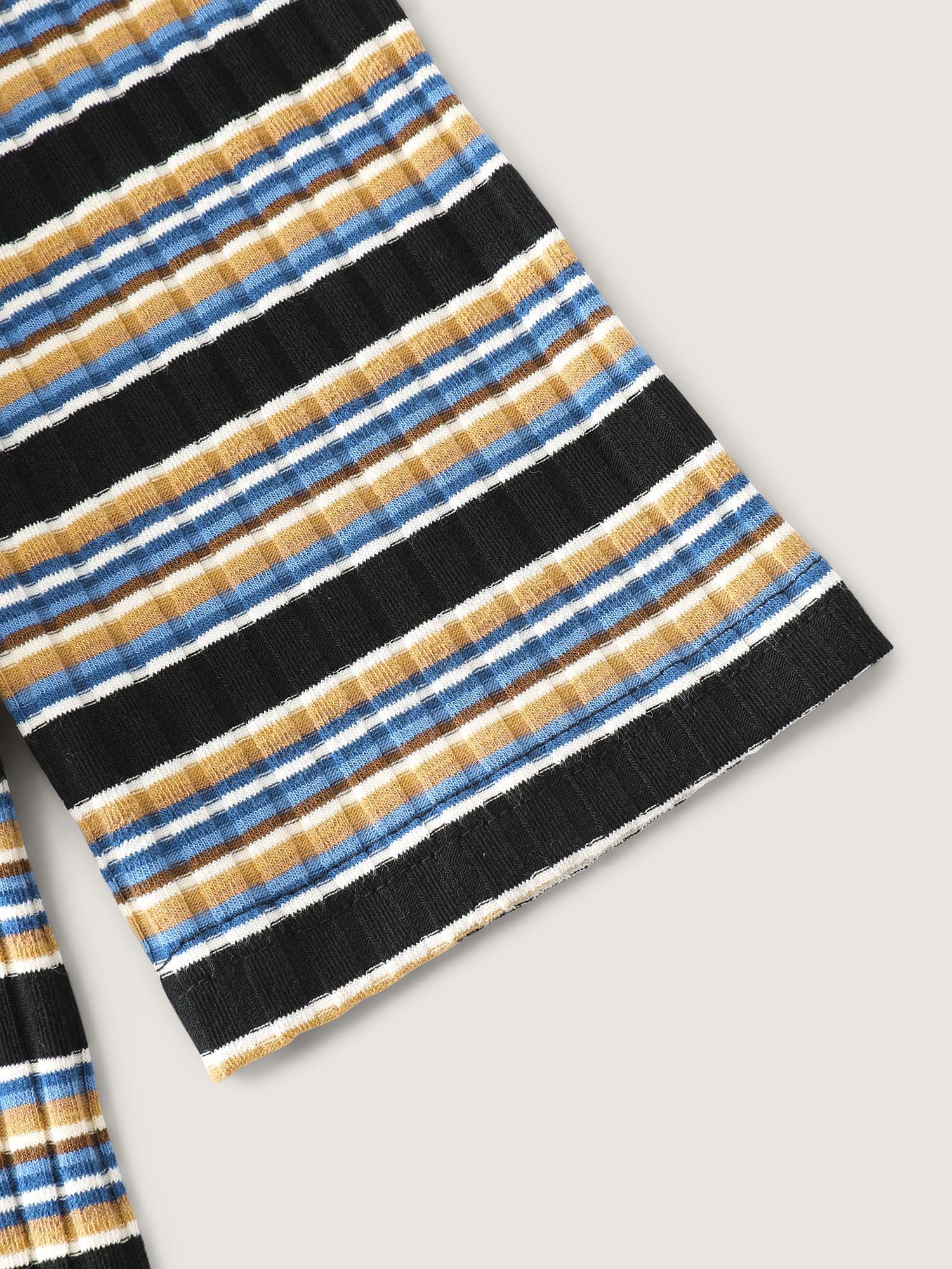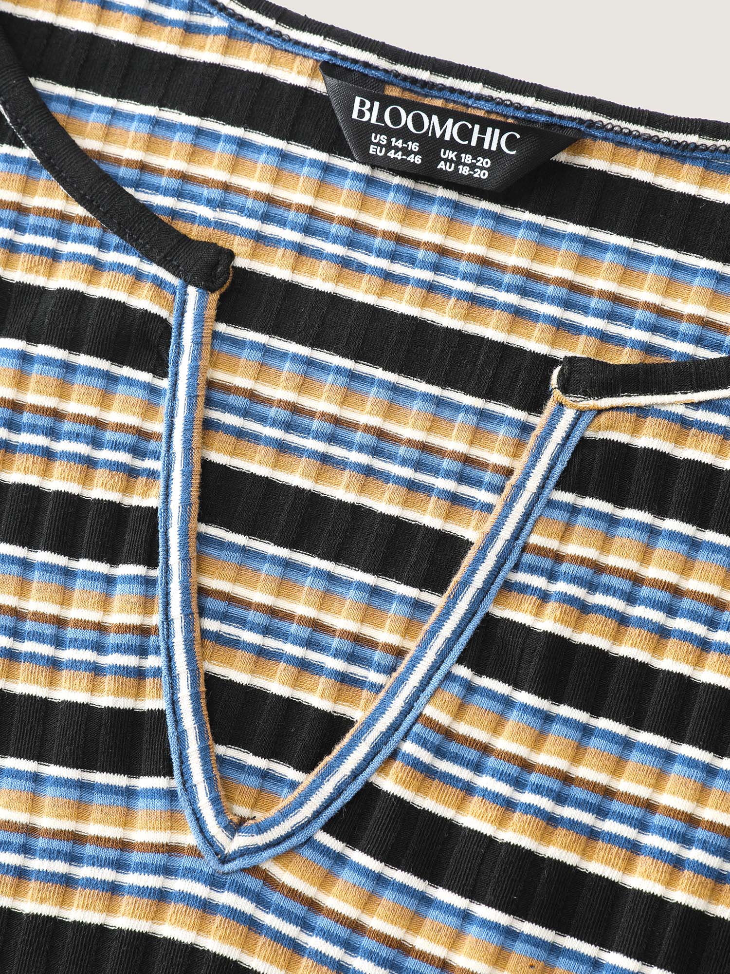 Shop Monochrome Stripe Embroidery T-Shirt now and redefine your style with confidence at BloomChic. Tailored for mid and plus-size women. This trendy Tops Women, sizes 10-30. Color:Multicolor;Style:Leisure;Prints:Stripes;Neckline:Flat collar with V-notch;Sleeve Type:Regular Sleeve;Details:Contrast, Texture;Pocket:No-pocket