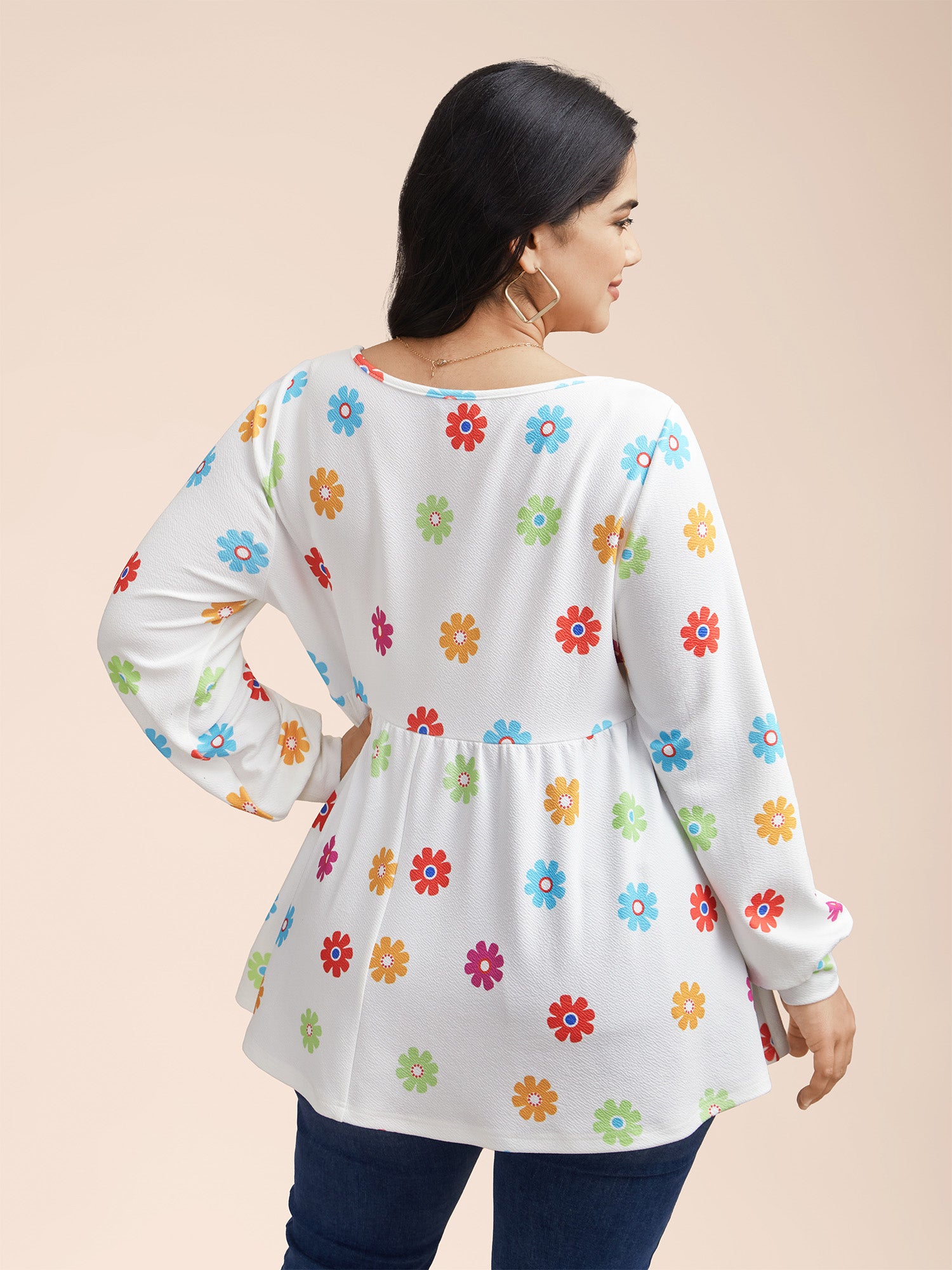 Shop Multi-Color Floral Textured Stretchy Knit Top now and redefine your style with confidence at BloomChic. Tailored for mid and plus-size women. This trendy Tops Women, sizes 10-30. Color:Black, Original White, Light Blue, Black Flower;Style:Playful;Prints:Floral;Neckline:Round Neck;Sleeve Type:Lantern Sleeve;Details:Gathered, Texture;Pocket:No-pocket