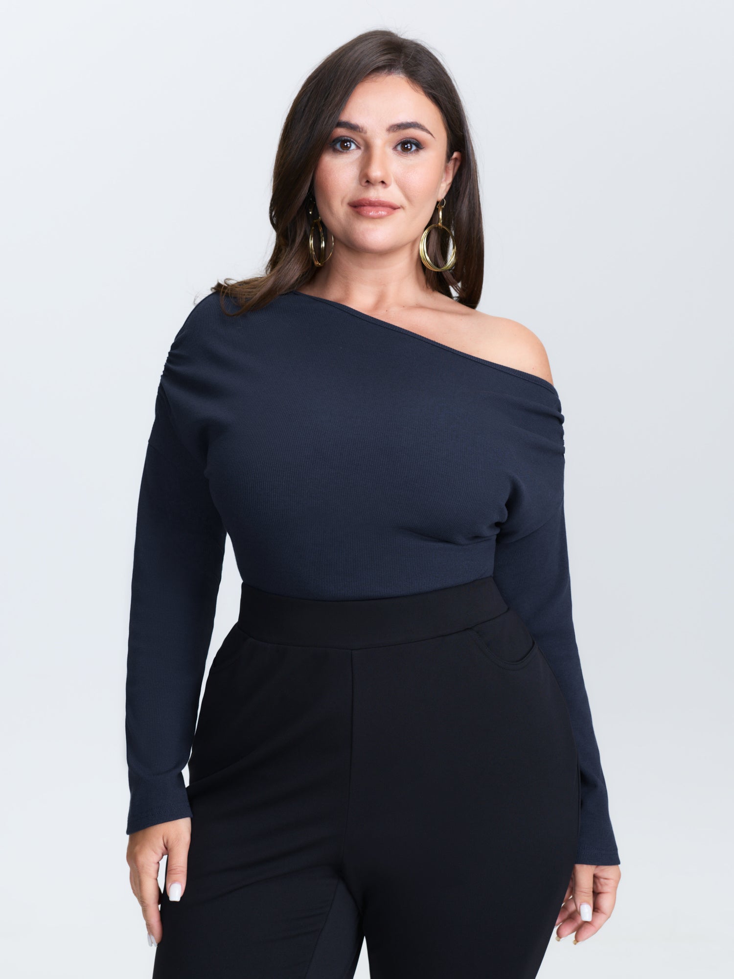 Shop One-Shoulder Pleated T-Shirt now and redefine your style with confidence at BloomChic. Tailored for mid and plus-size women. This trendy Tops Women, sizes 10-30. Color:Indigo;Style:Timeless;Prints:Non;Neckline:Asymmetrical Neck;Sleeve Type:Regular Sleeve;Details:Gathered;Pocket:No-pocket