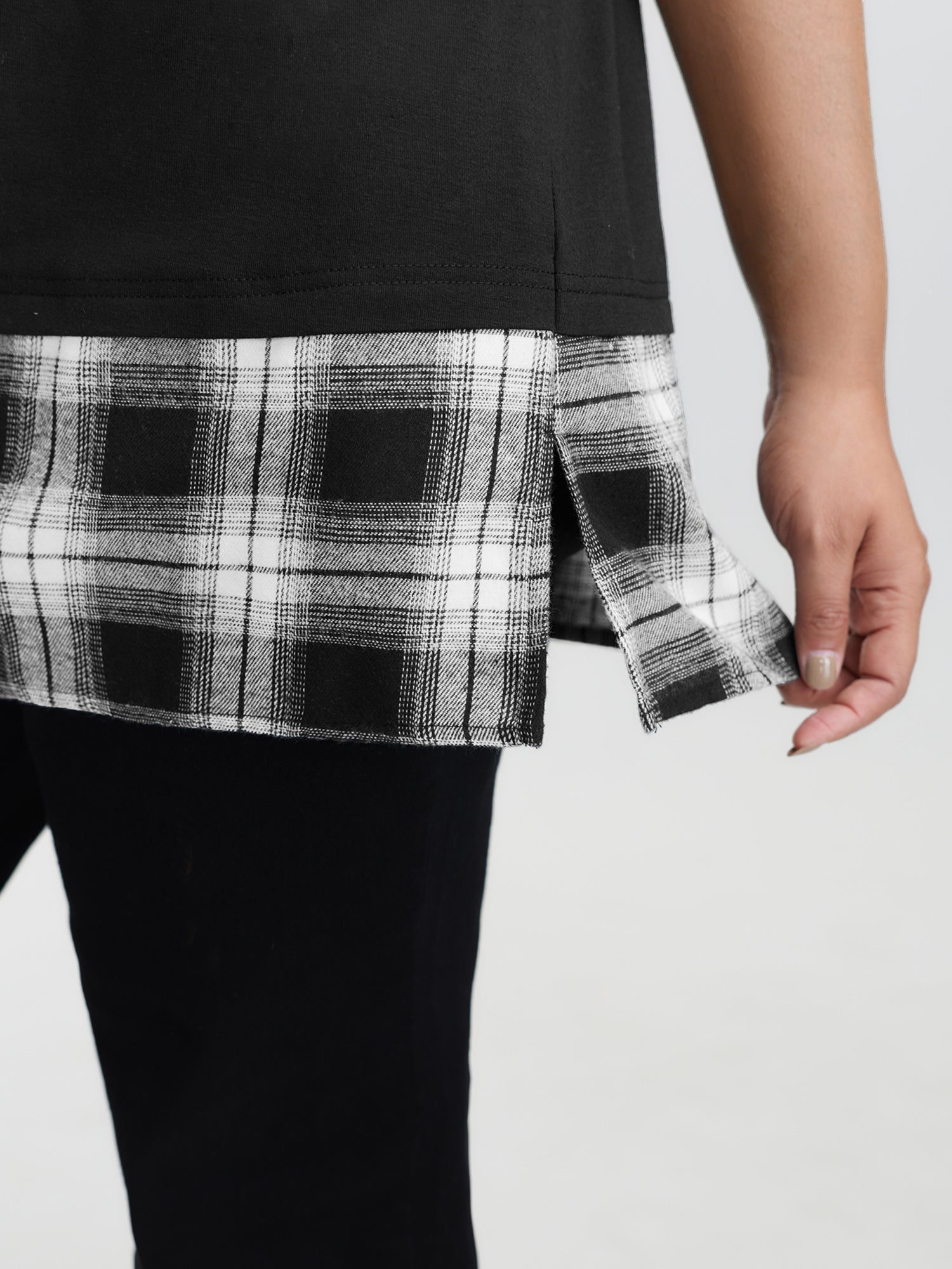 Shop Plaid Pattern Split Back Knit Top now and redefine your style with confidence at BloomChic. Tailored for mid and plus-size women. This trendy Tops Women, sizes 10-30. Color:Black;Style:Leisure;Prints:Non;Neckline:Boat Neck;Sleeve Type:Regular Sleeve;Details:Contrast, Overlapping;Pocket:No-pocket