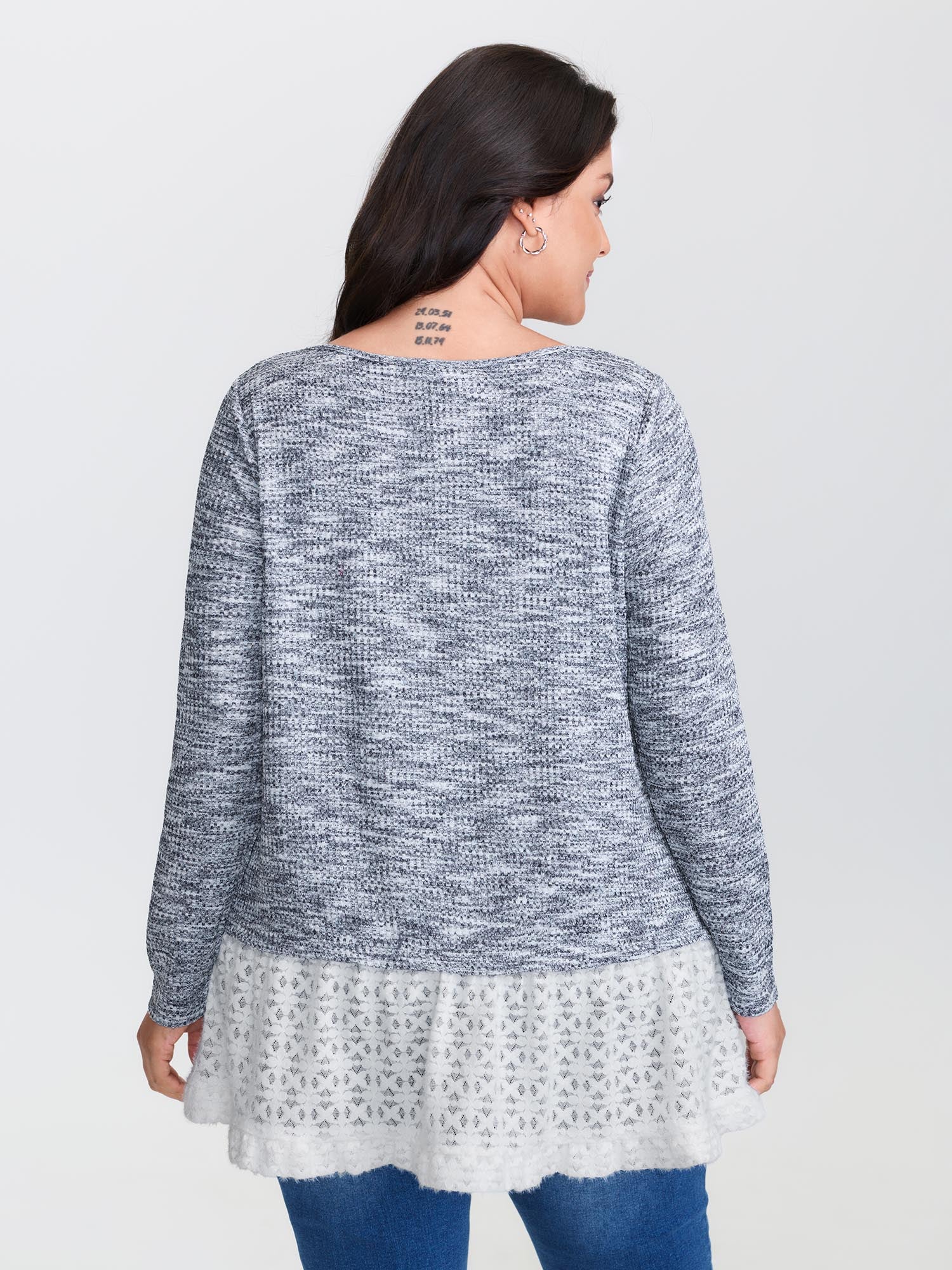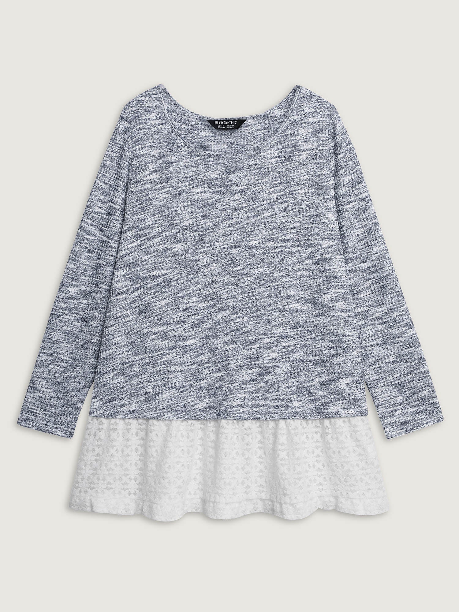 Shop Plain Layered Lace Hem Knit Top now and redefine your style with confidence at BloomChic. Tailored for mid and plus-size women. This trendy Tops Women, sizes 10-30. Color:Multicolor;Style:Leisure;Prints:Synthetic texture;Neckline:Round Neck;Sleeve Type:Regular Sleeve;Details:Contrast, Texture;Pocket:No-pocket