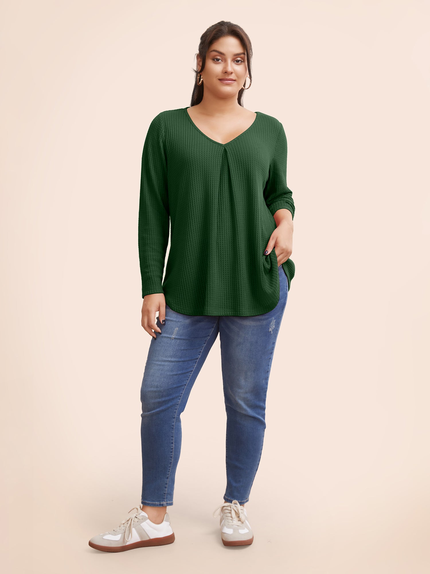 Shop Plain Waffle Knit Scoop Neck Plicated Detail T-shirt at BloomChic. Plus Size Clothing & Plus Size T-shirts. BloomChic is a digital-first fashion and lifestyle destination for modern women sizes 10-30.