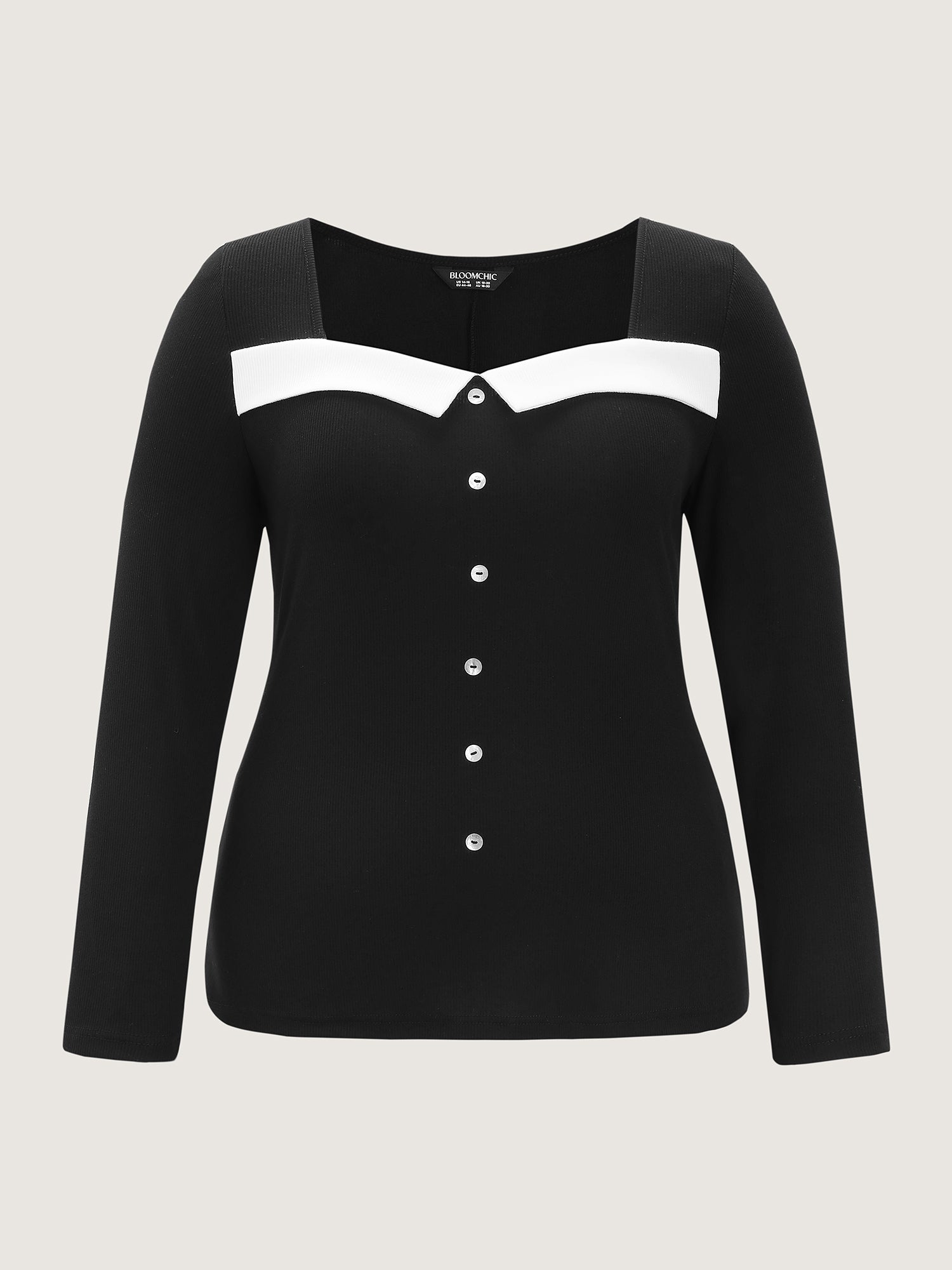 Shop Ribbed Button Front Color Contrast Knit Top now and redefine your style with confidence at BloomChic. Tailored for mid and plus-size women. This trendy Tops Women, sizes 10-30. Color:Black;Style:Timeless;Prints:Non;Neckline:Square Neck;Sleeve Type:Regular Sleeve;Pocket:No-pocket