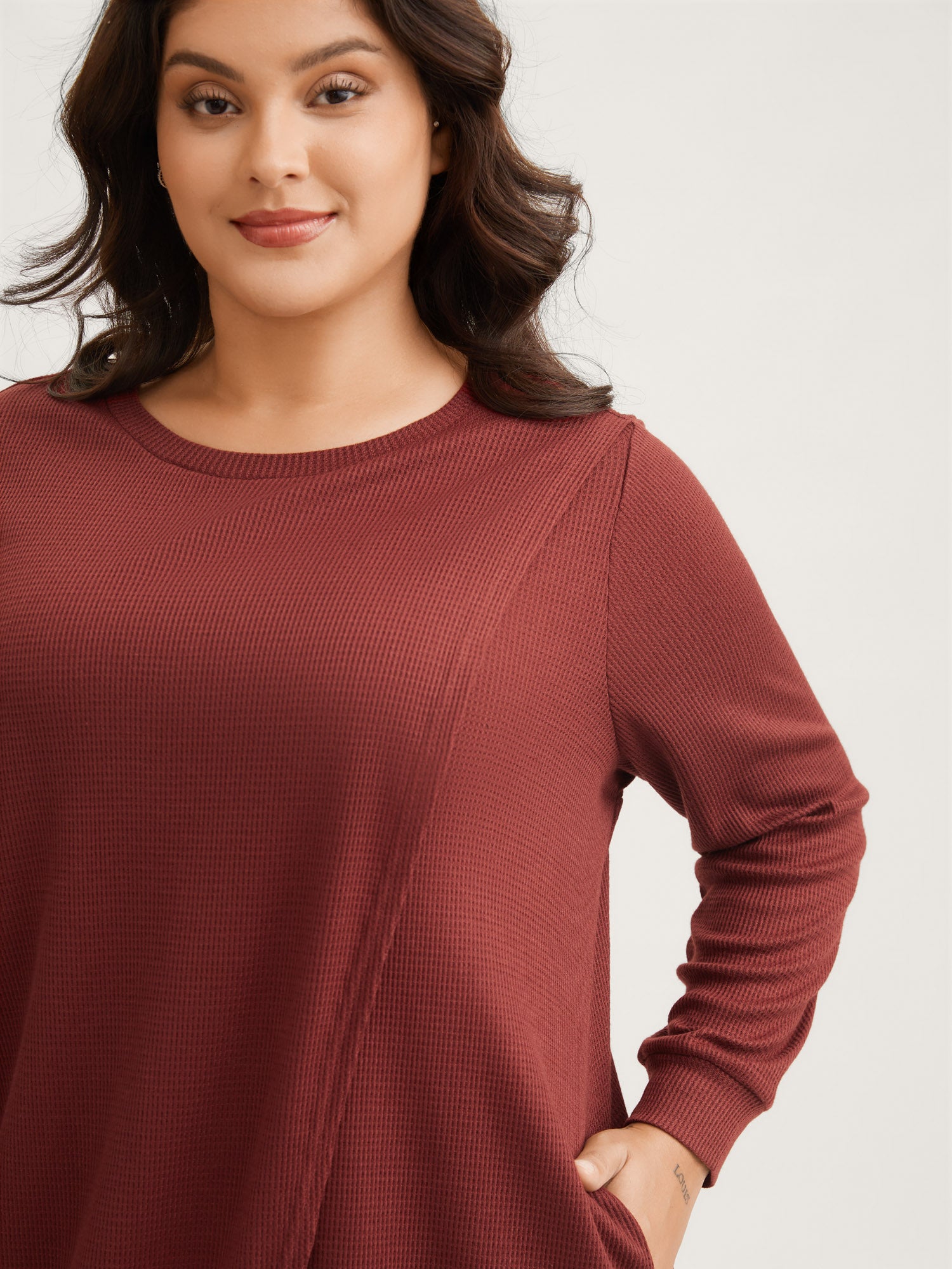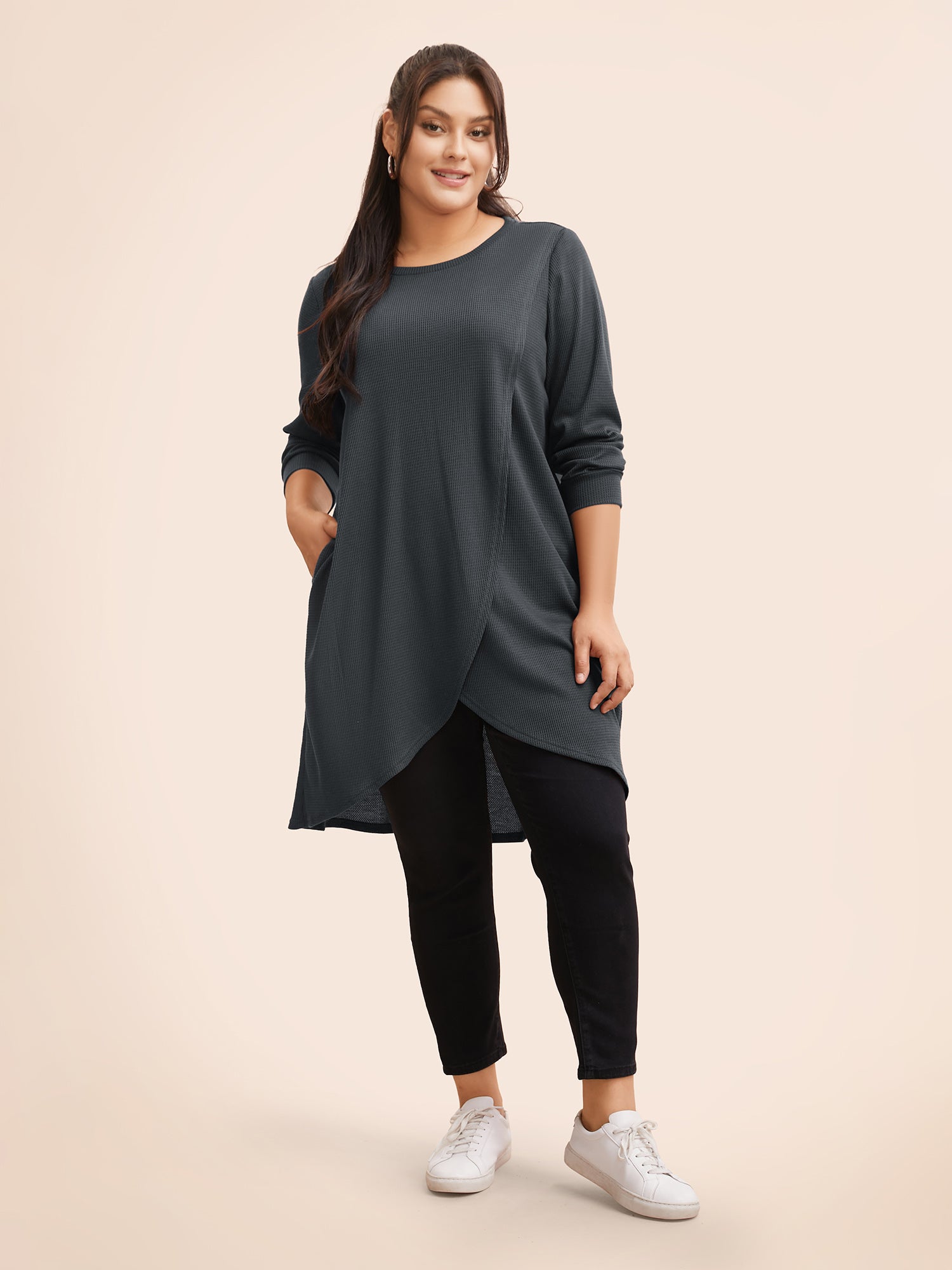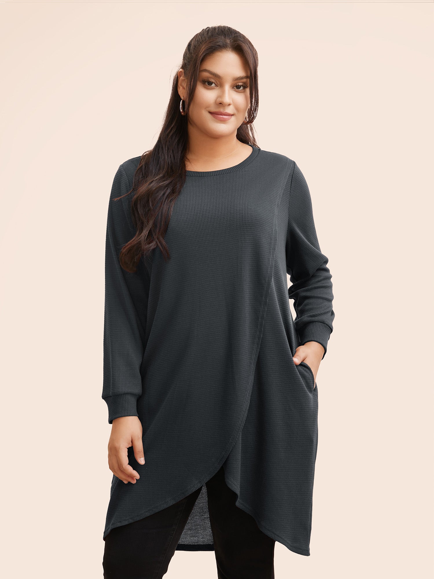 Shop Solid Waffle Knit Overlap Hem T-shirt at BloomChic. Plus Size Clothing & Plus Size T-shirts. BloomChic is a digital-first fashion and lifestyle destination for modern women sizes 10-30.