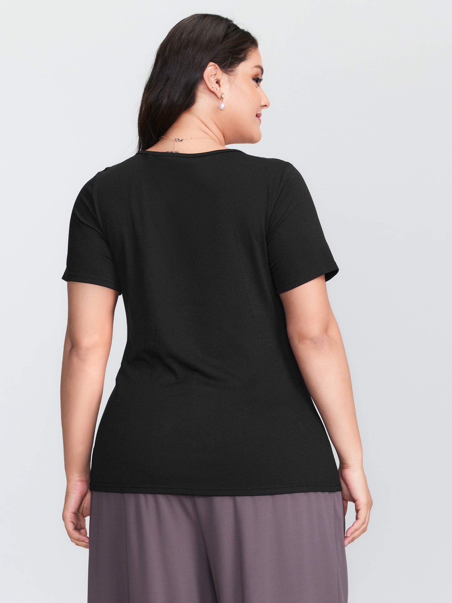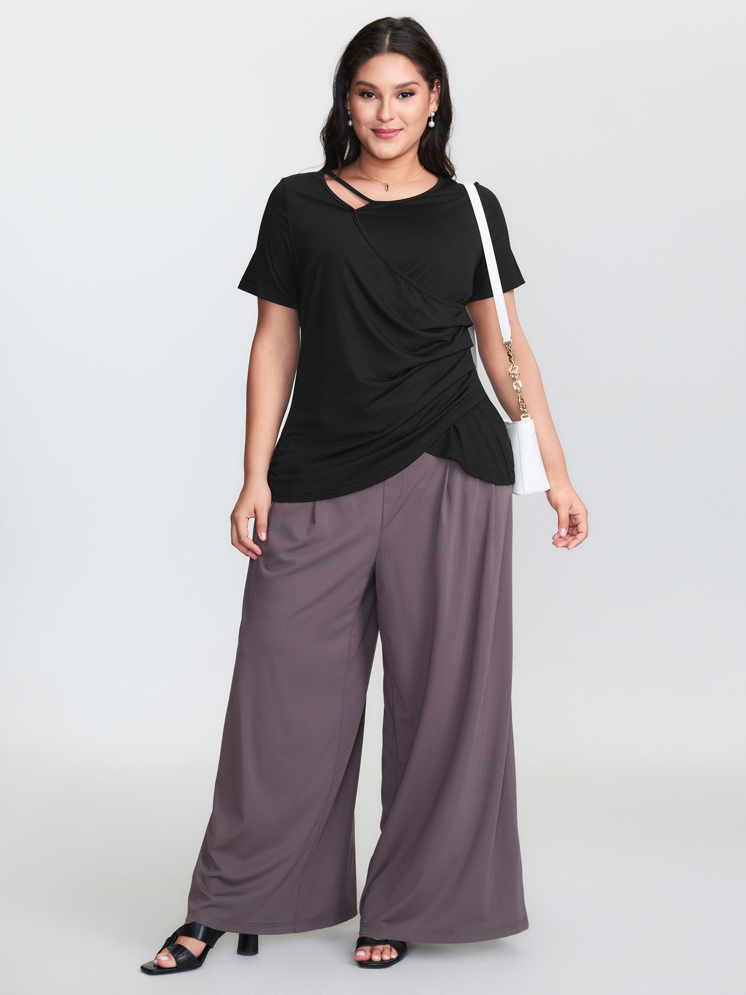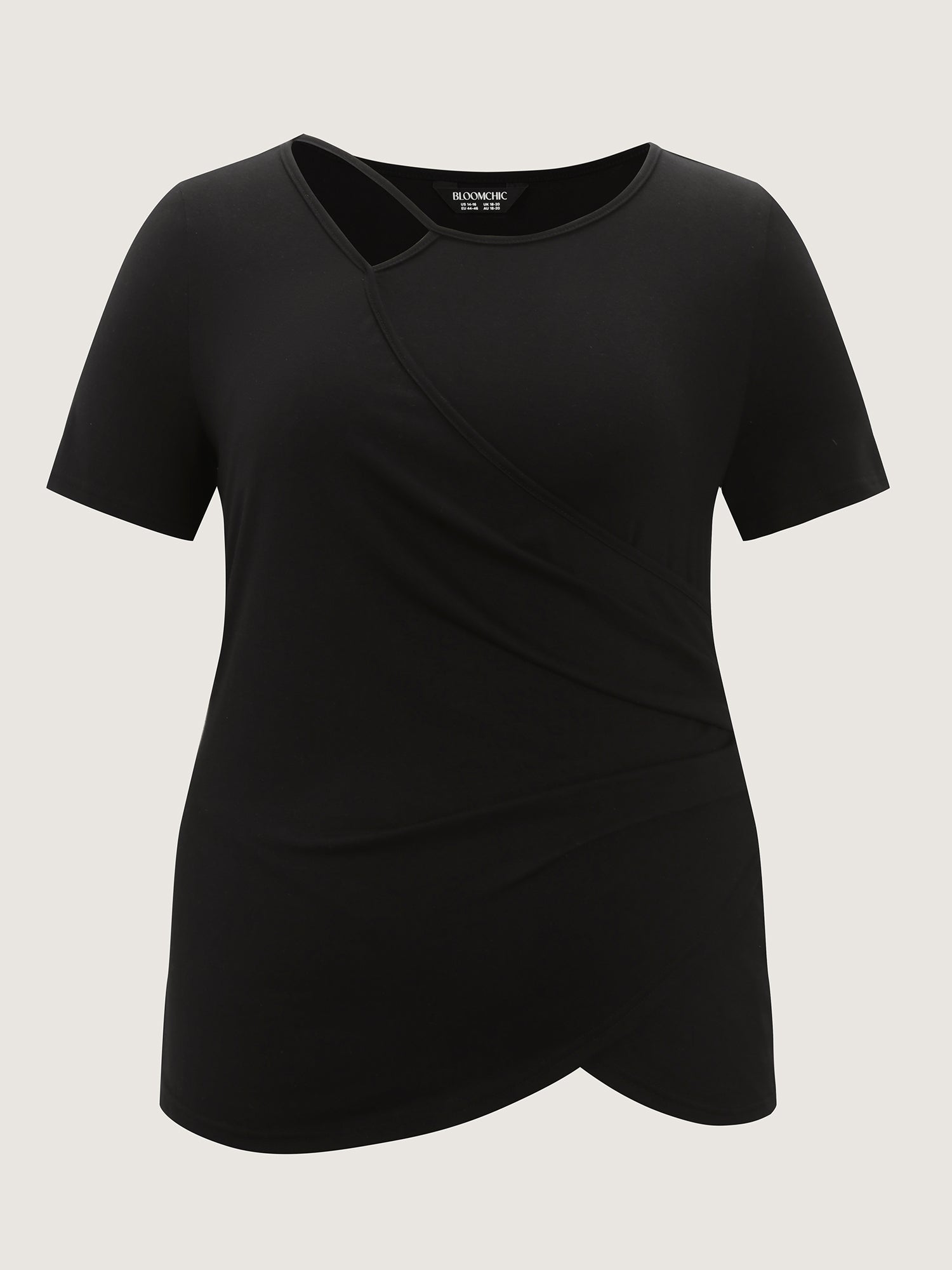 Shop Stretchy Asymmetrical Neckline Slit Knit Top now and redefine your style with confidence at BloomChic. Tailored for mid and plus-size women. This trendy Tops Women, sizes 10-30. Color:Black;Style:Timeless;Prints:Non;Neckline:Asymmetrical Neck;Sleeve Type:Regular Sleeve;Details:Overlapping, Cut-Out;Pocket:No-pocket
