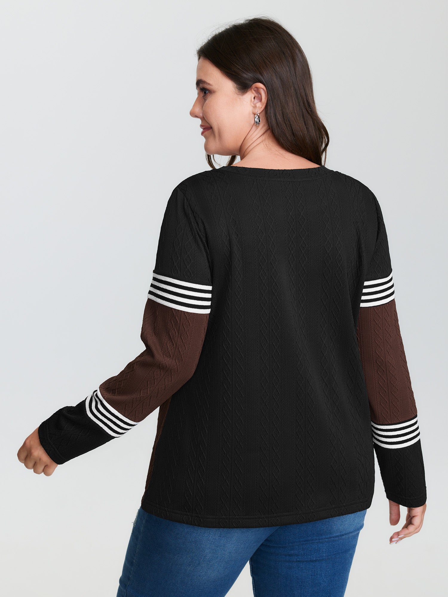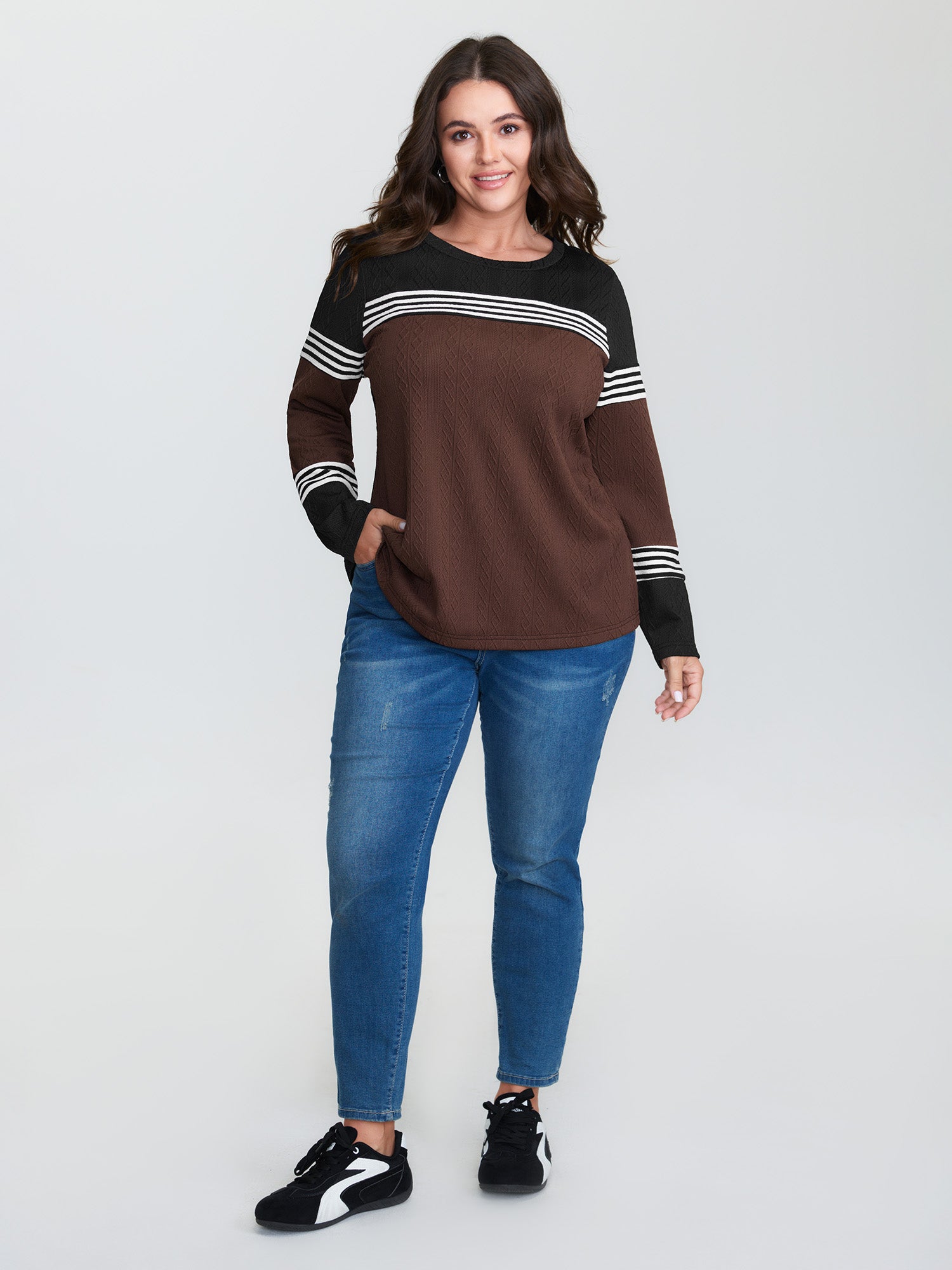 Shop Stretchy Colorblock Textured Striped T-Shirt now and redefine your style with confidence at BloomChic. Tailored for mid and plus-size women. This trendy Tops Women, sizes 10-30. Color:Multicolor;Style:Leisure;Prints:Synthetic texture;Neckline:Round Neck;Sleeve Type:Regular Sleeve;Details:Contrast, Texture;Pocket:No-pocket