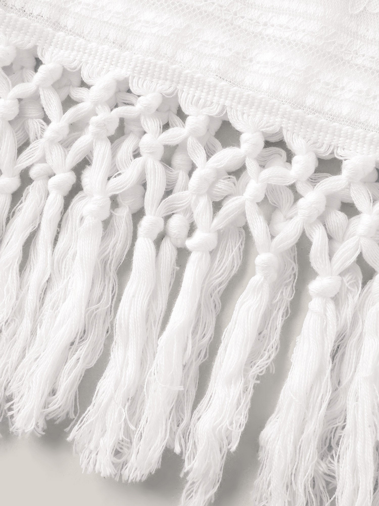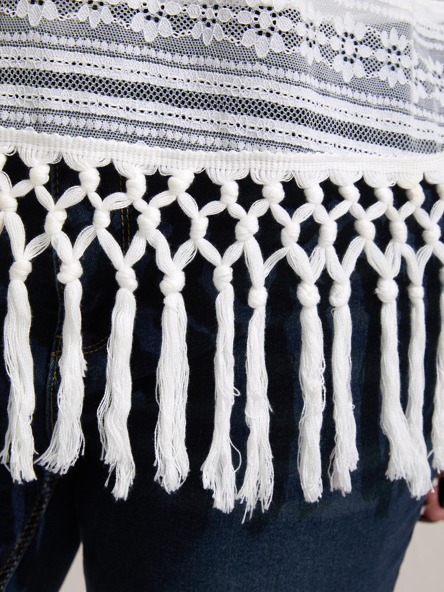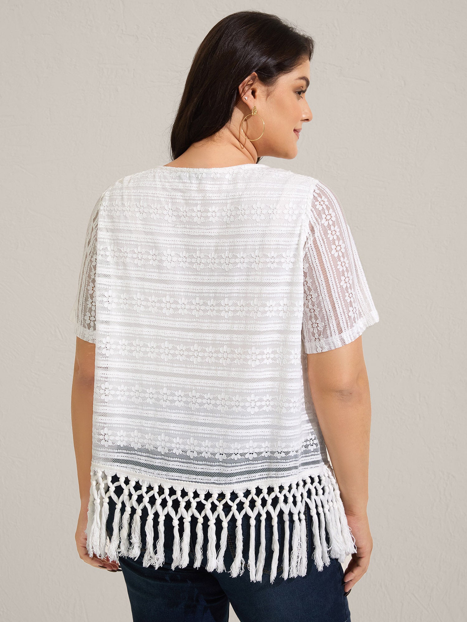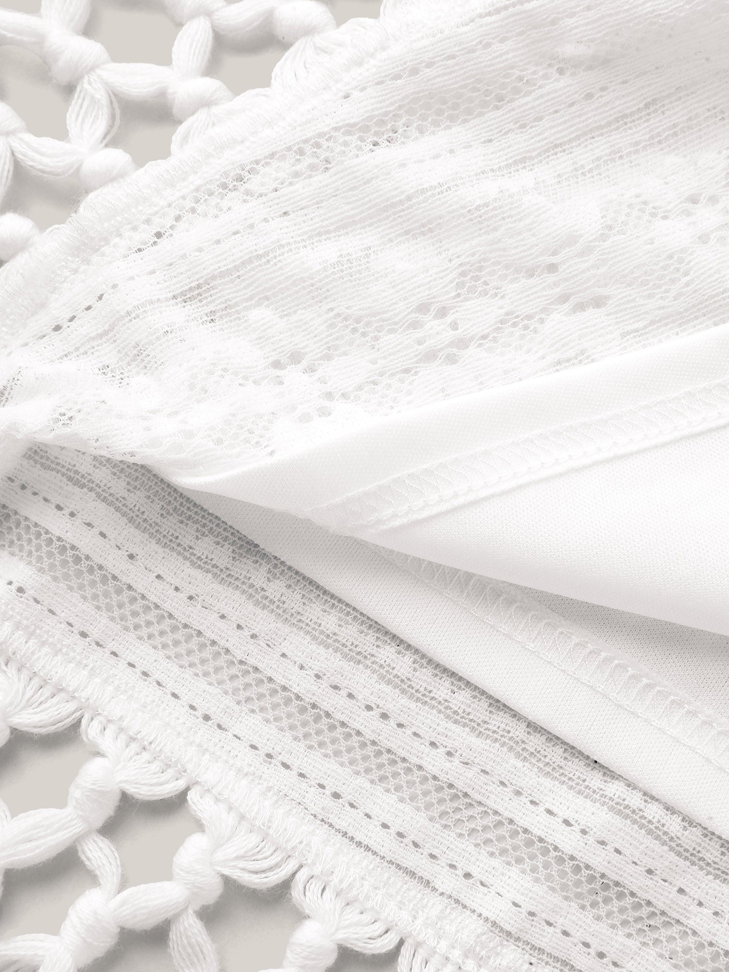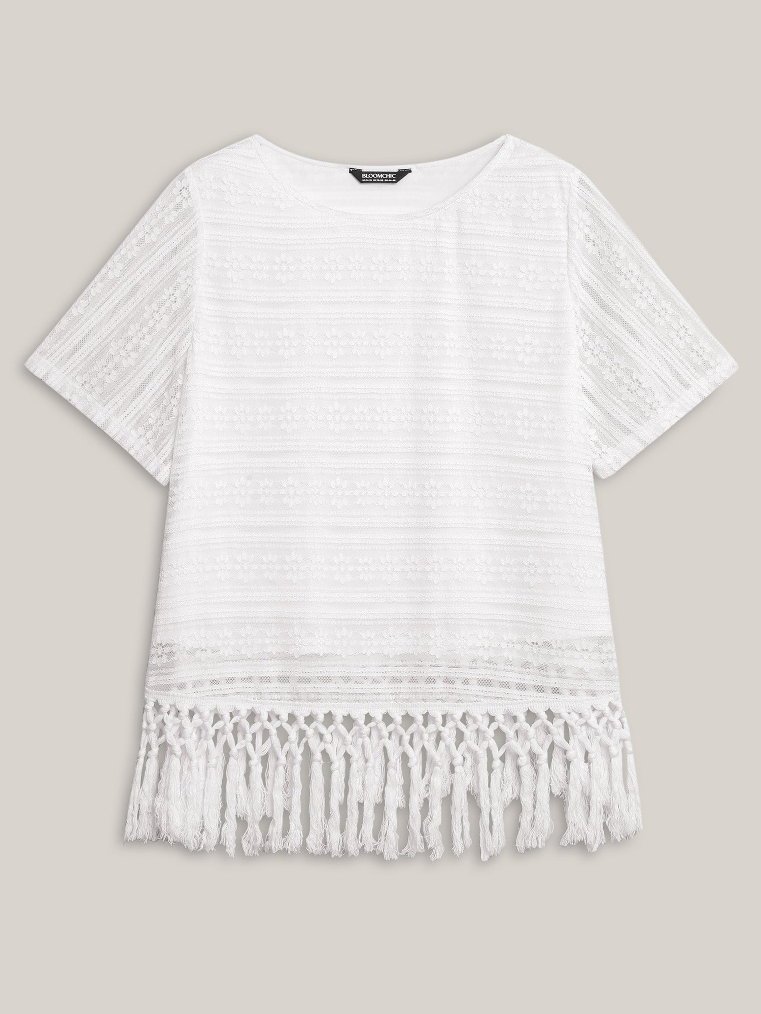 Shop Stretchy Lace Tassel Hem Solid Top now and redefine your style with confidence at BloomChic. Tailored for mid and plus-size women. This trendy Tops Women, sizes 10-30. Color:WhiteSmoke;Prints:Non;Neckline:Round Neck;Sleeve Type:Regular Sleeve;Details:Tassels, Texture;Pocket:No-pocket