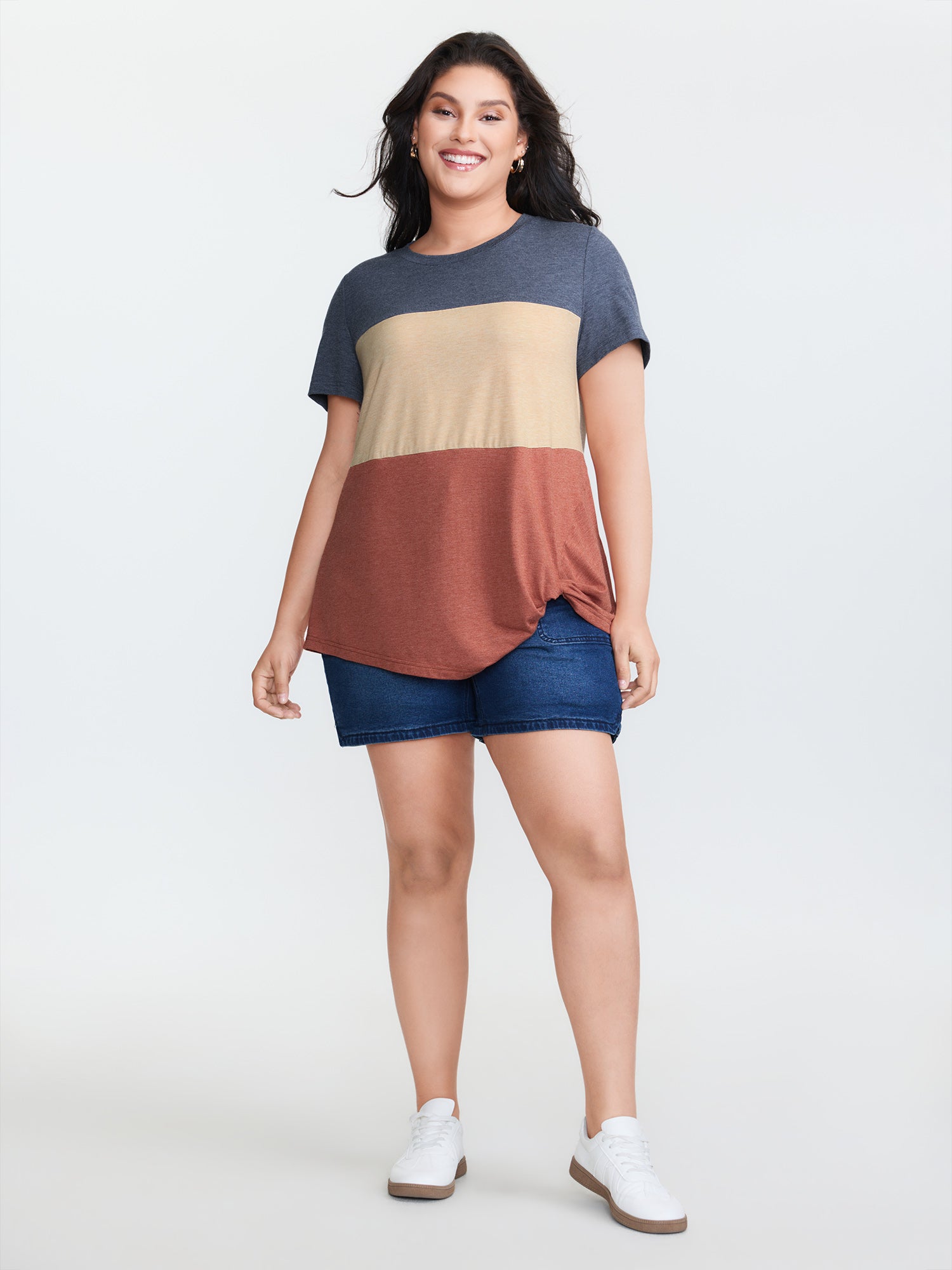 Shop Supersoft Colorblock Twist Hem T-Shirt now and redefine your style with confidence at BloomChic. Tailored for mid and plus-size women. This trendy Tops Women, sizes 10-30. Color:Multicolor;Style_2:Leisure;Prints:Non;Neckline:Round Neck;Sleeve Type:Regular Sleeve;Details:Contrast;Pocket:No-pocket
