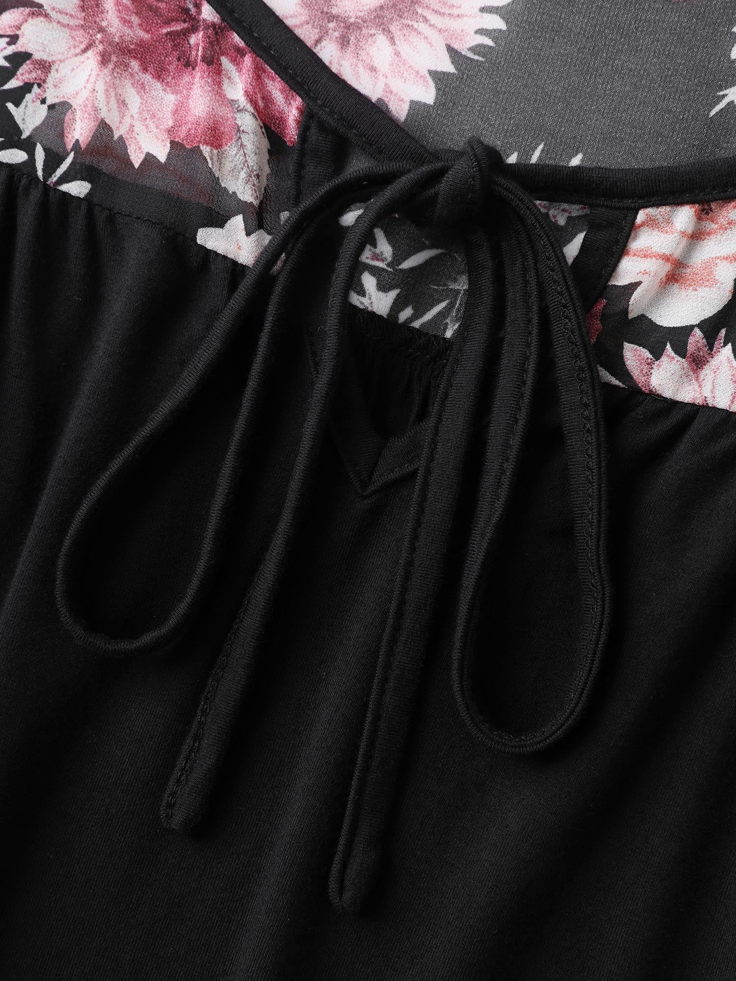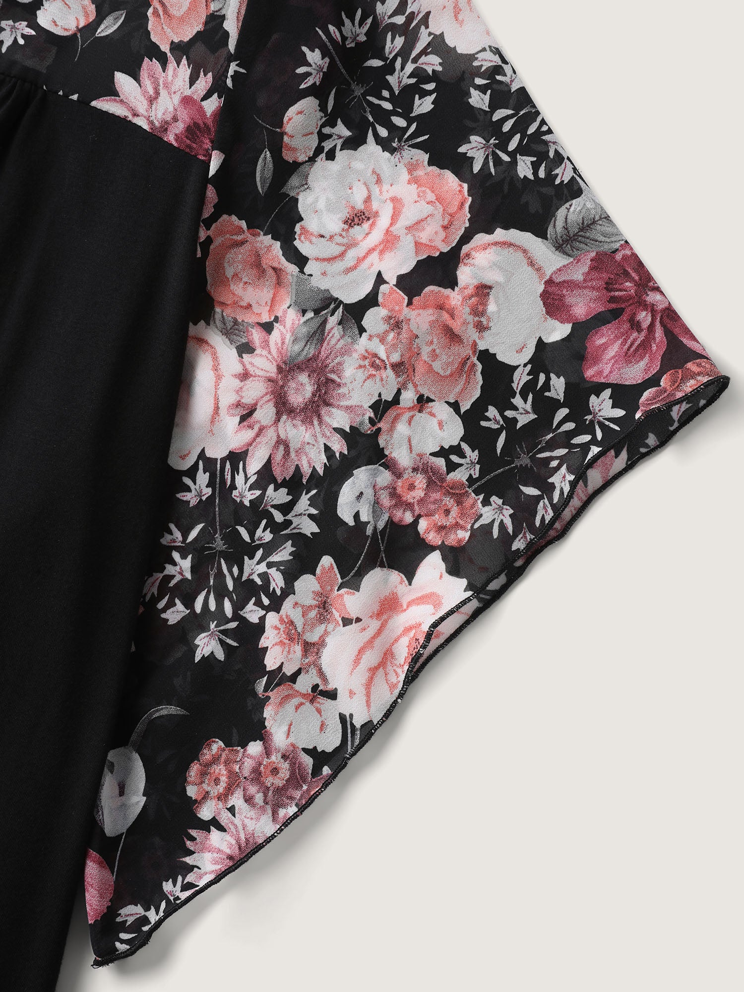 Supersoft Floral Ruffled Sleeve Neck Tie Knit Top