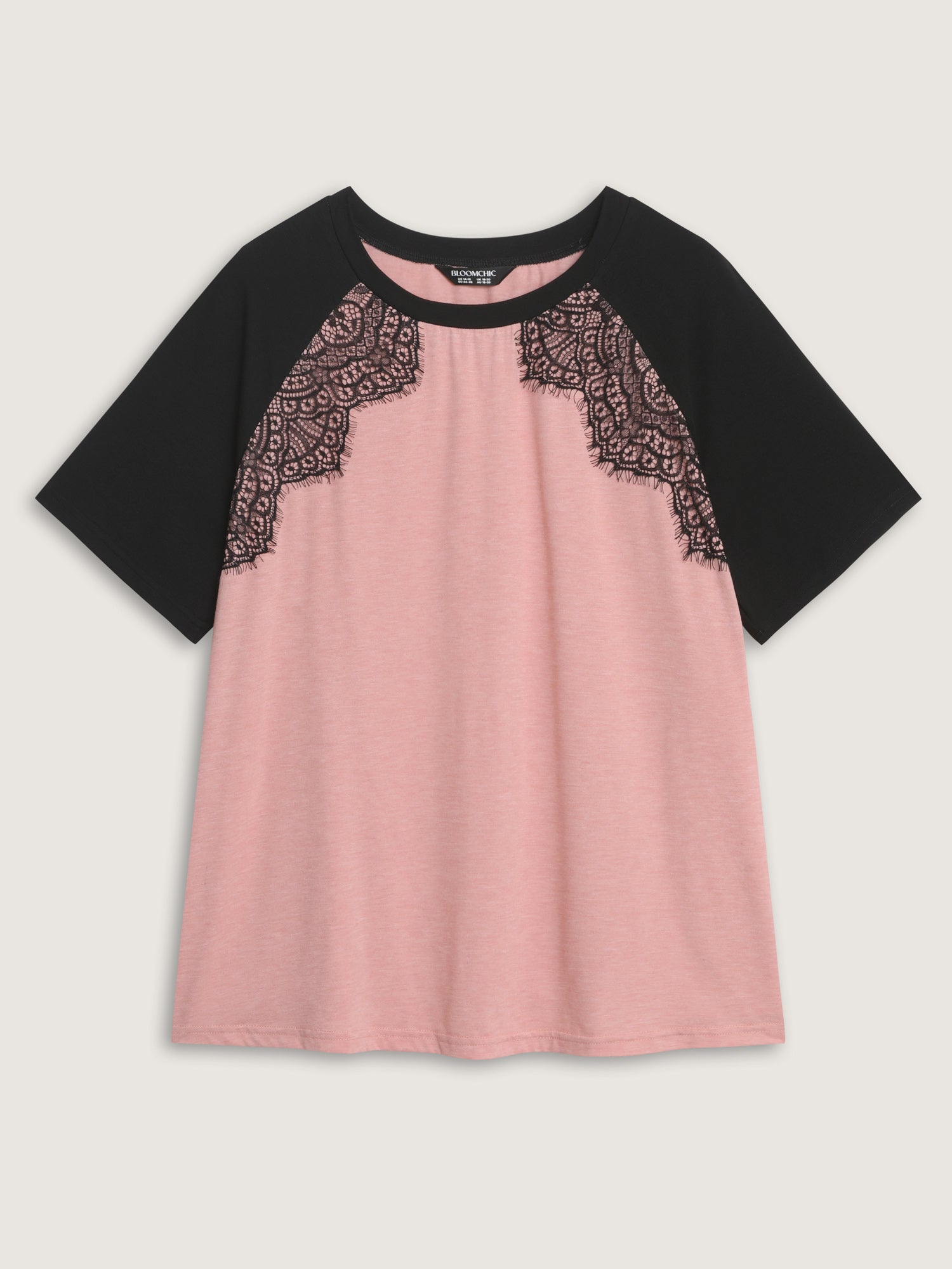 Shop Supersoft Lace Trim Raglan Sleeve Color Contrast T-Shirt now and redefine your style with confidence at BloomChic. Tailored for mid and plus-size women. This trendy Tops Women, sizes 10-30. Color:Crepe;Style_2:Leisure;Prints:Non;Neckline:Round Neck;Sleeve Type:Regular Sleeve;Details:Contrast;Pocket:No-pocket