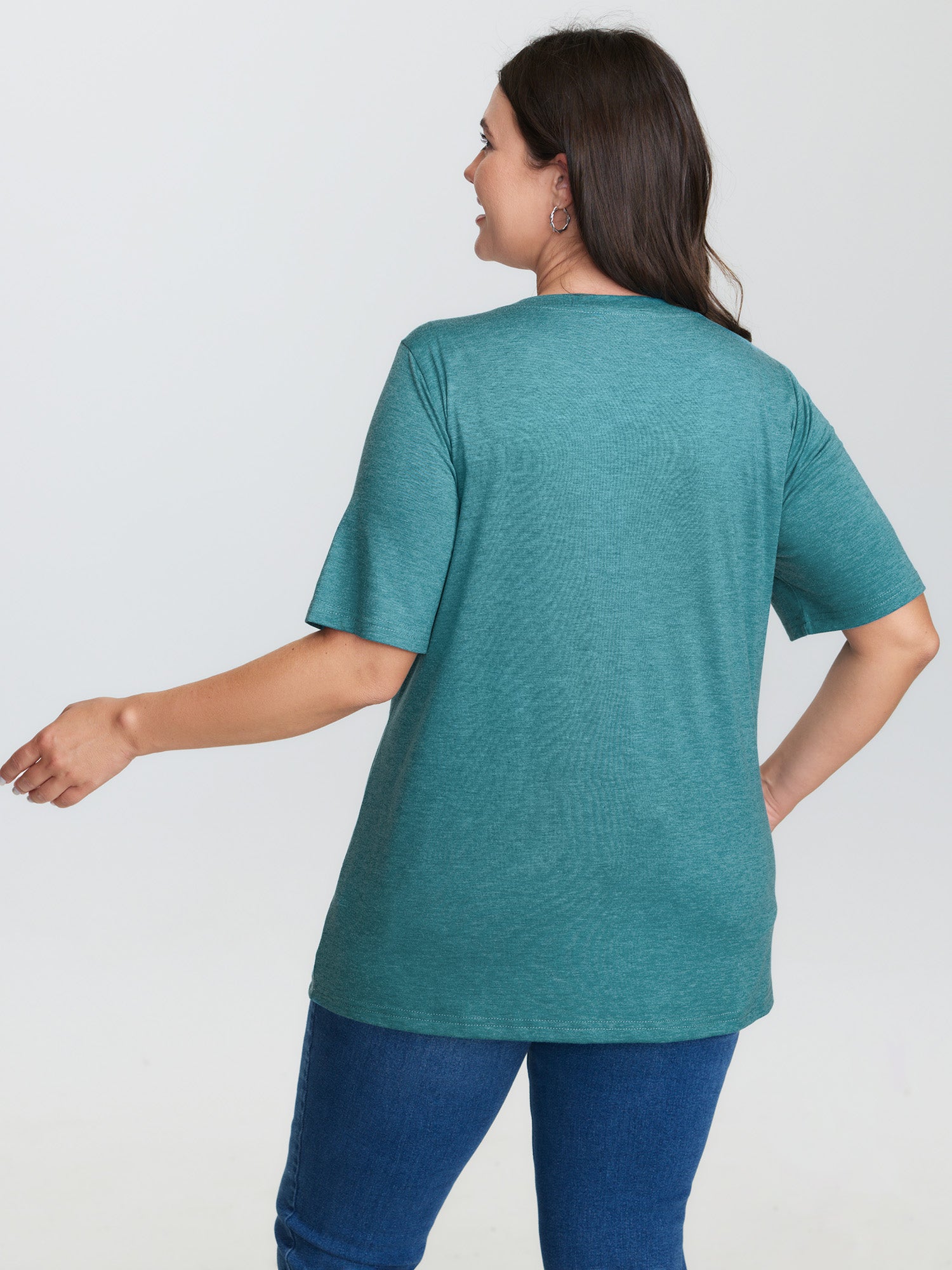 Shop Supersoft Ocean Pattern Embroidered T-Shirt now and redefine your style with confidence at BloomChic. Tailored for mid and plus-size women. This trendy Tops Women, sizes 10-30. Color:Cerulean;Style:Leisure;Pattern Type:Marine;Prints:Marine Elements;Neckline:V-neck;Sleeve Type:Regular Sleeve;Details:Cross straps, Texture, Embroidered;Pocket:No-pocket