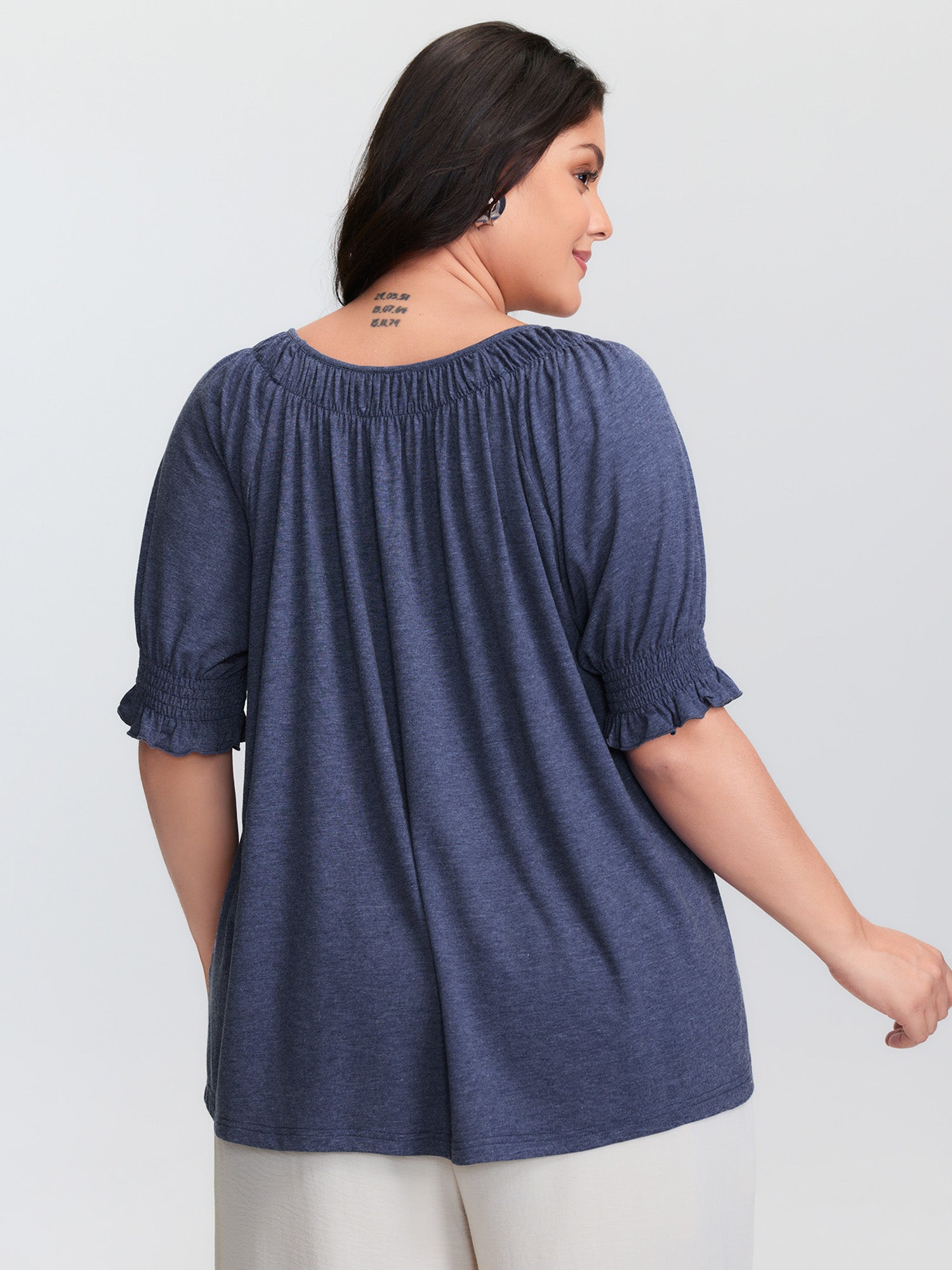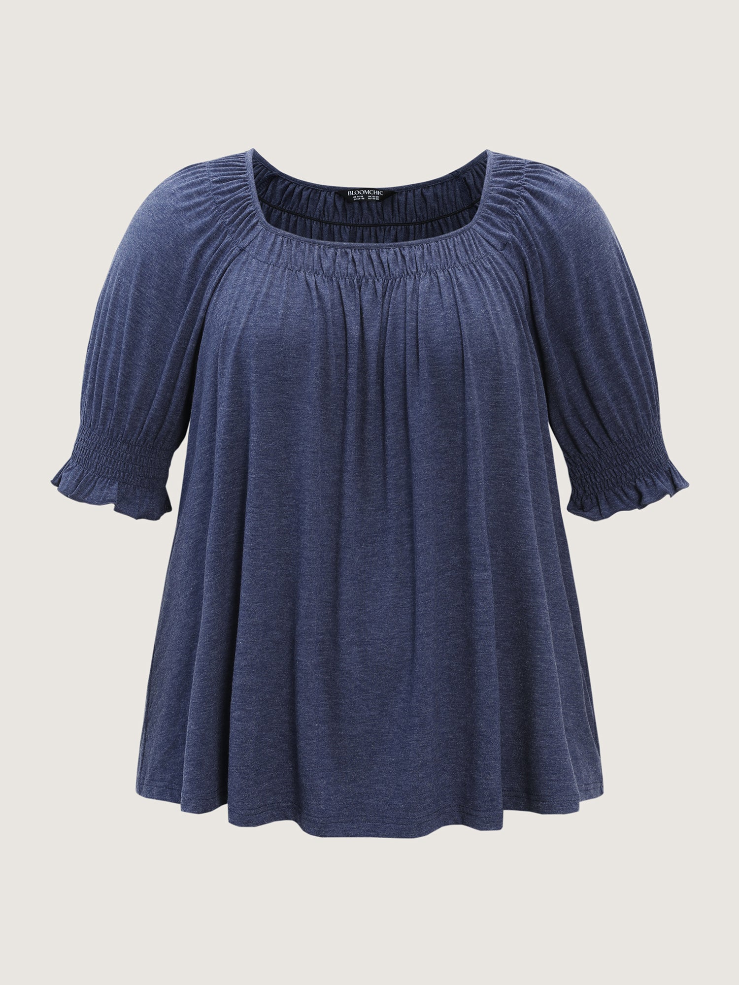 Shop Supersoft Pleated Bust-Friendly T-Shirt now and redefine your style with confidence at BloomChic. Tailored for mid and plus-size women. This trendy Tops Women, sizes 10-30. Color:Indigo;Style:Leisure;Prints:Non;Neckline:Square Neck;Sleeve Type:Lantern Sleeve;Details:Shirred, Gathered;Pocket:No-pocket