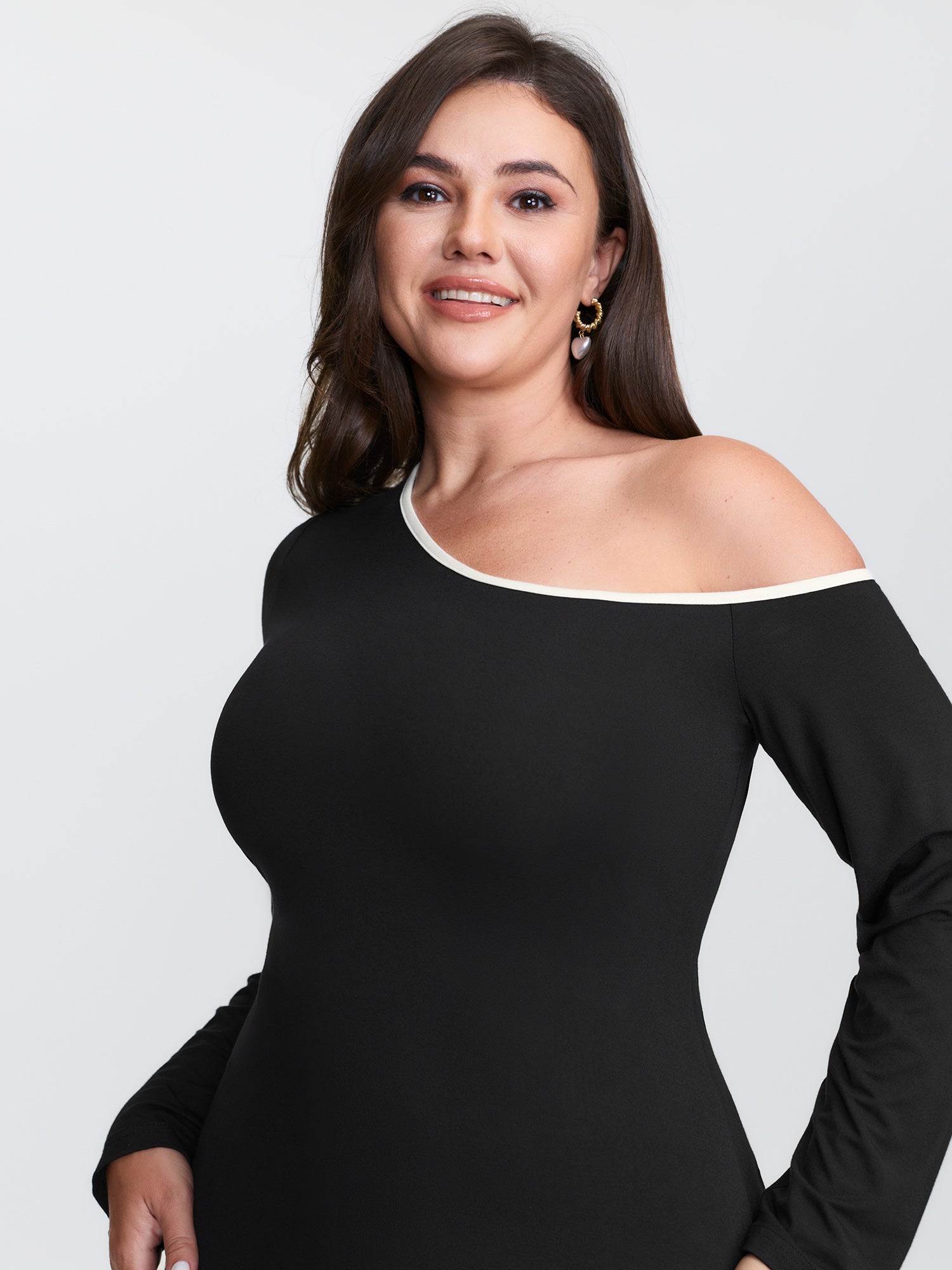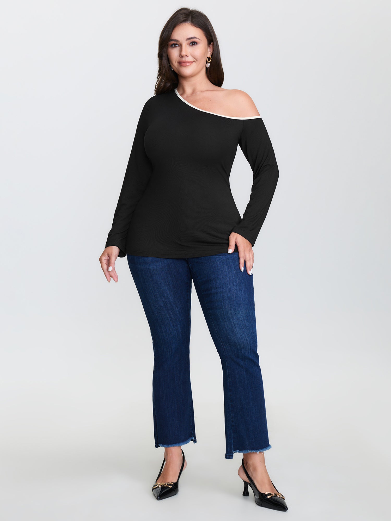 Shop Supersoft Stretchy One-Shoulder T-Shirt now and redefine your style with confidence at BloomChic. Tailored for mid and plus-size women. This trendy Tops Women, sizes 10-30. Color:Black;Style:Timeless;Prints:Non;Neckline:Asymmetrical Neck;Sleeve Type:Regular Sleeve;Details:Contrast;Pocket:No-pocket