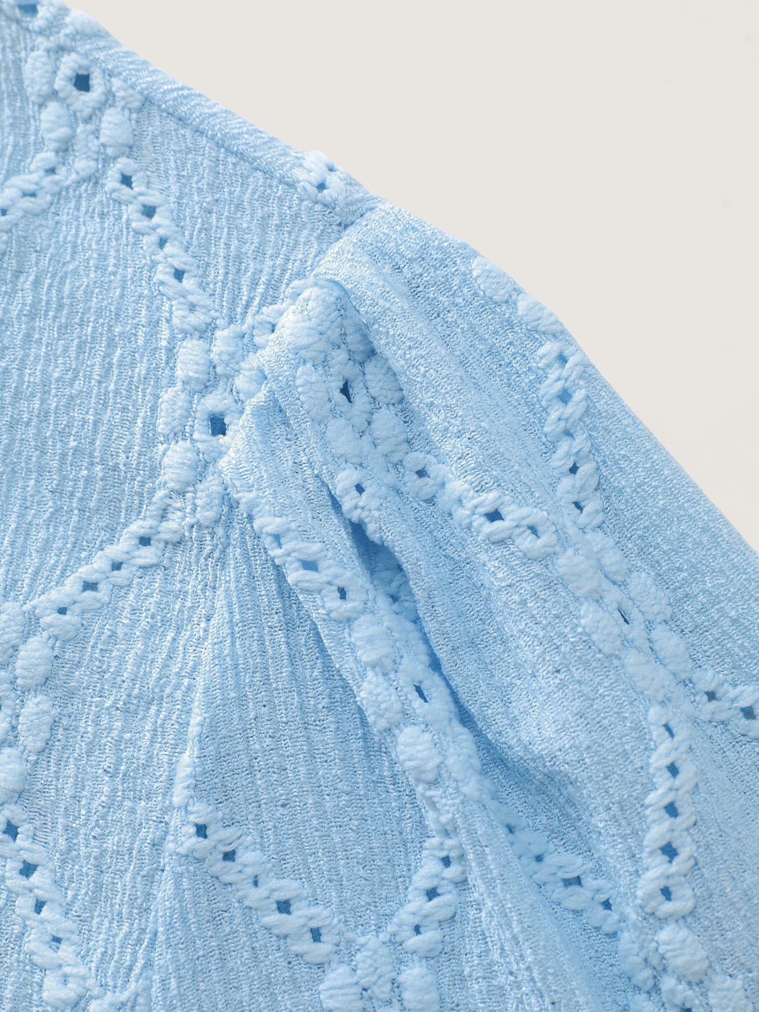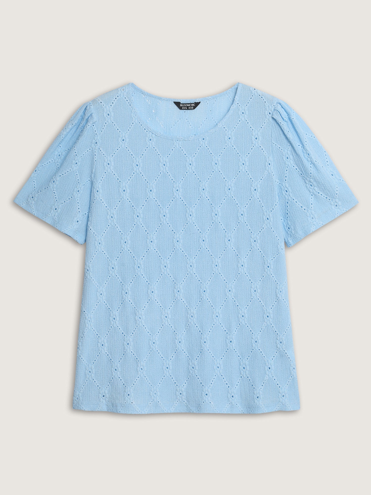Shop Textured Cut Out Plain T-Shirt now and redefine your style with confidence at BloomChic. Tailored for mid and plus-size women. This trendy Tops Women, sizes 10-30. Color:Light Blue;Style:Romantic;Prints:Synthetic texture;Neckline:Round Neck;Sleeve Type:Regular Sleeve;Details:Texture, Gathered;Pocket:No-pocket