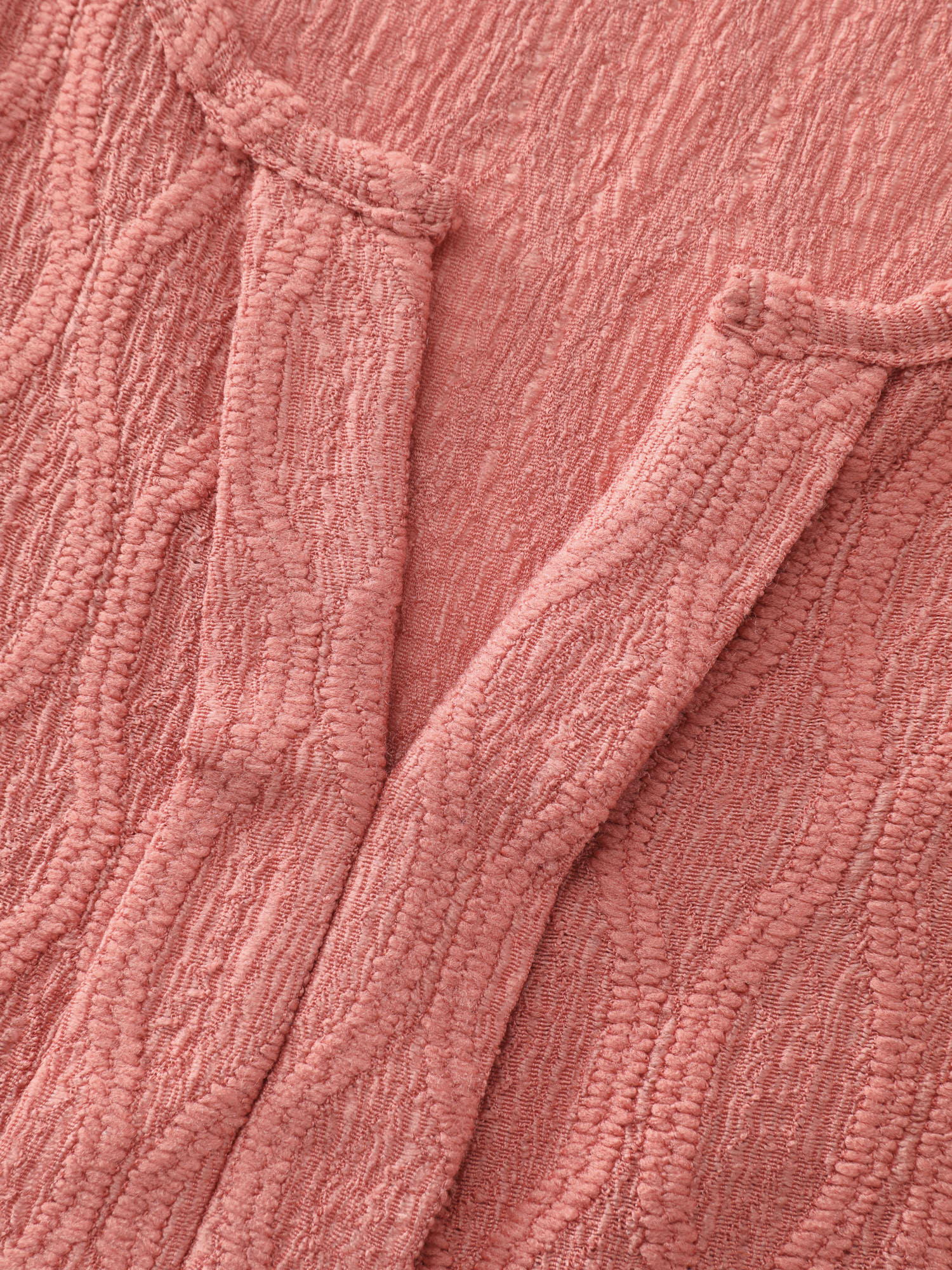 Shop Textured Knot Placket Shirred Cuff Sleeve Top now and redefine your style with confidence at BloomChic. Tailored for mid and plus-size women. This trendy Tops Women, sizes 10-30. Color:Coral;Style:Timeless;Prints:Synthetic texture;Neckline:Flat collar with V-notch;Sleeve Type:Lantern Sleeve;Details:Texture, Ruffles, Gathered;Pocket:No-pocket