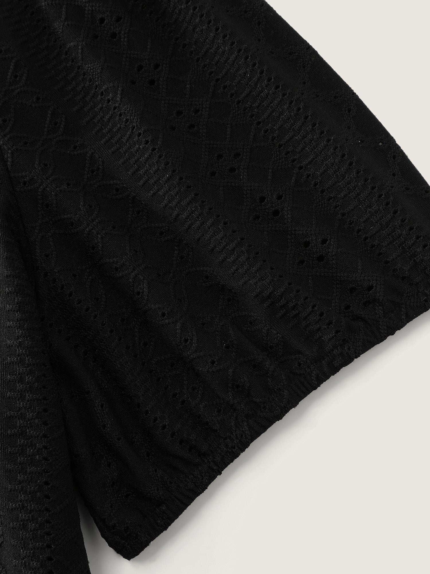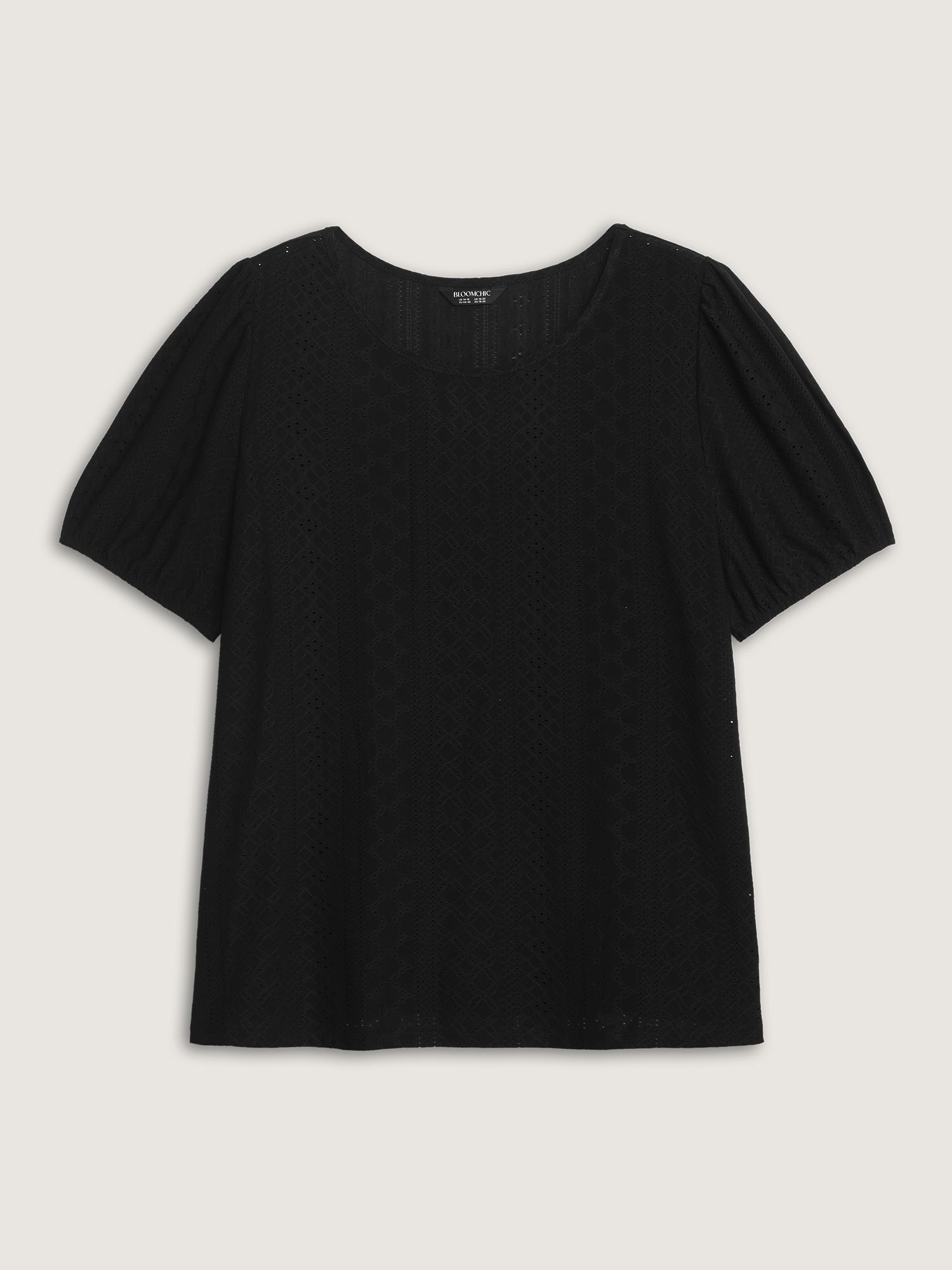 Shop Textured Puffy Sleeve Round Neck T-Shirt now and redefine your style with confidence at BloomChic. Tailored for mid and plus-size women. This trendy Tops Women, sizes 10-30. Color:Black;Style:Leisure;Prints:Synthetic texture;Neckline:Round Neck;Sleeve Type:Lantern Sleeve;Details:See through, Texture;Pocket:No-pocket