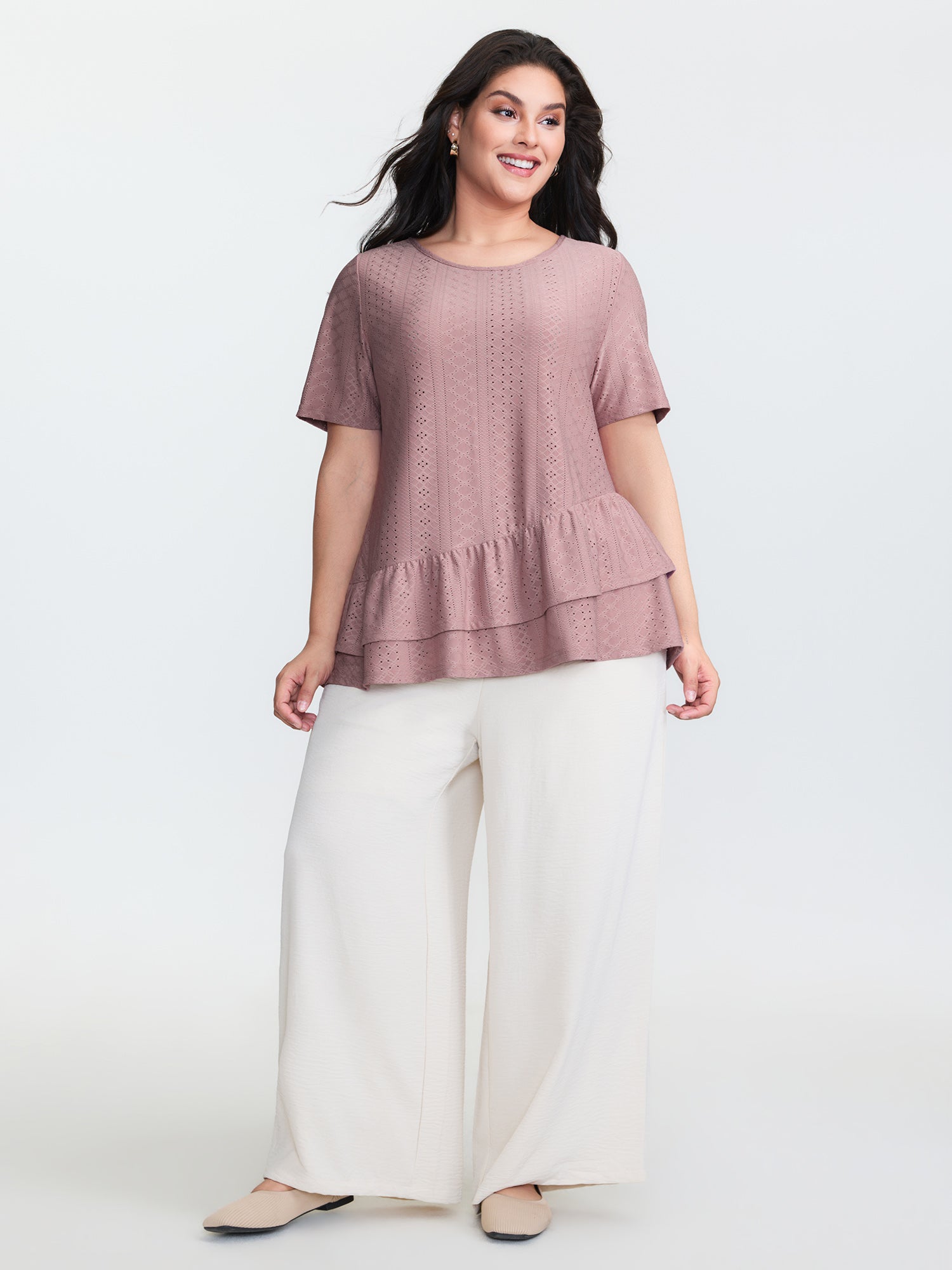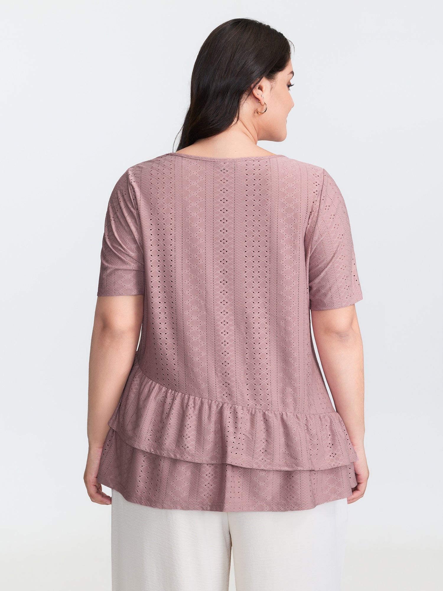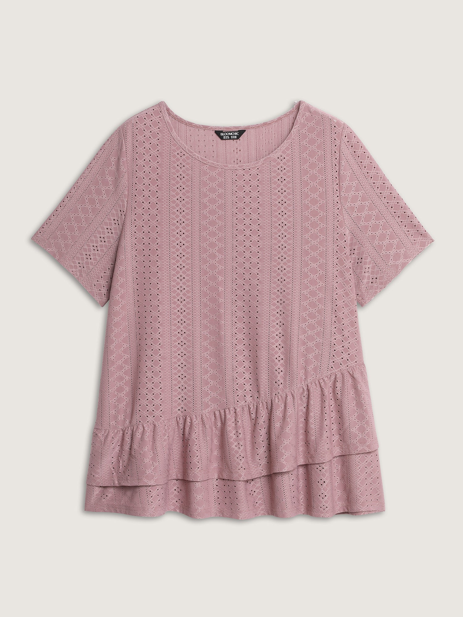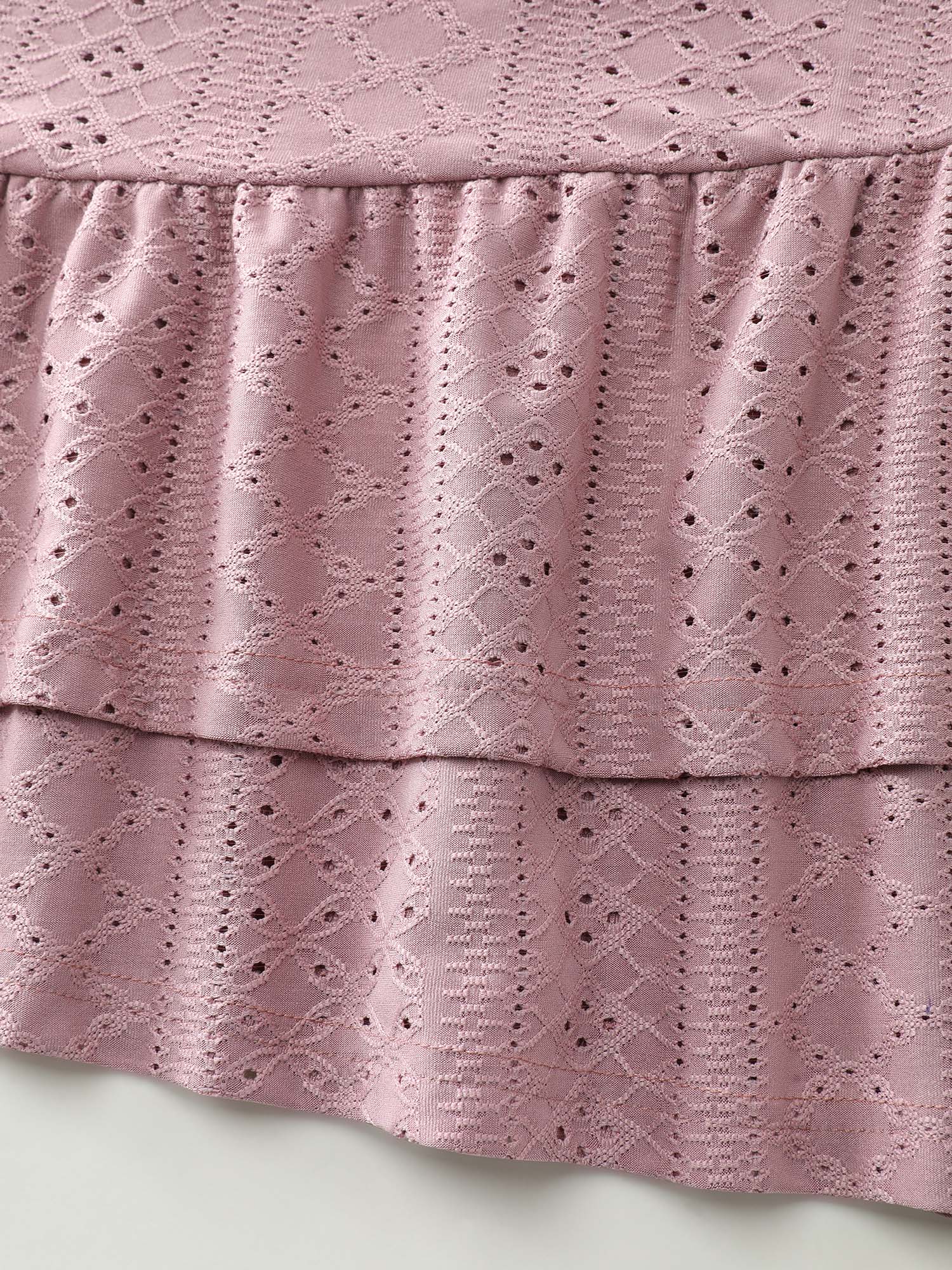 Shop Textured Ruffled Layered Hem Knit Top now and redefine your style with confidence at BloomChic. Tailored for mid and plus-size women. This trendy Tops Women, sizes 10-30. Color:Dusty Pink;Style:Leisure;Prints:Synthetic texture;Neckline:Round Neck;Sleeve Type:Regular Sleeve;Details:Ruffles, Texture, Gathered, Cut-Out, See through;Pocket:No-pocket