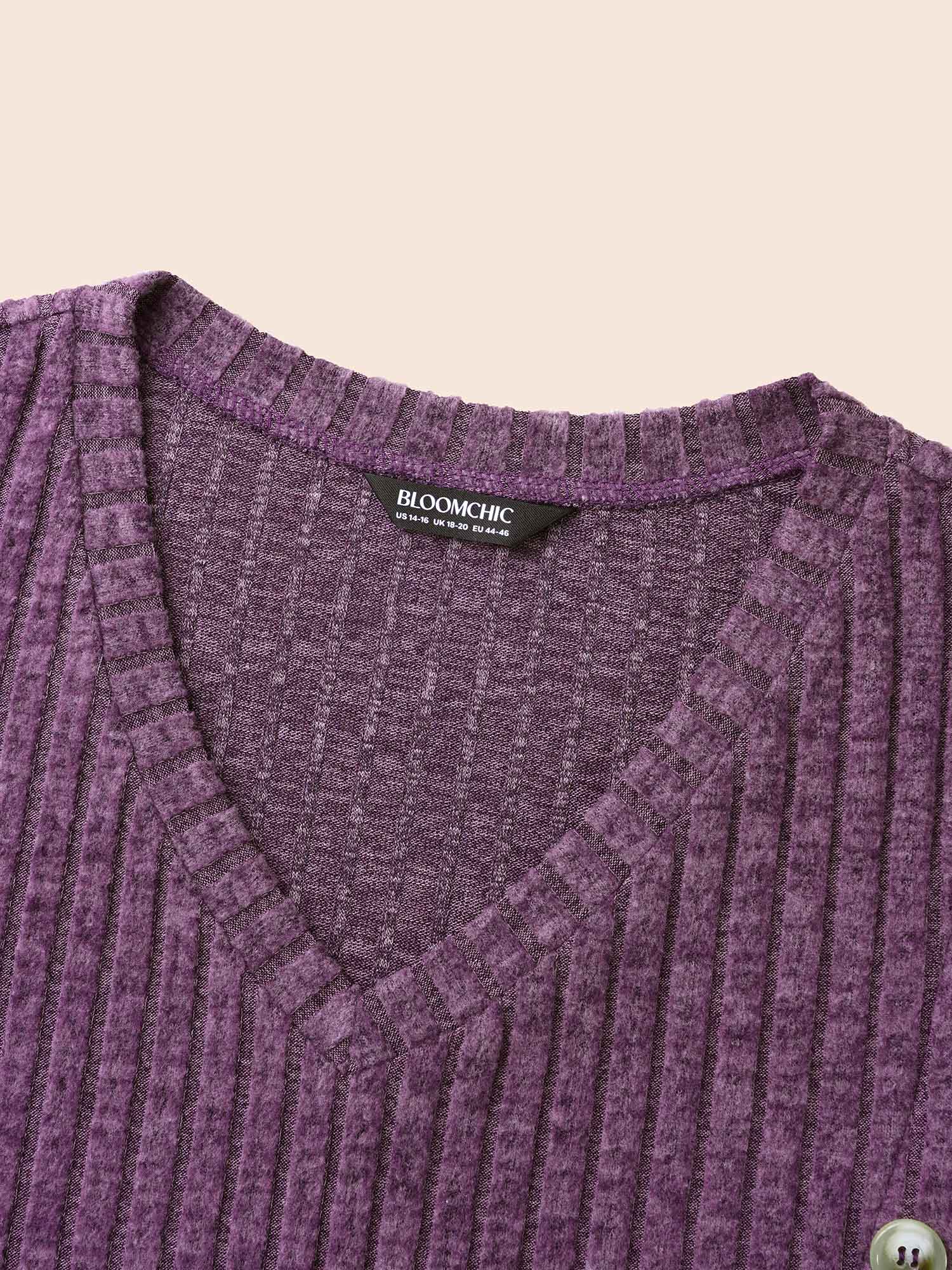 Shop V Neck Button Detail Rib Knit T-shirt now and redefine your style with confidence at BloomChic. Tailored for mid and plus-size women. This trendy Tops Women, sizes 10-30. Season:Winter;Color:Mauve;Style:Elegant;Prints:Non;Neckline:V-neck;Sleeve Type:Regular Sleeve;Details:Button, Texture;Pocket:No-pocket