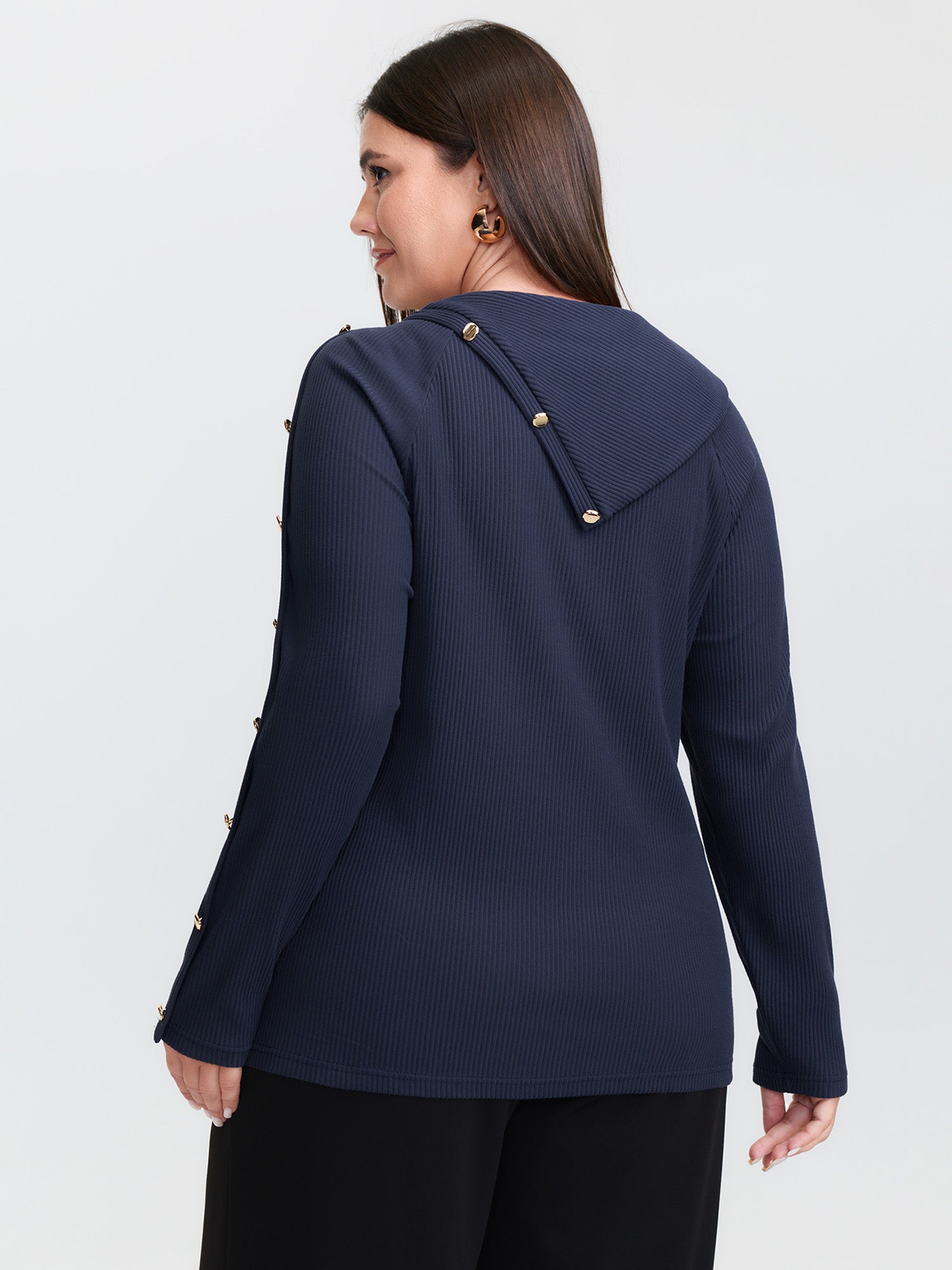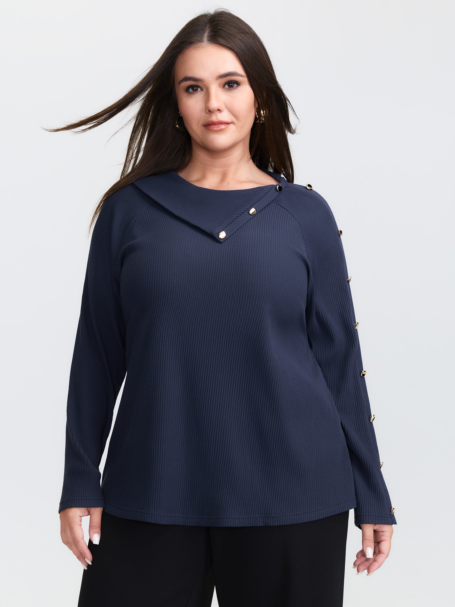 Shop Velvet Ribbed Folded Neckline Button Knit Top now and redefine your style with confidence at BloomChic. Tailored for mid and plus-size women. This trendy Tops Women, sizes 10-30. Color:Indigo;Style:Office;Prints:Non;Neckline:Mock Neck;Sleeve Type:Regular Sleeve;Pocket:No-pocket