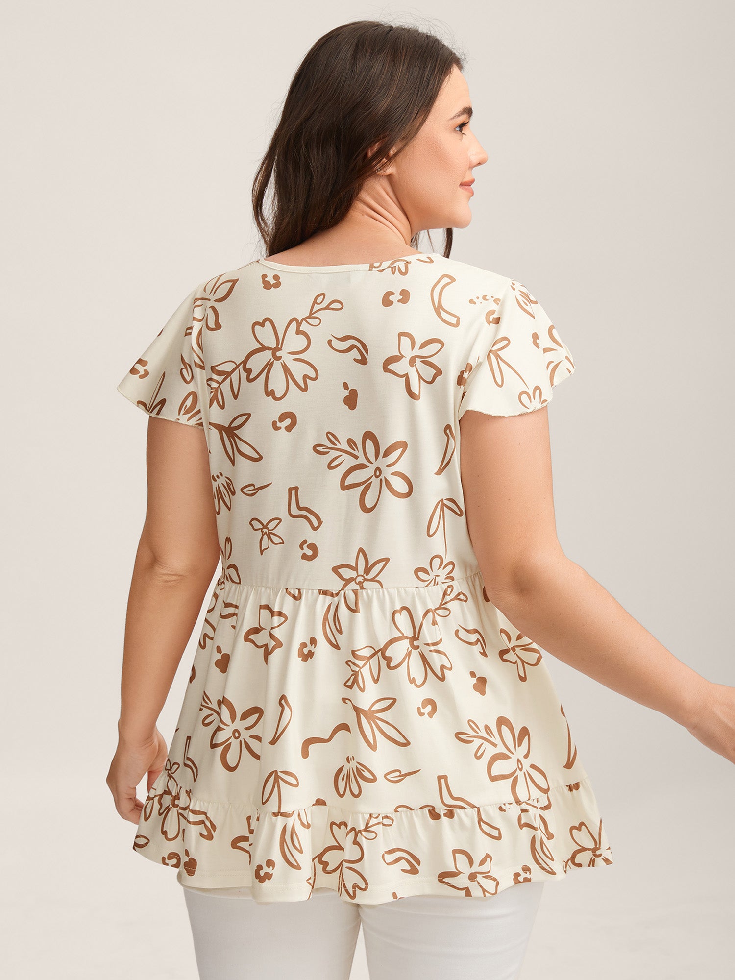 Whimsical Floral Print Button Detail Top