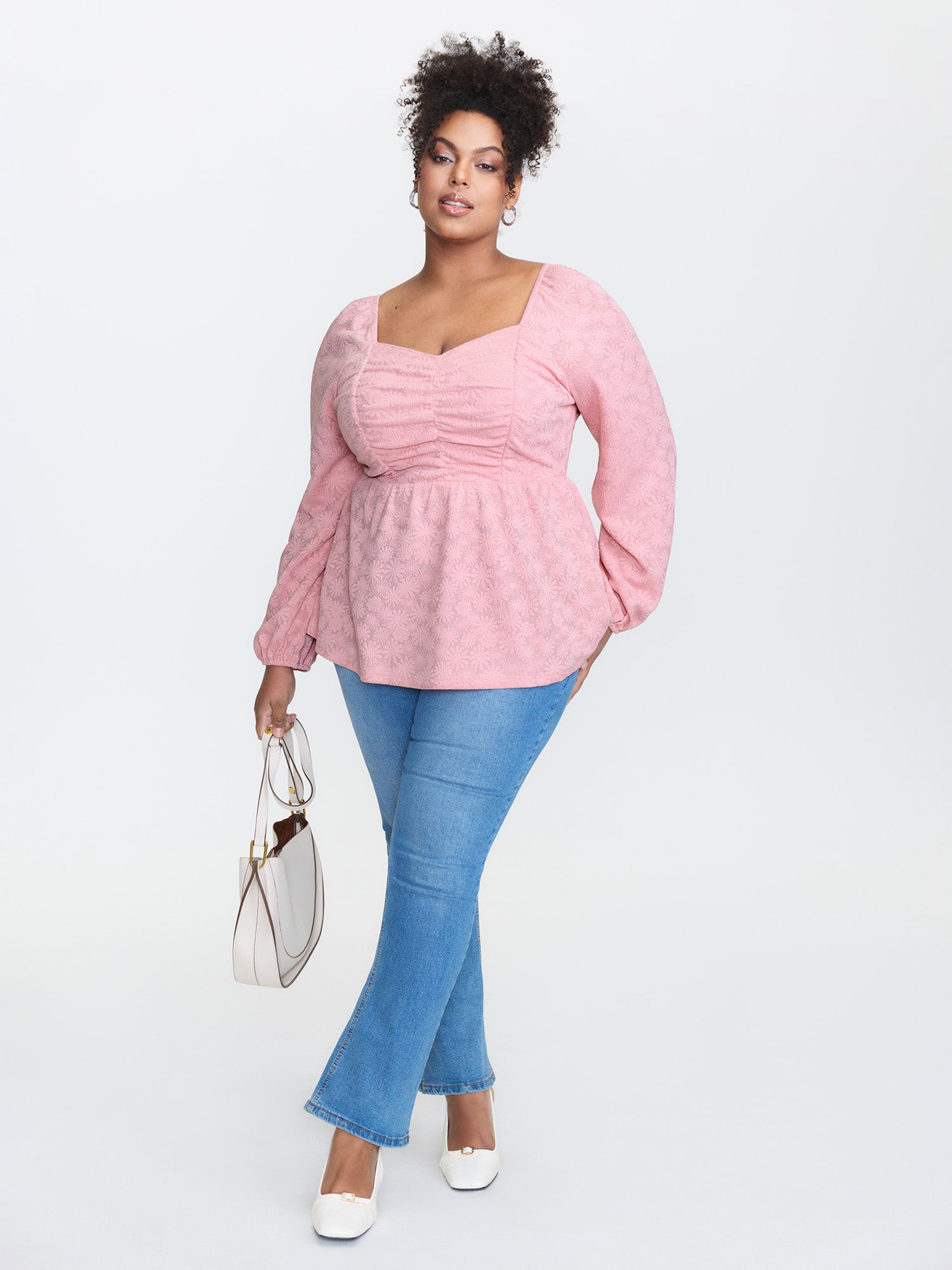 Textured Ruched Bodice Sweetheart Knit Top