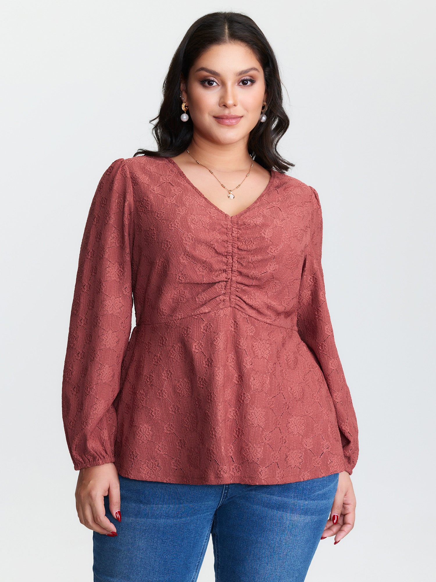 Lace Wrap Ruched Side Knit Top