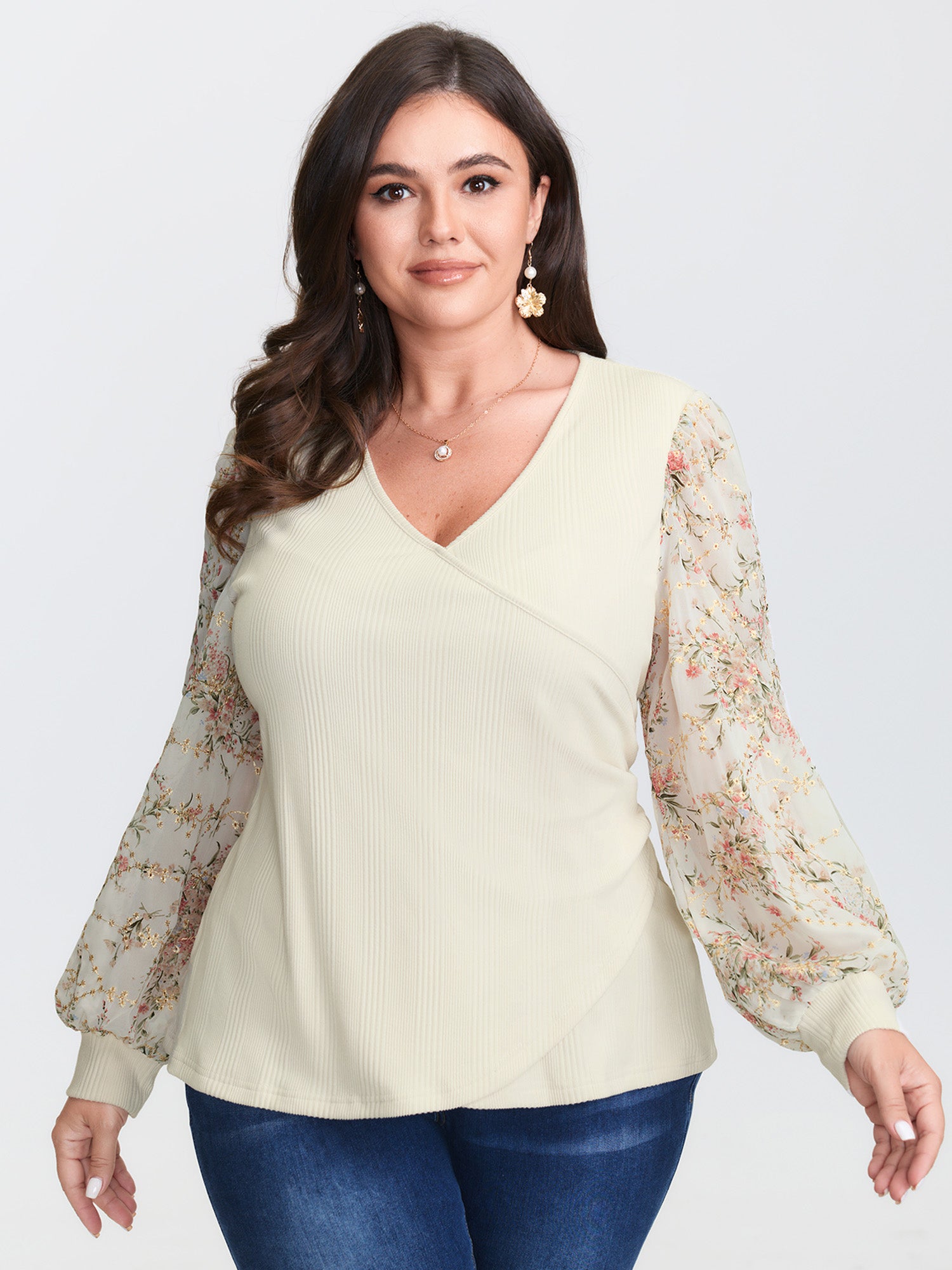 Floral Sleeve Wrap Knit Top
