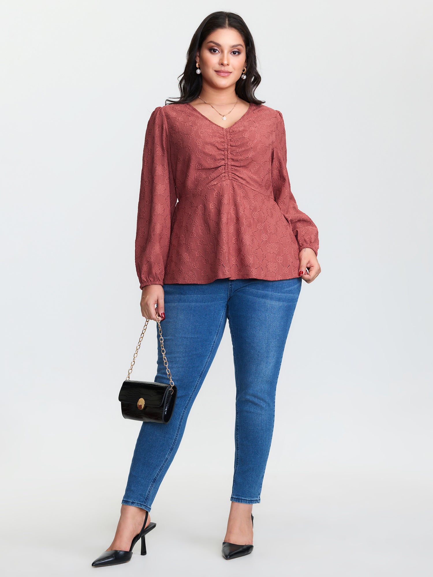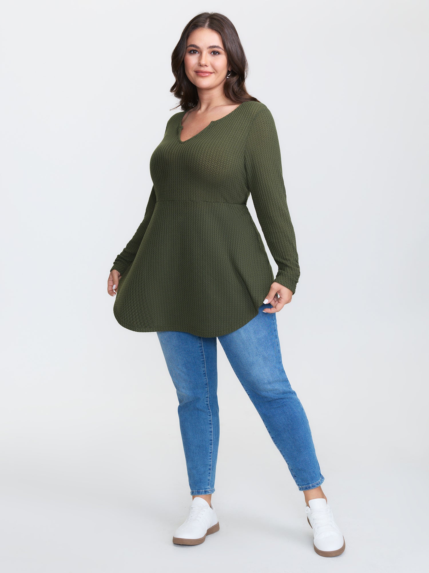 Ruched Bodice Textured Adjustable Knit Top