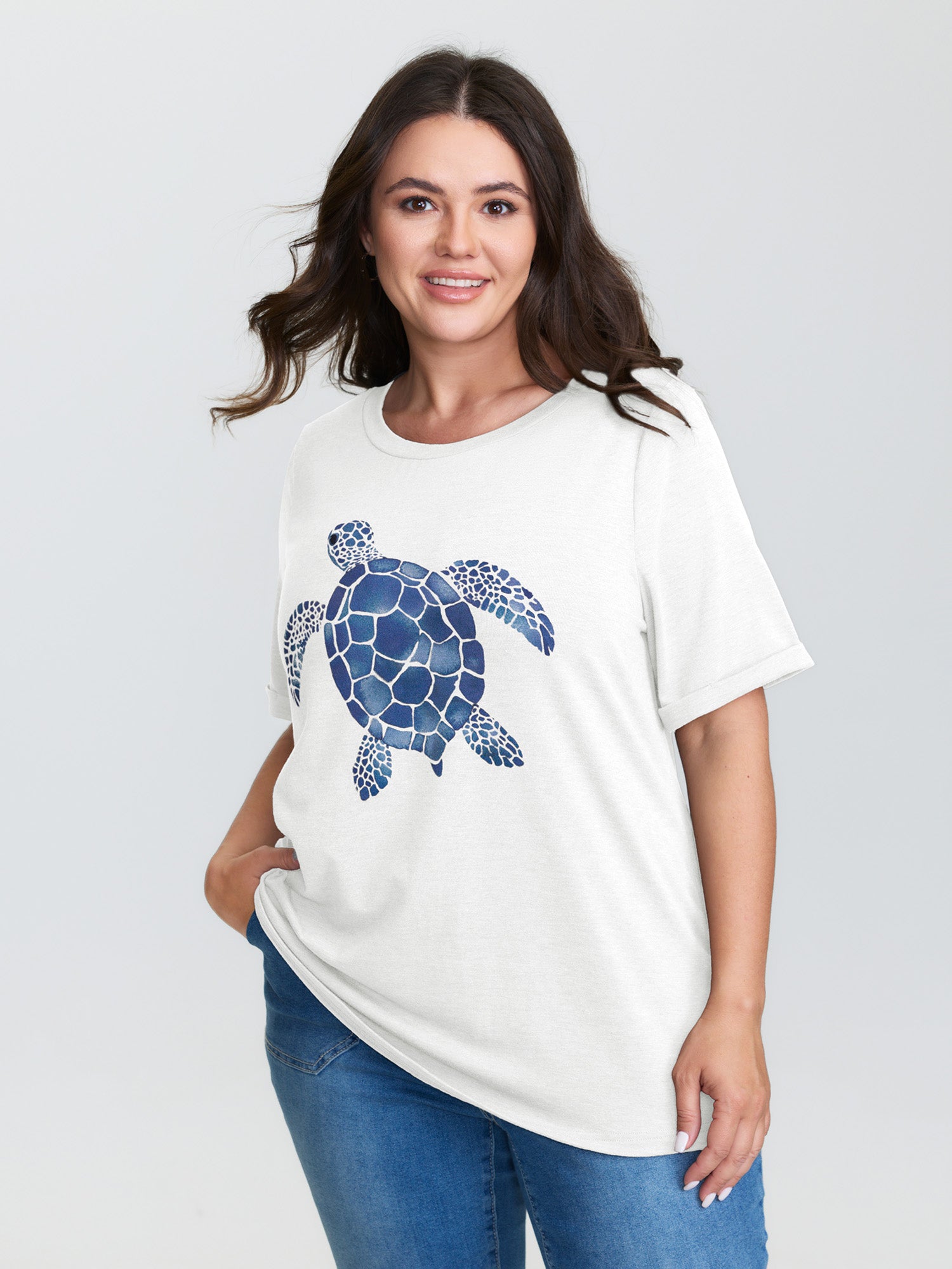 Supersoft Turtle Print Plain T-Shirt