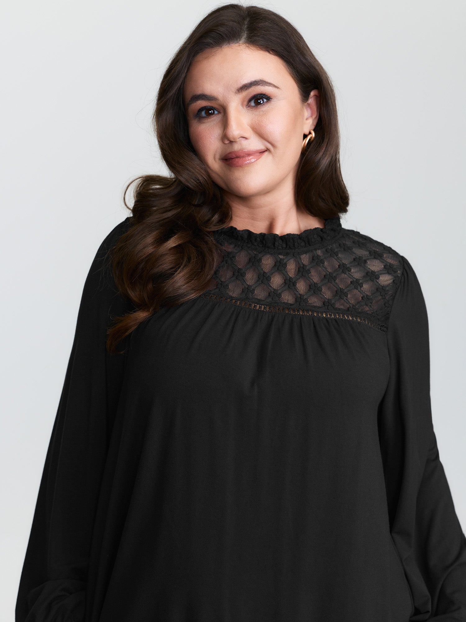 V Neck Lace Panel Jersey Top